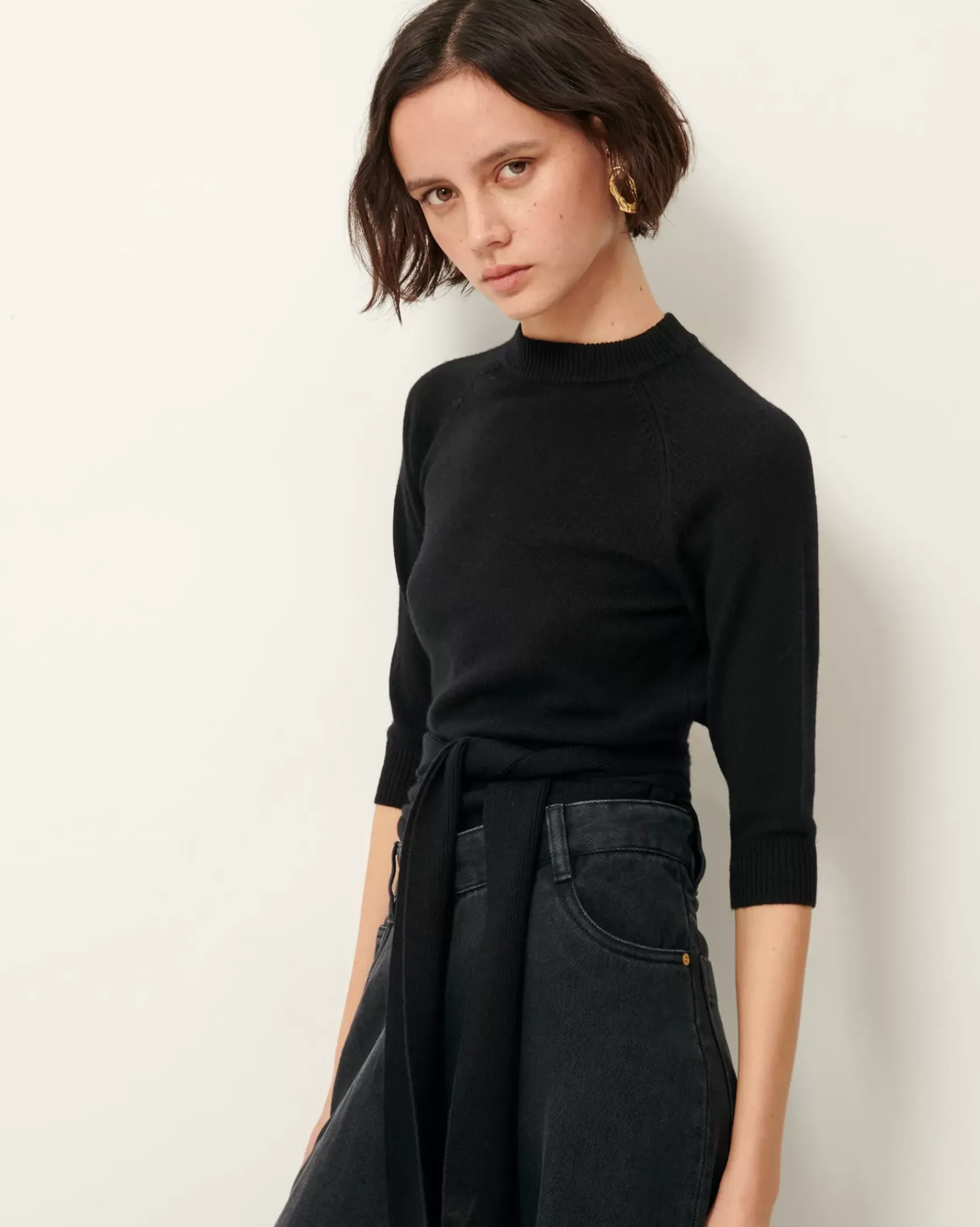 Pull ajusté à col montant en maille point jersey.