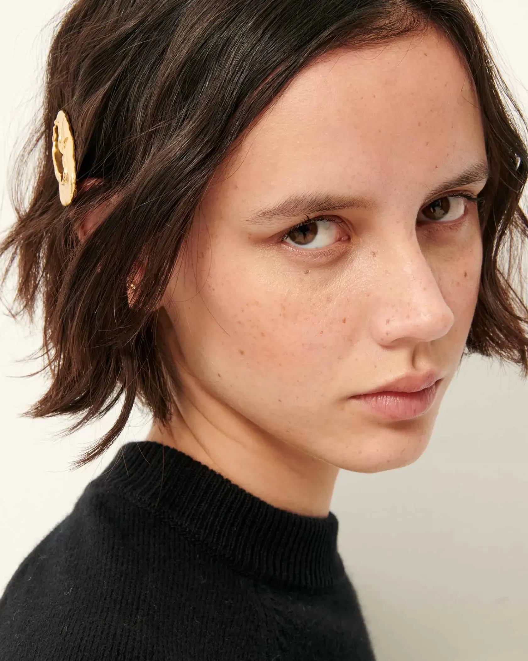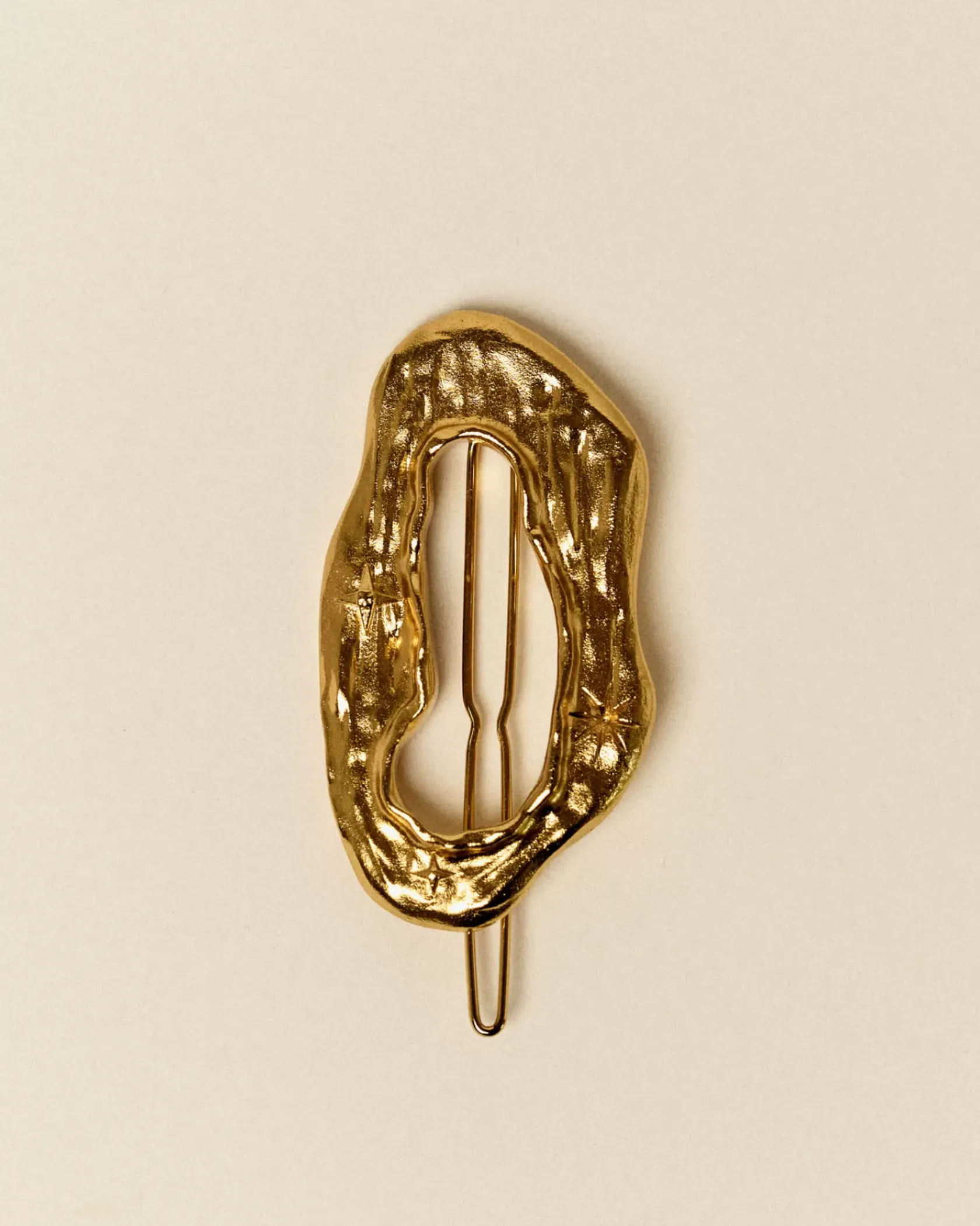 Petite barrette finition dorée avec effet matiéré et reliefs étoilés.