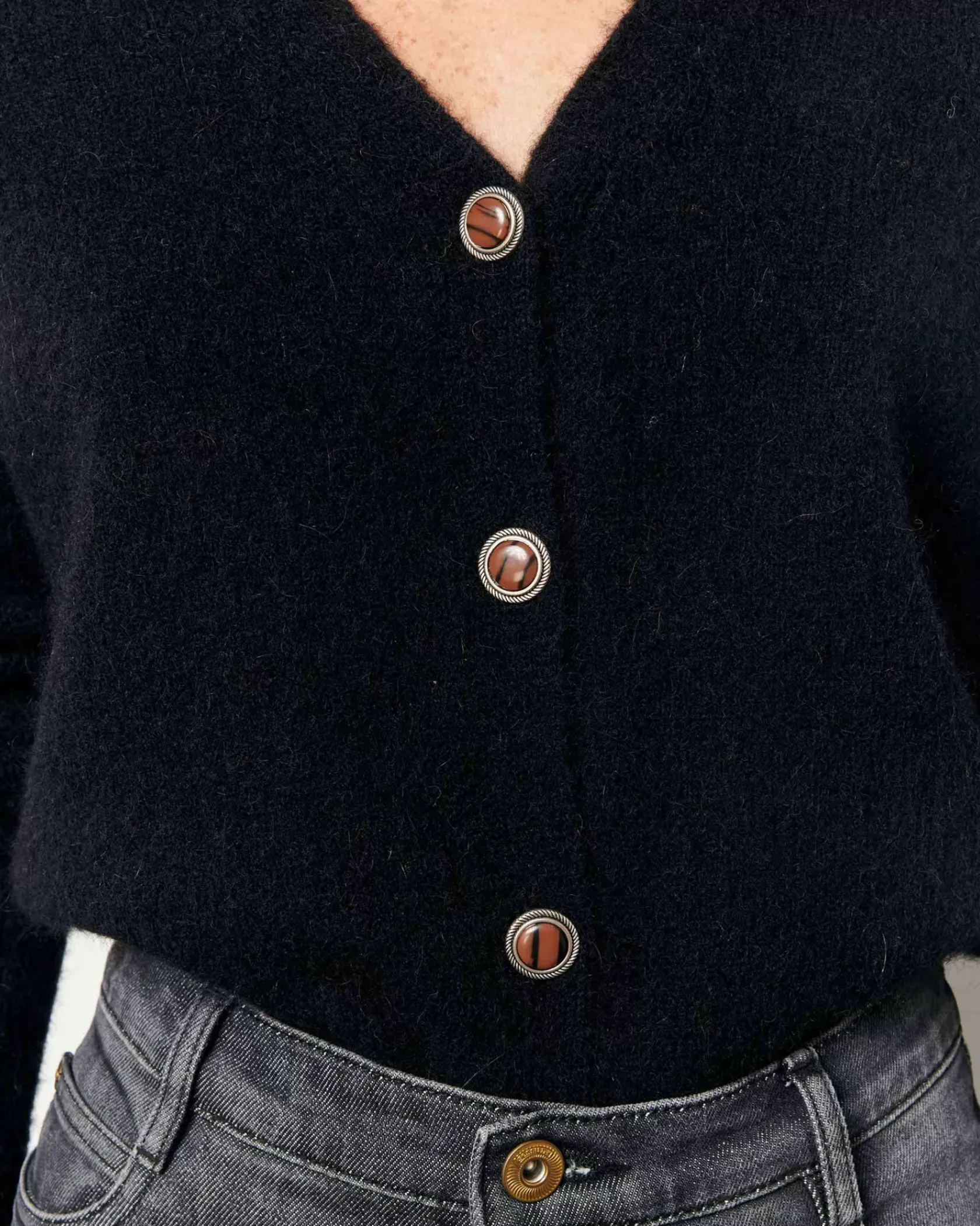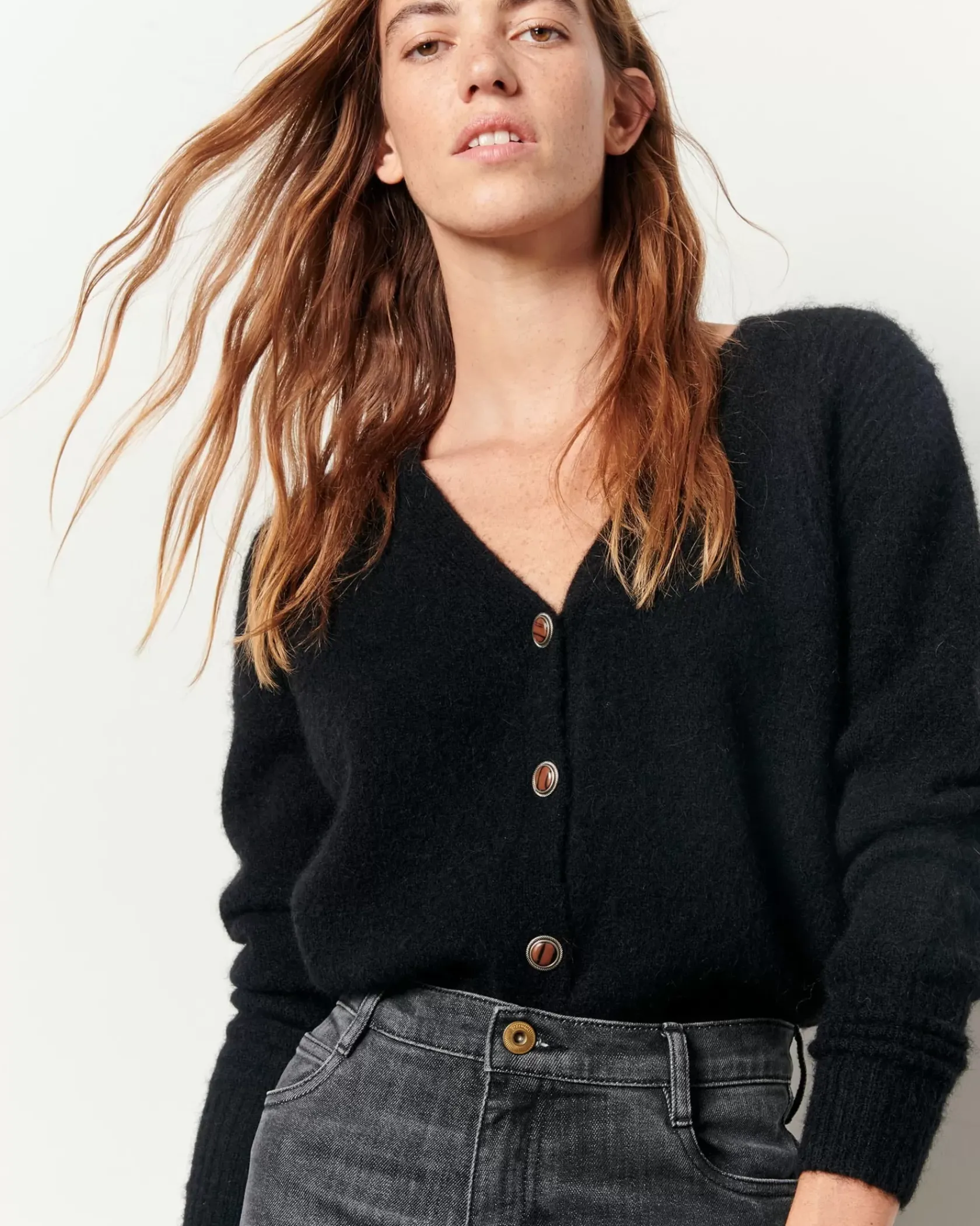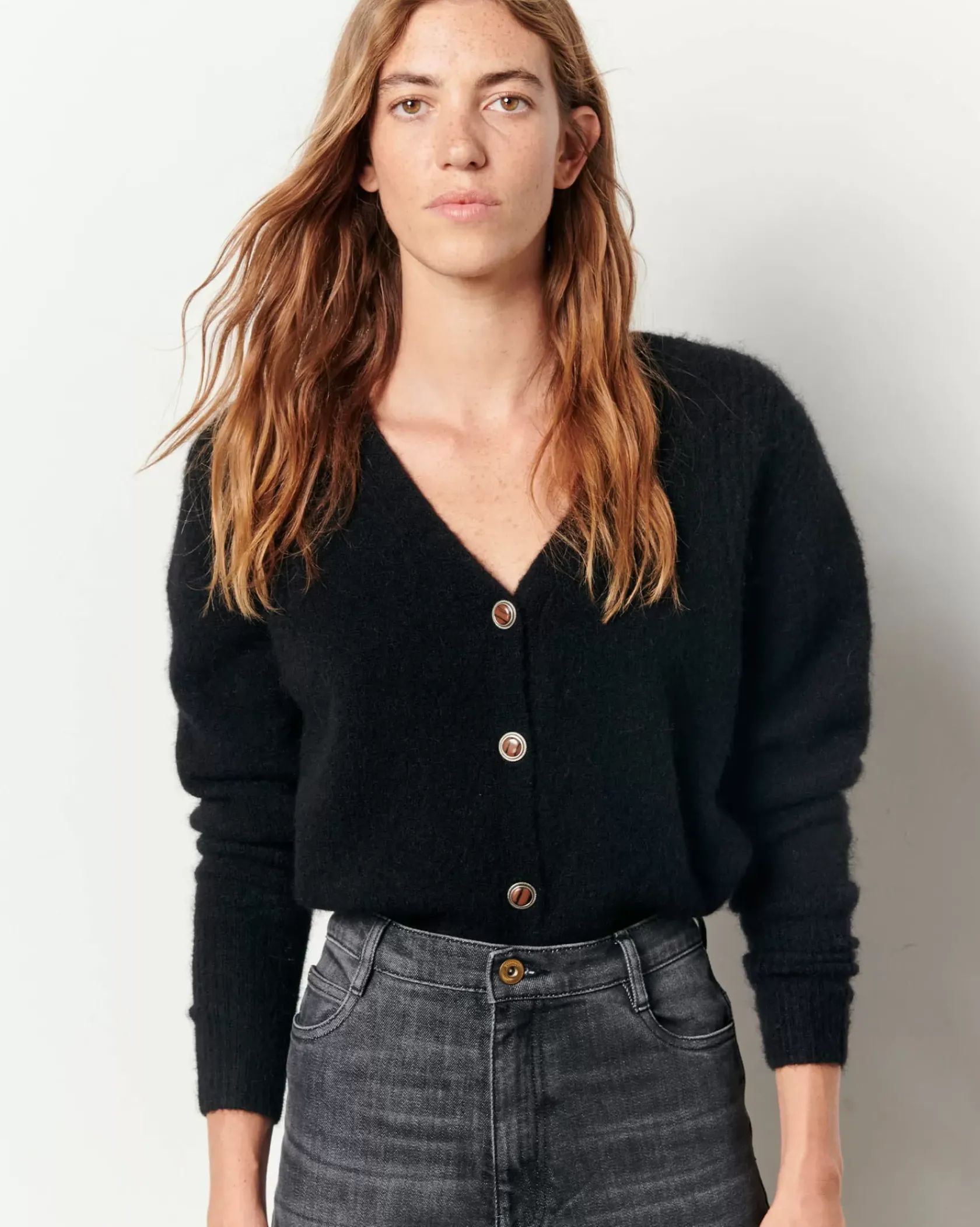 Cardigan à décolleté en V en maille duveteuse point jersey.