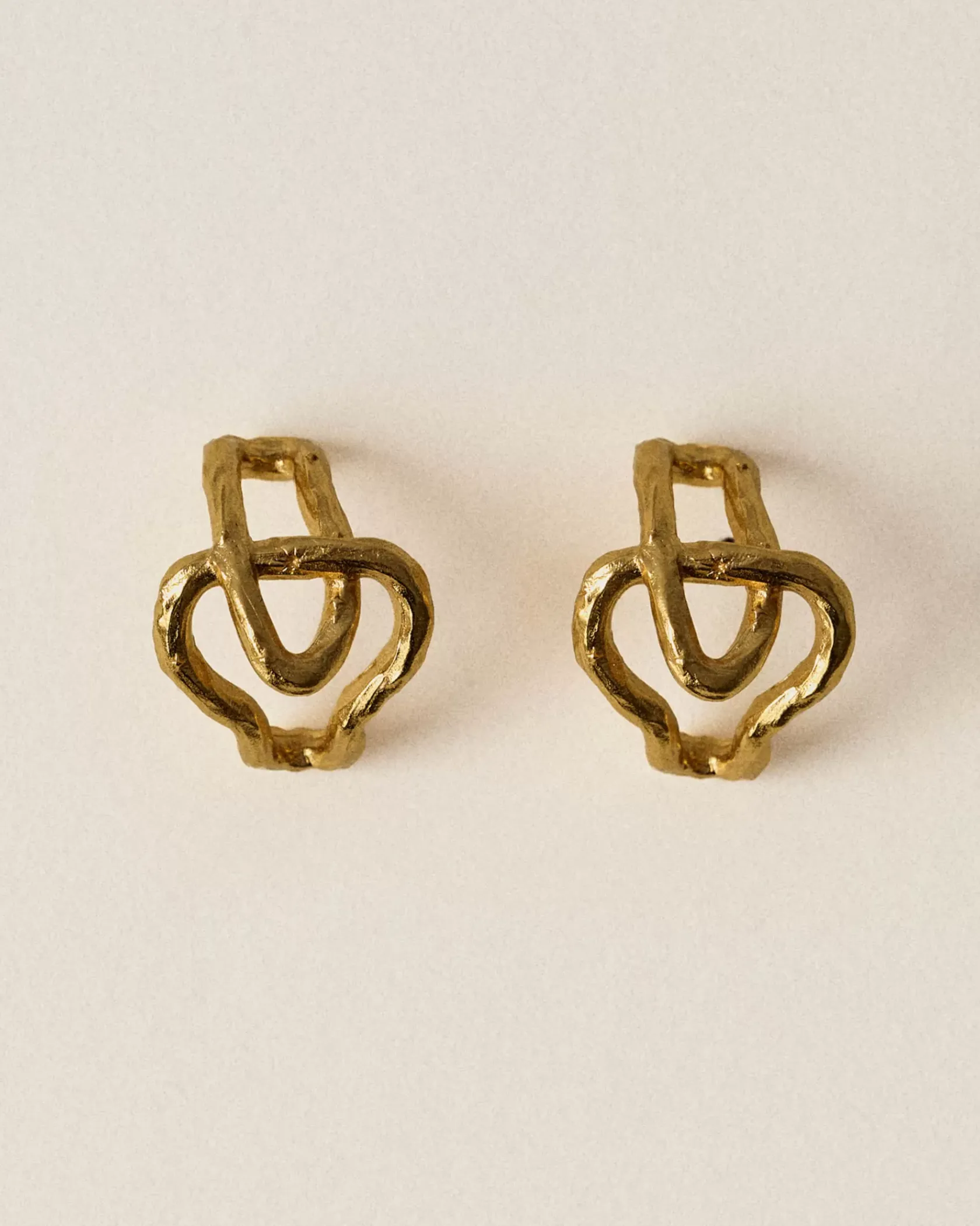 Boucles d’oreilles anneaux noués finition dorée texturée.