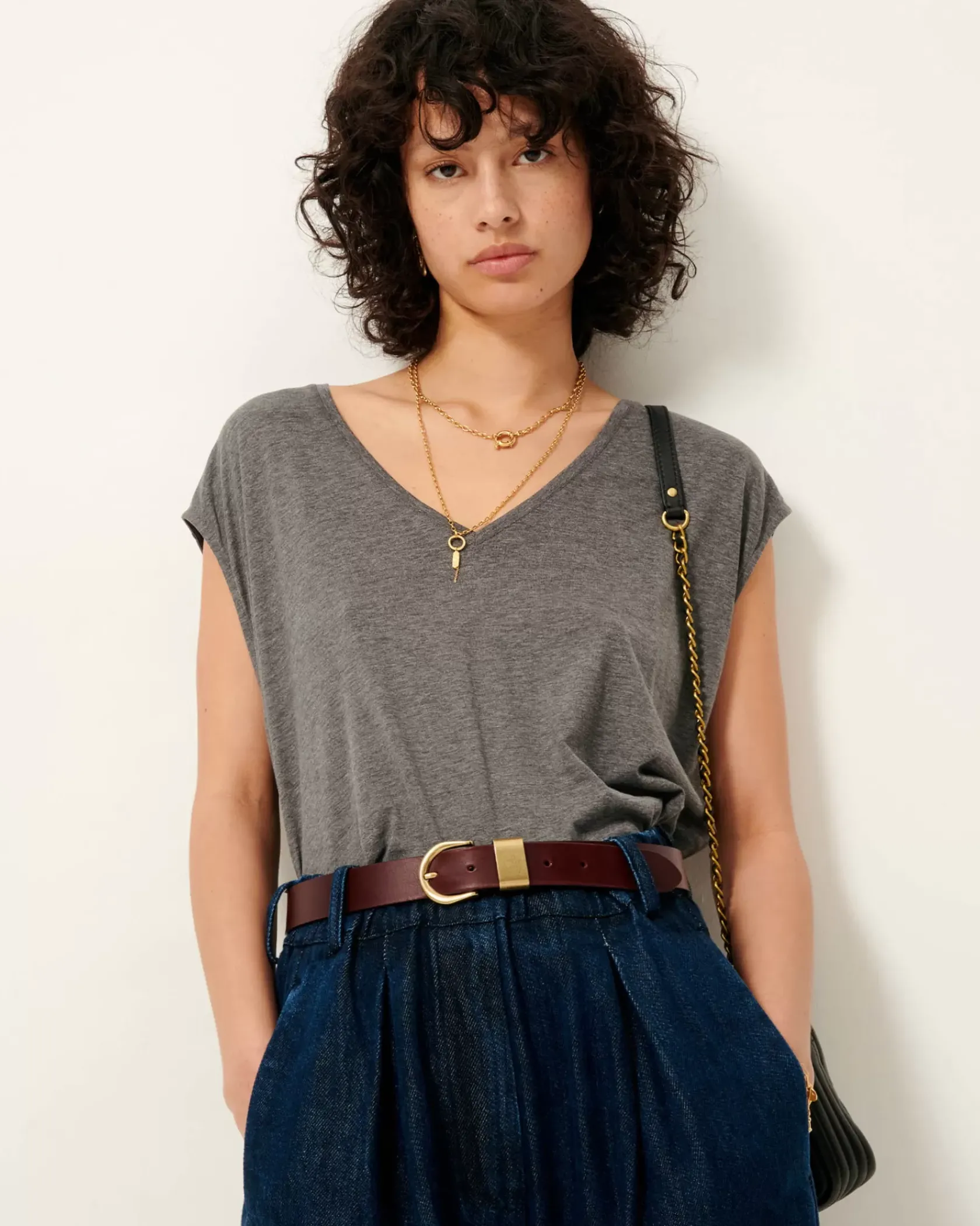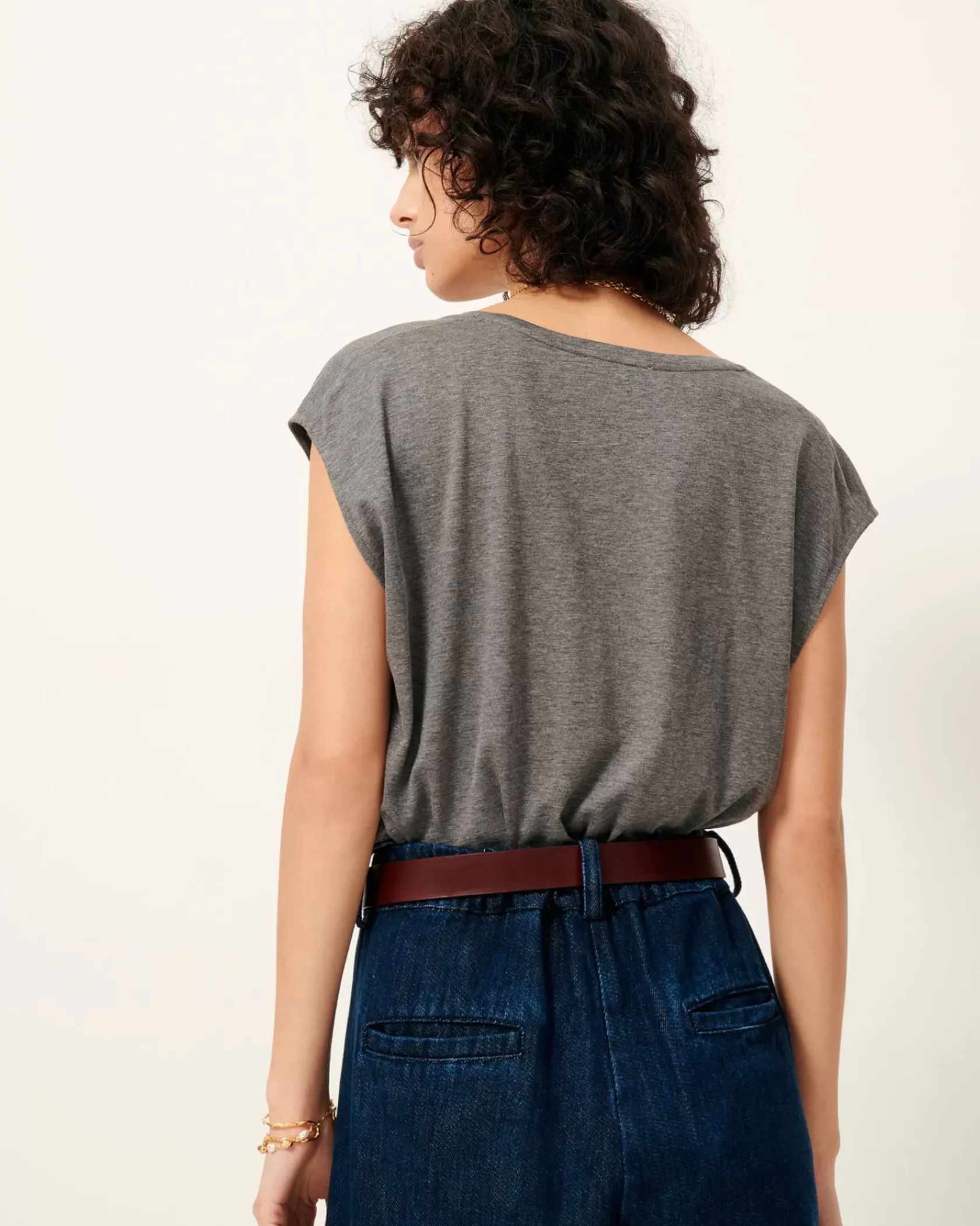 T-shirt sans manche col V en jersey fluide.