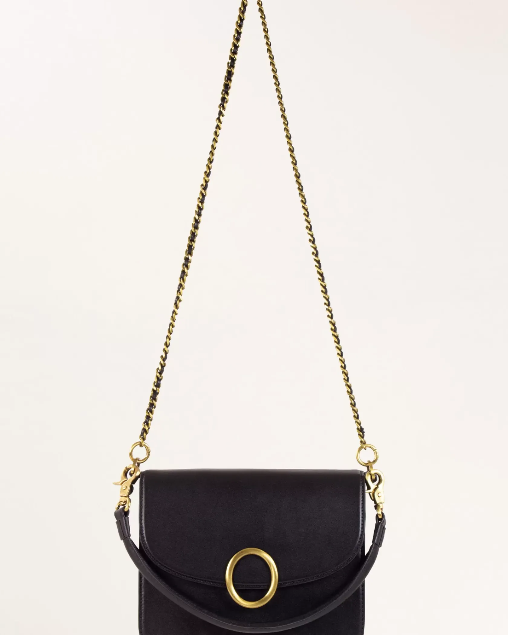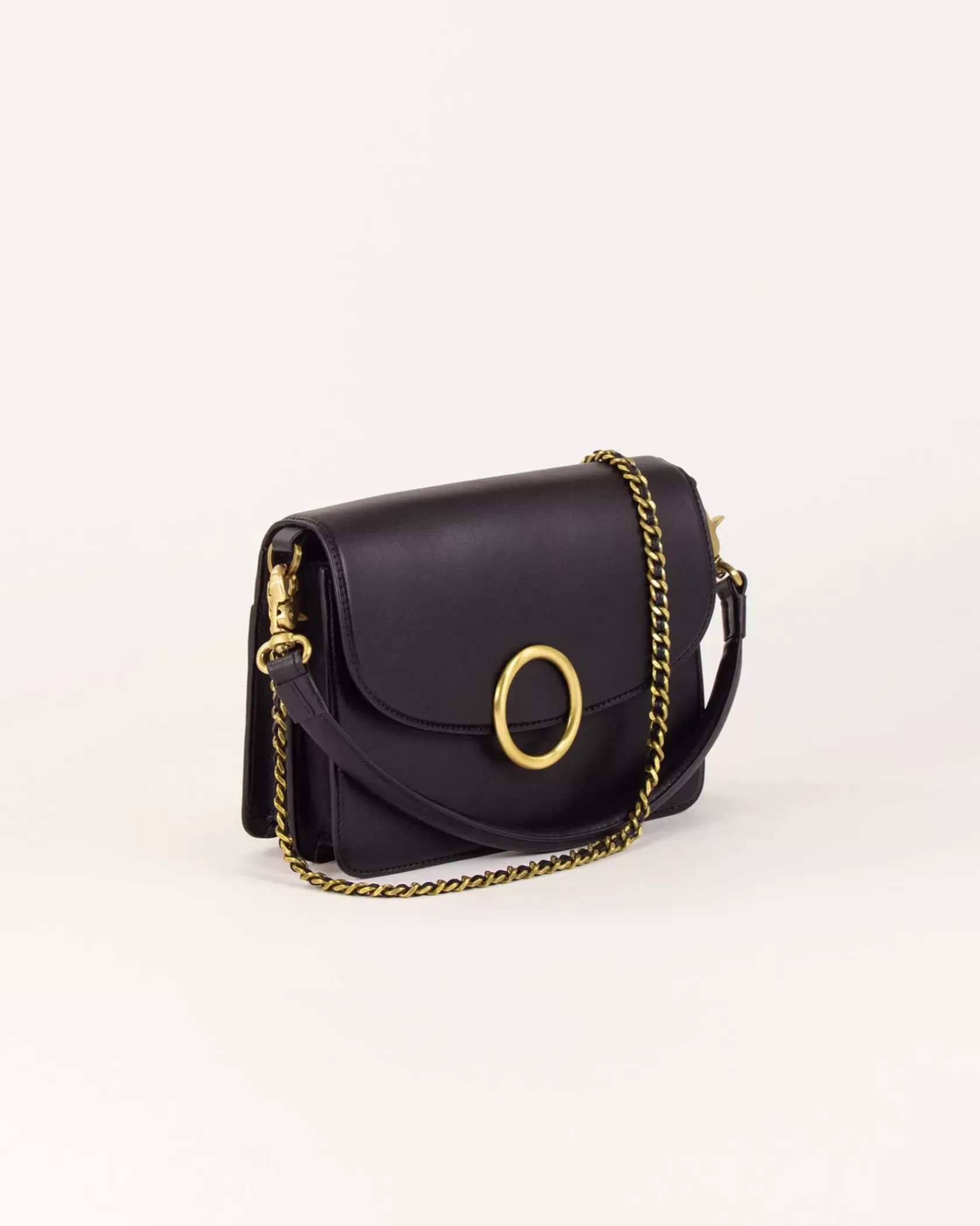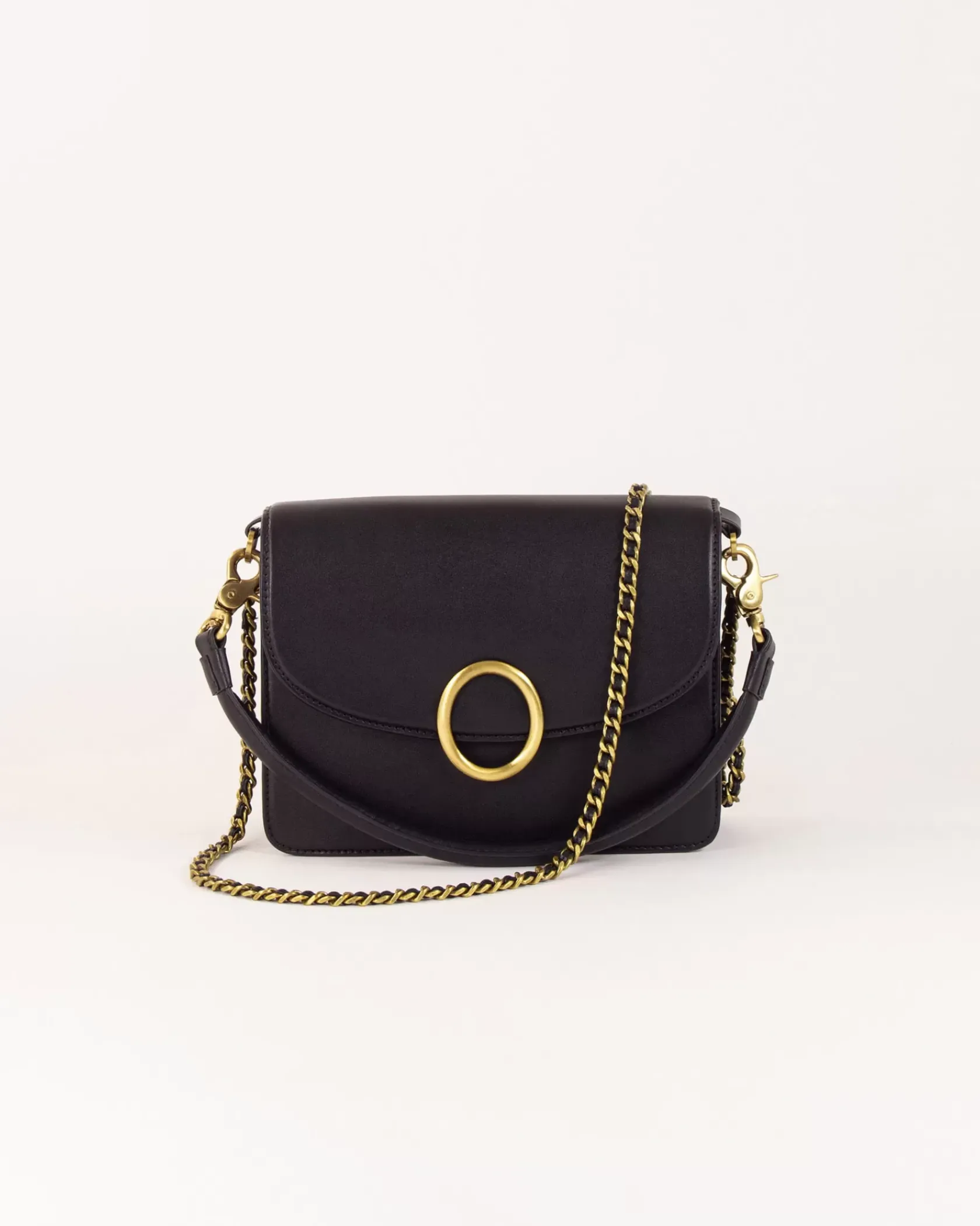 Sac rectangle en cuir de vachette avec boucle décorative.