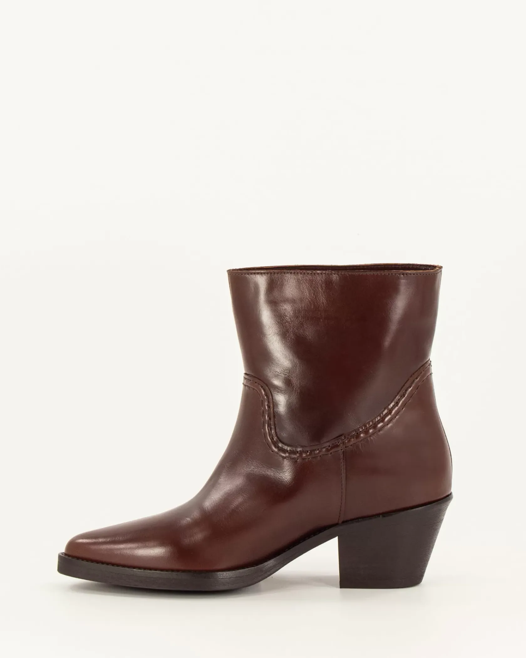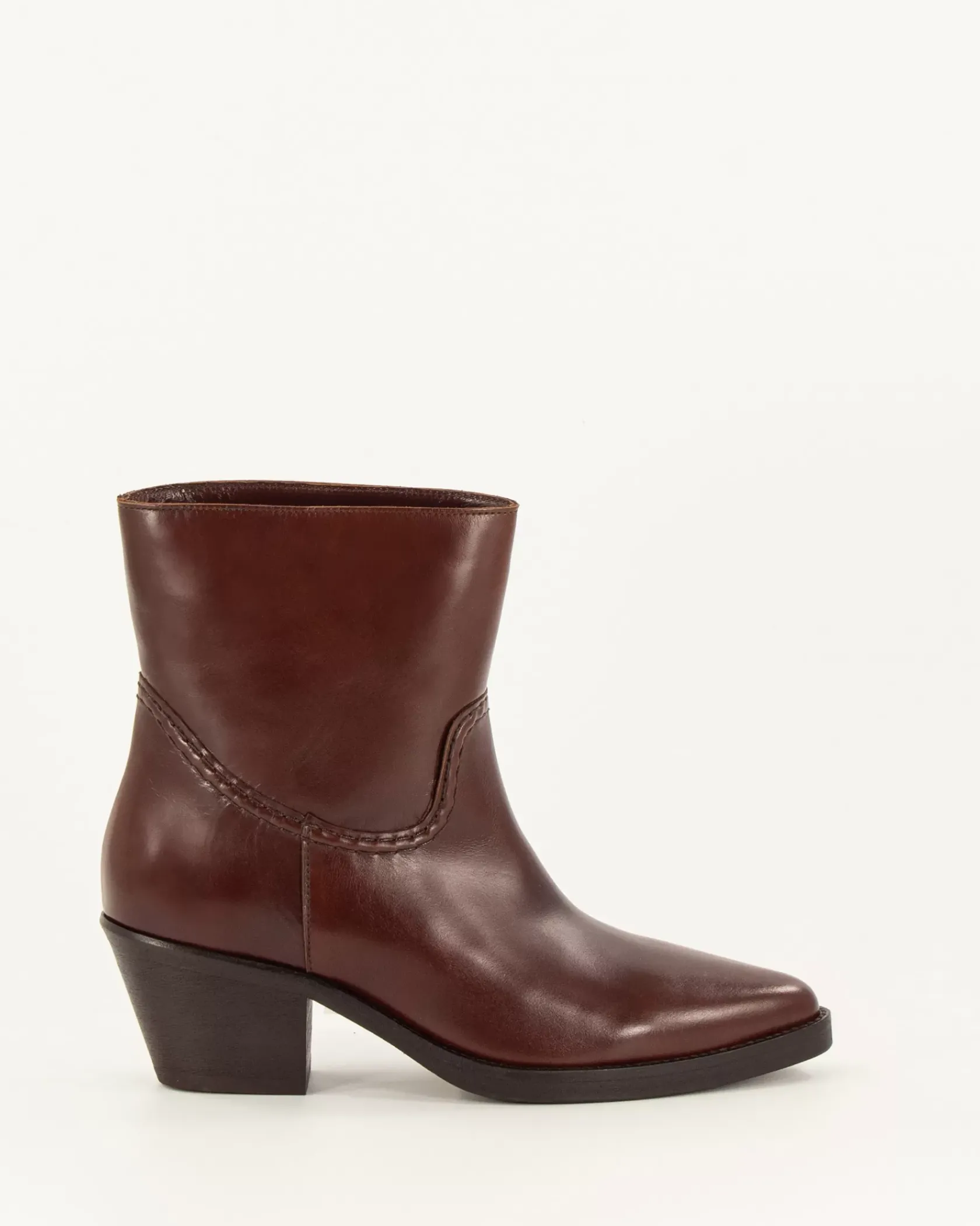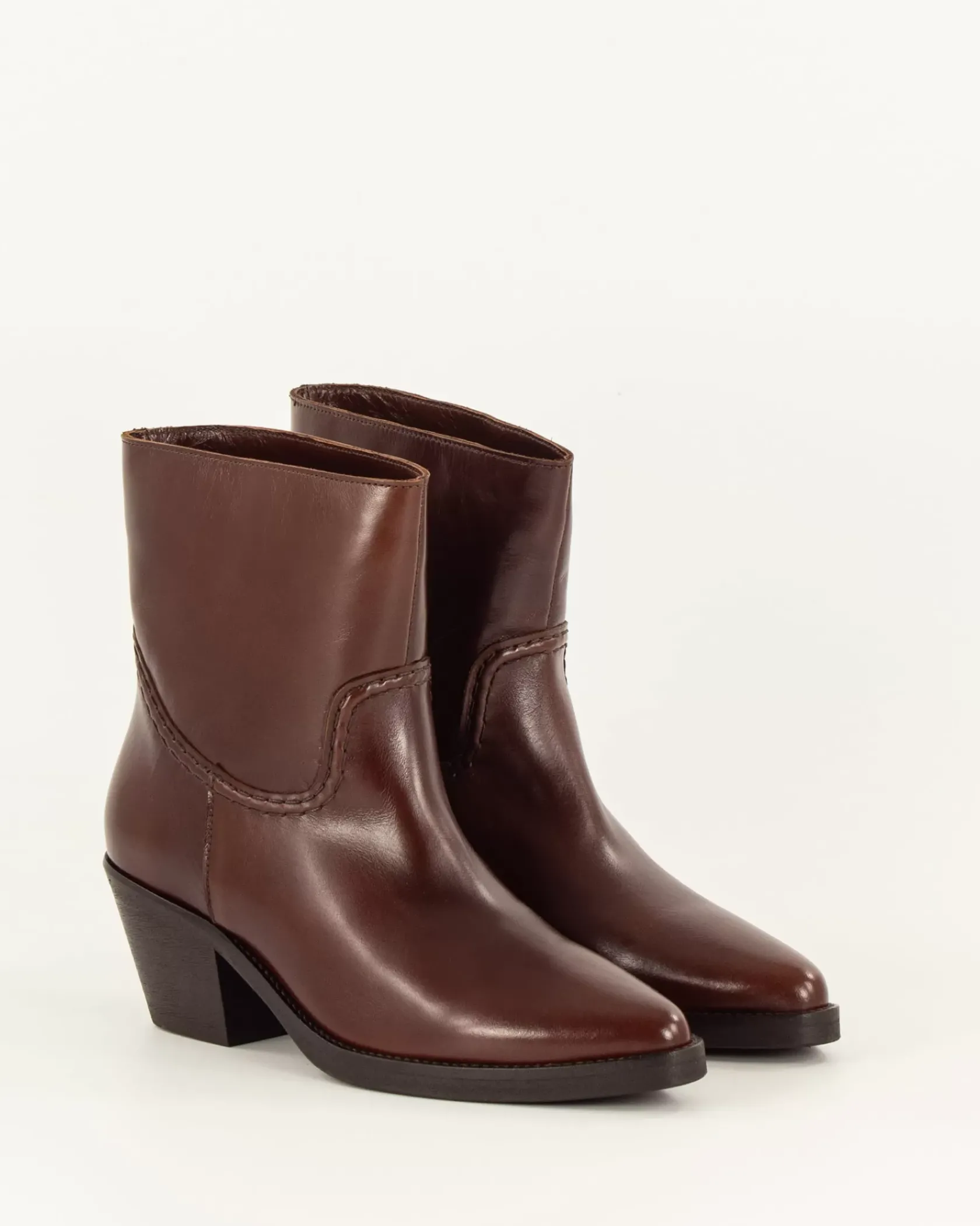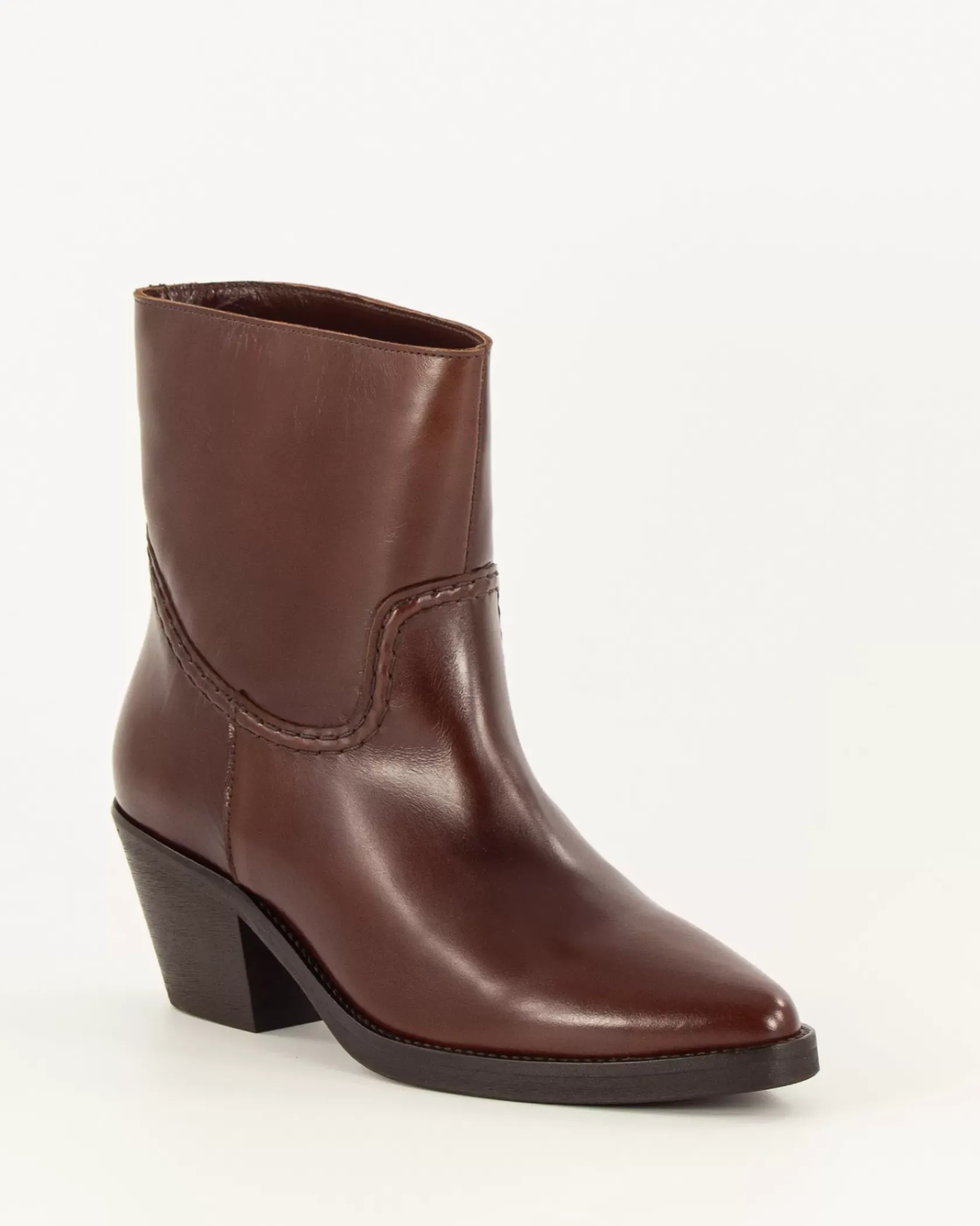 Bottines courtes esprit Santiag avec détails de surpiqûres contrastées en cuir de vache fabriquées au Portugal.