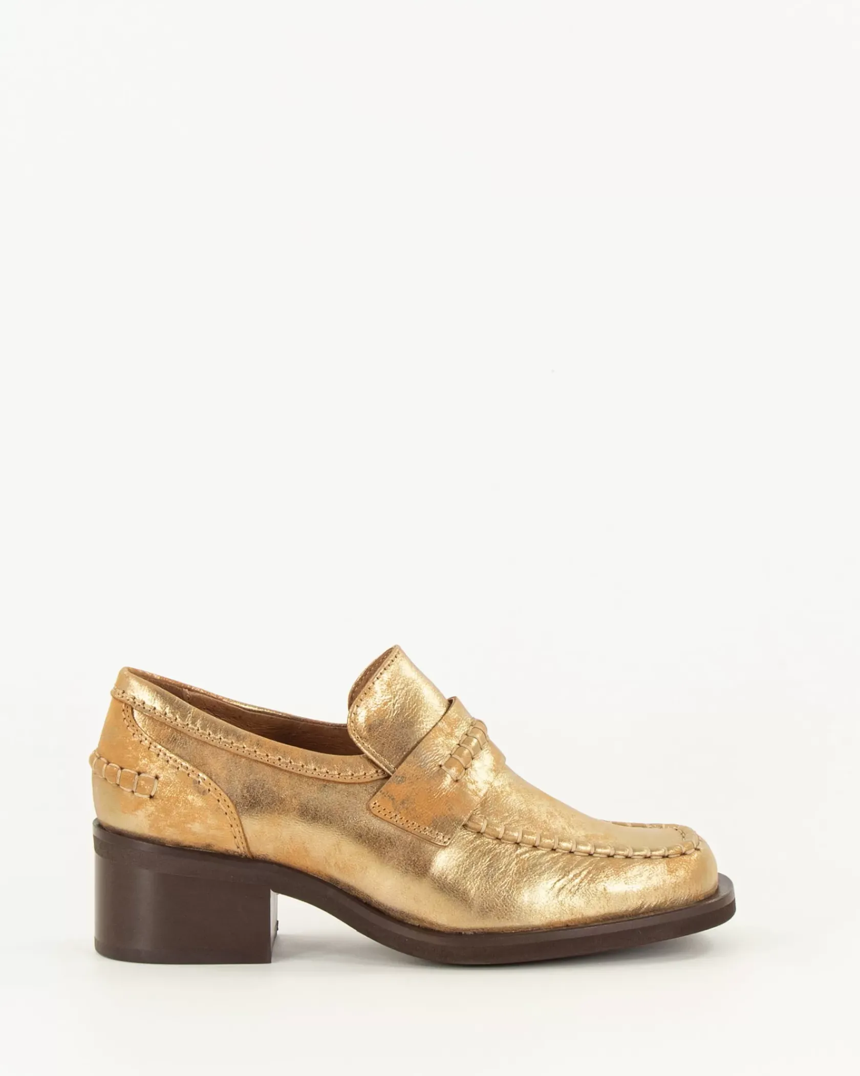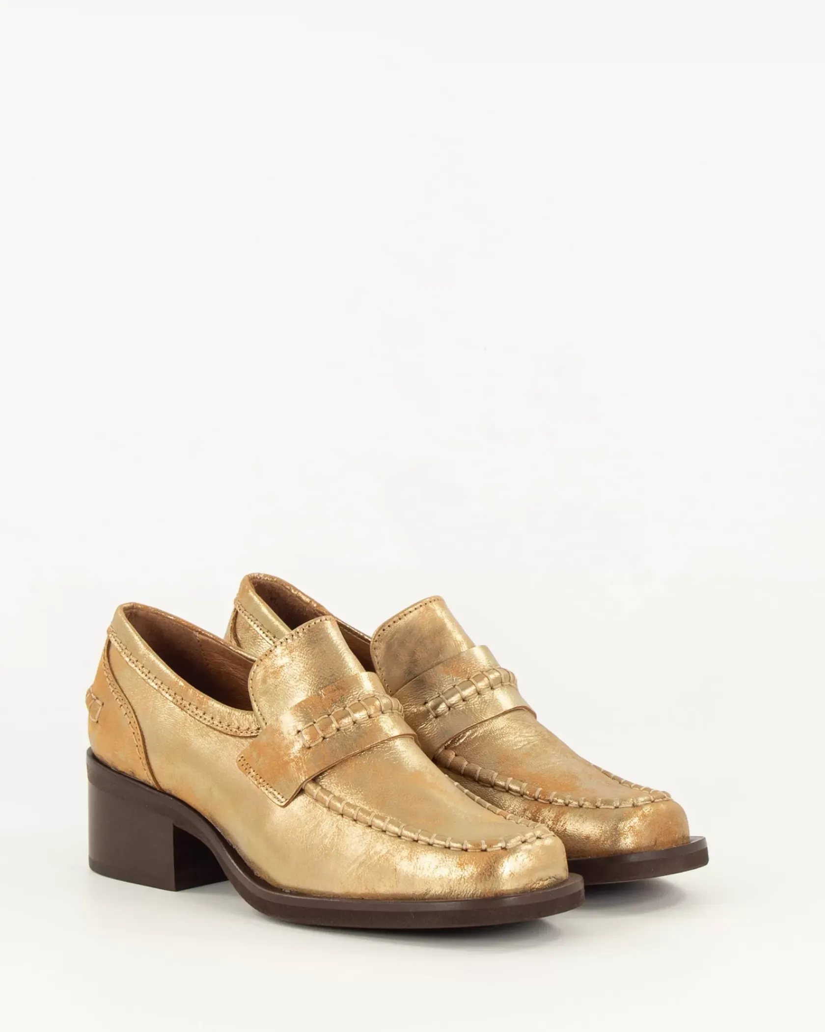 Mocassins à talons larges, en cuir de chèvre, confectionnés au Portugal.