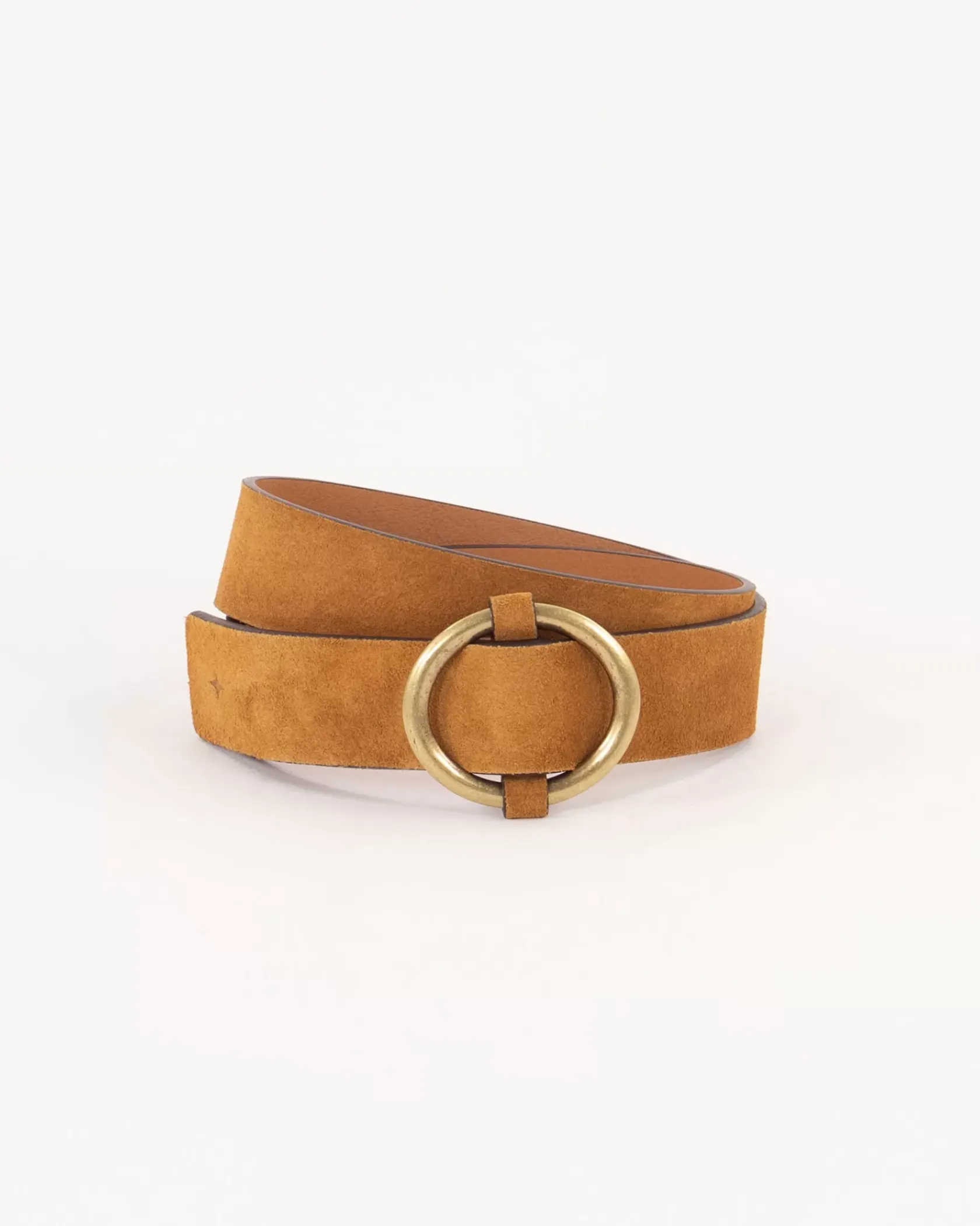 Ceinture boucle coulissante en cuir de vache suédé.