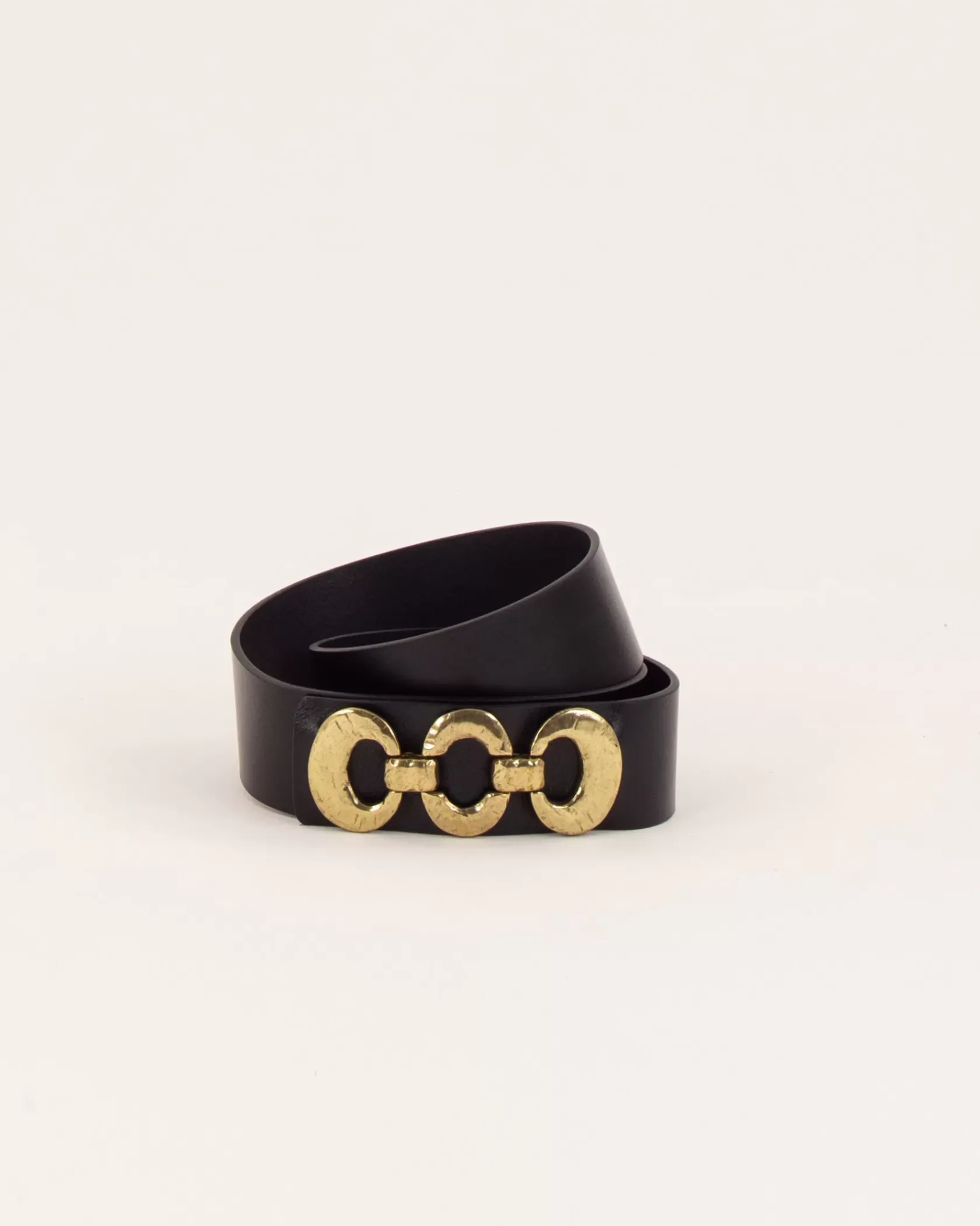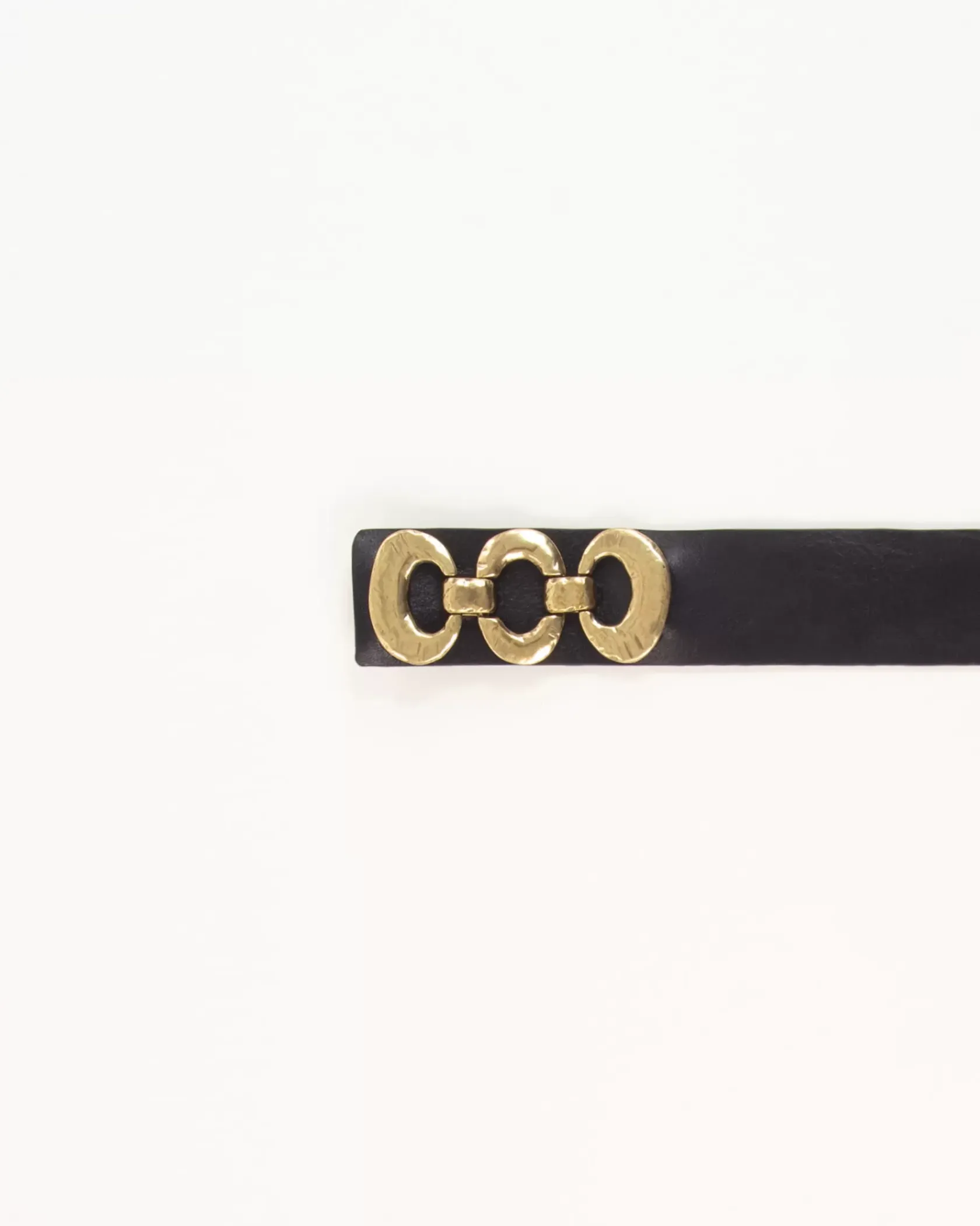 Ceinture large en cuir de vachette tannage végétal avec boucle bijou rivetée devant, confectionnée en Italie.