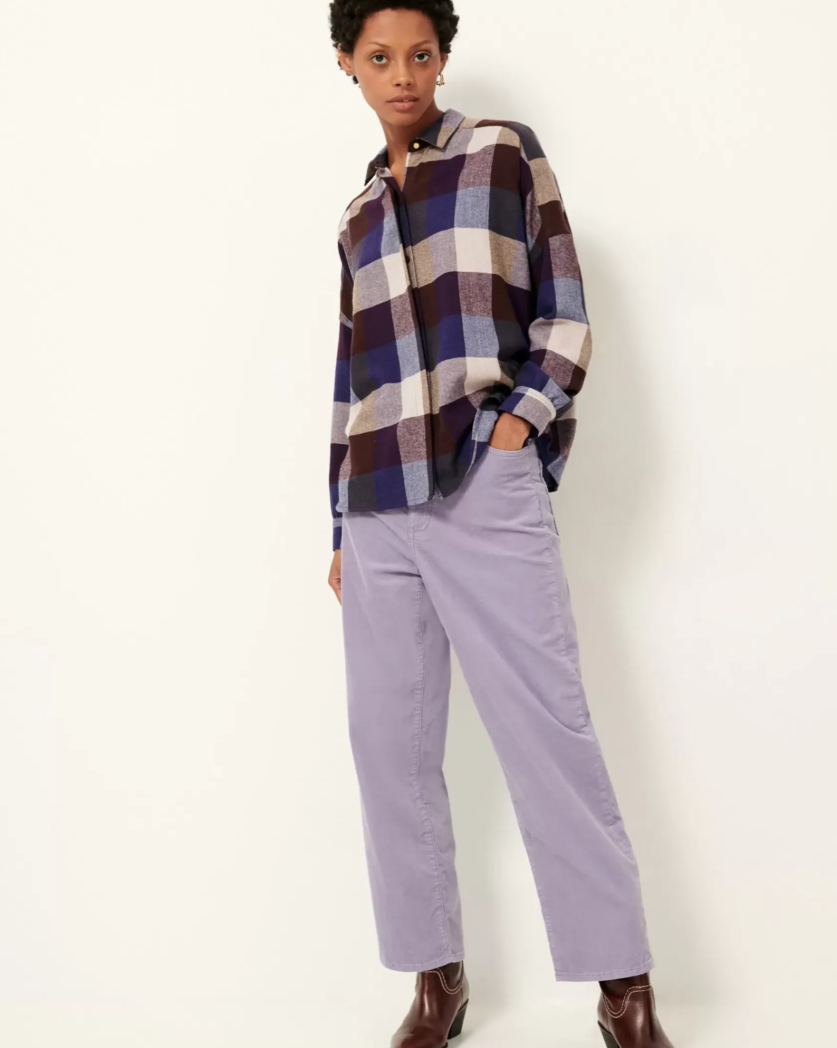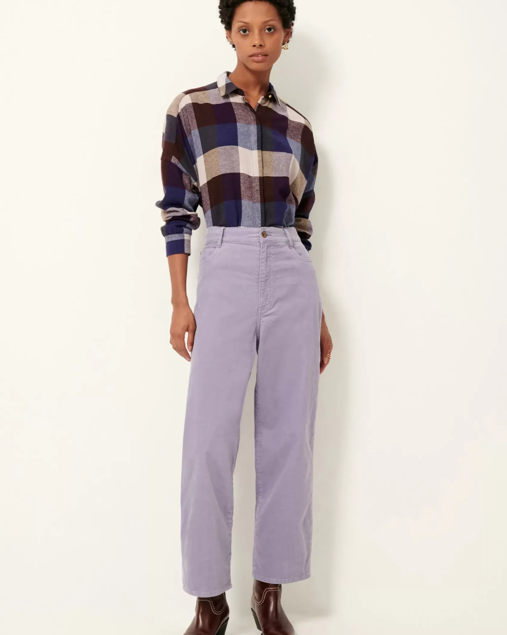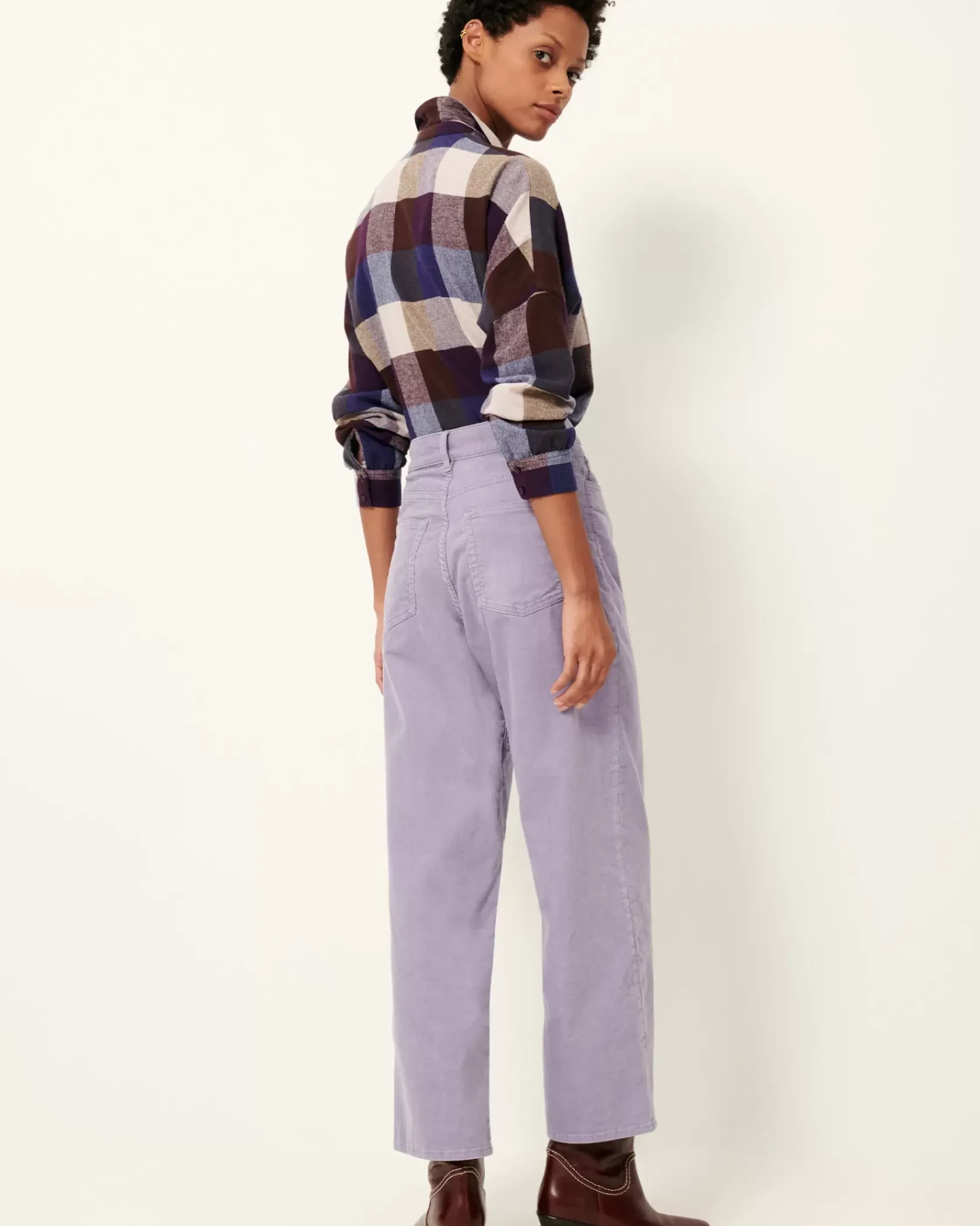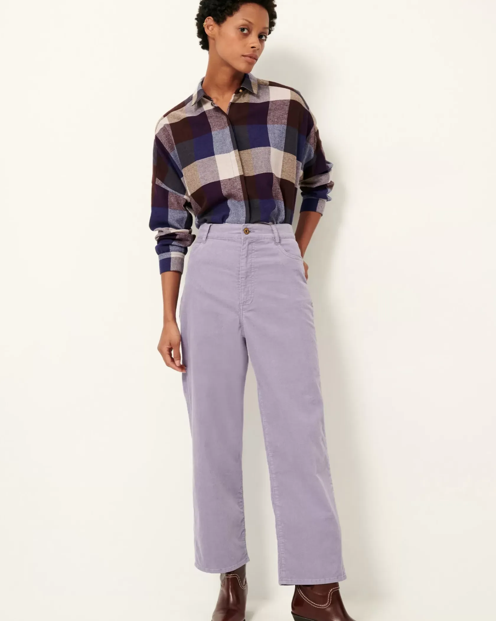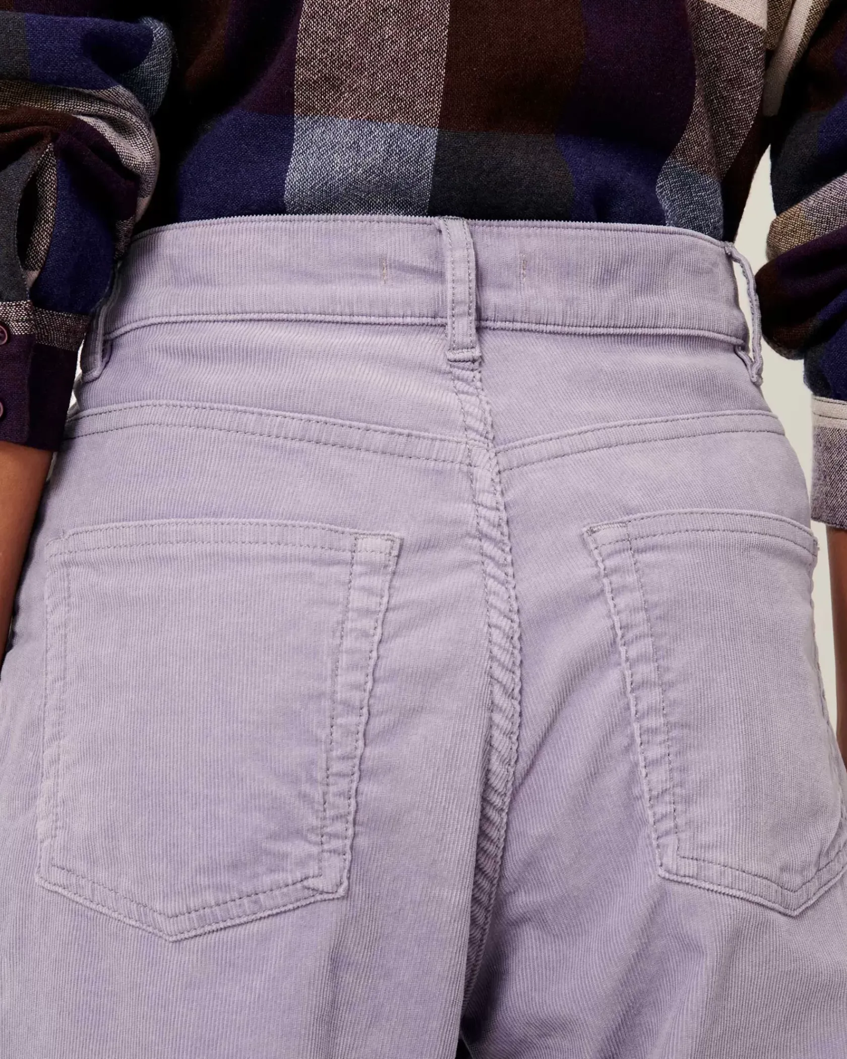 Pantalons droit, 5 poches en velours côtelé mille raies, teinture pigmentaire.