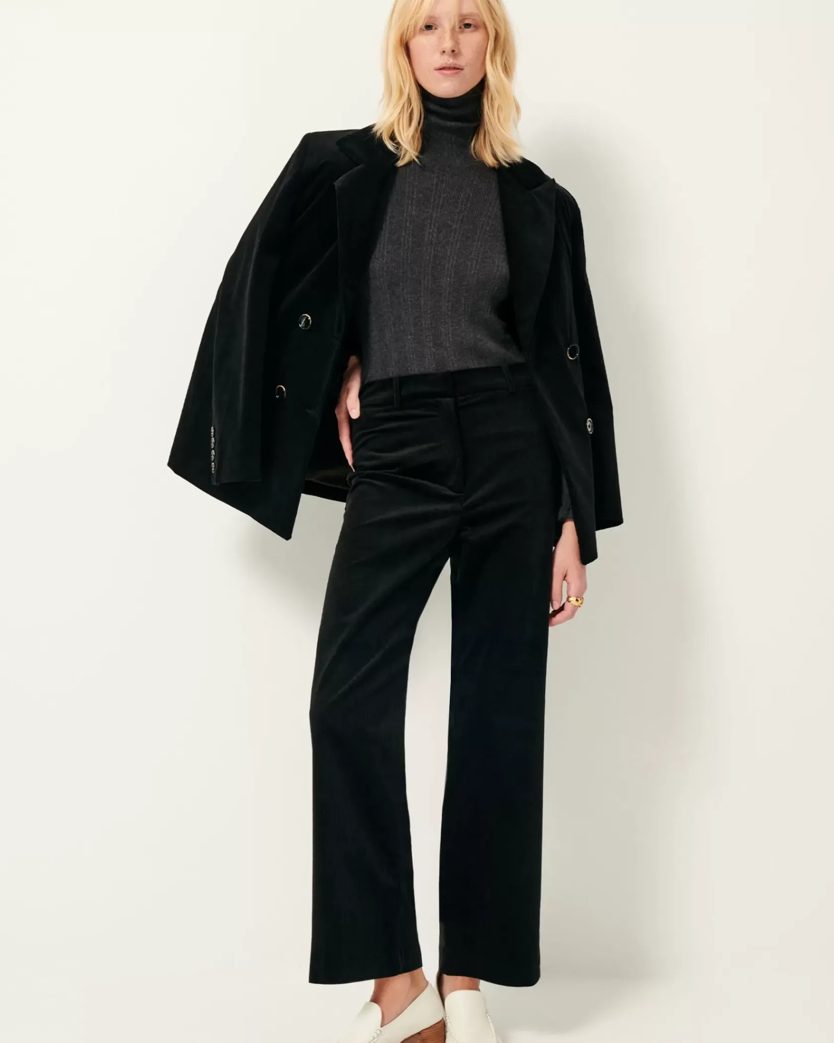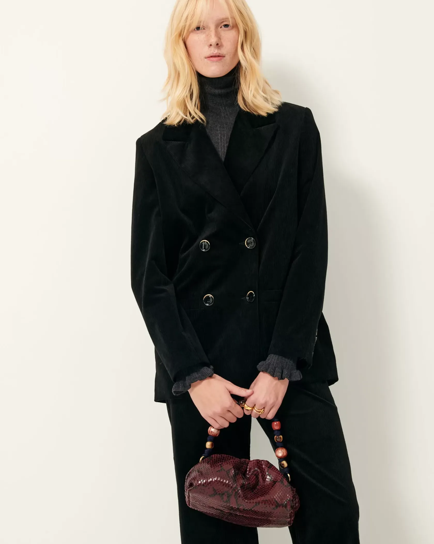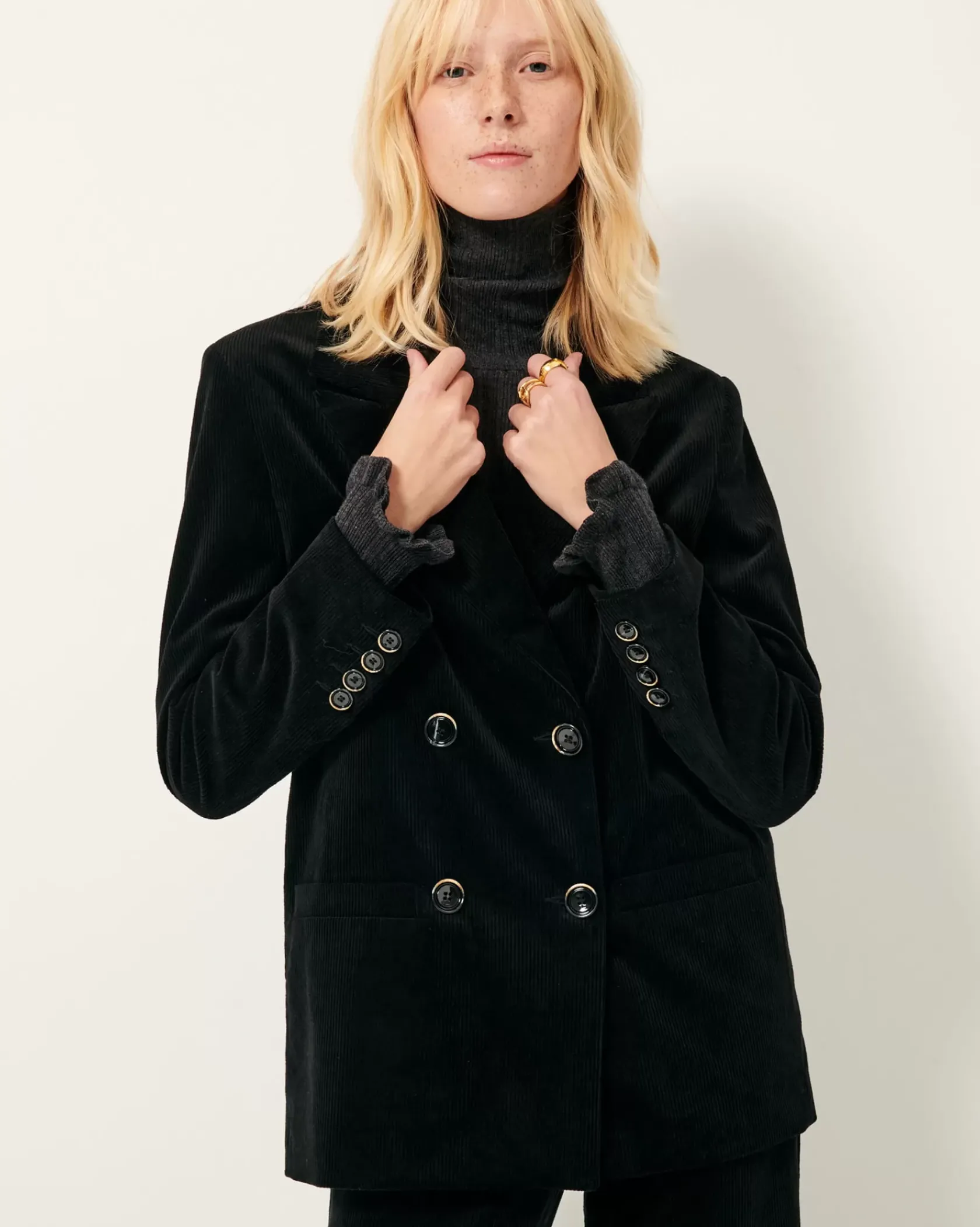 Veste de costume à double boutonnage en velours côtelé 300 raies.