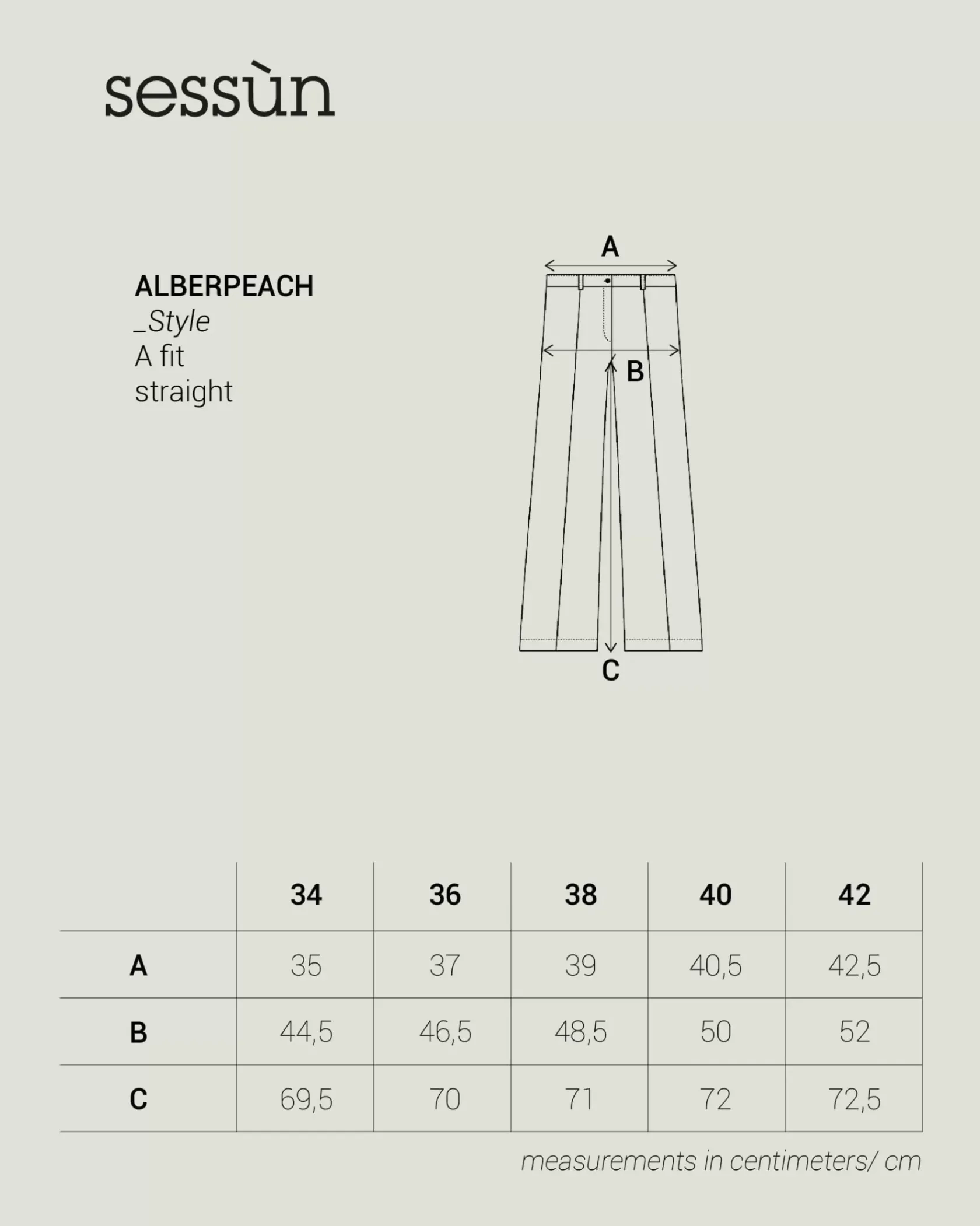 | Size | 34, 36, 38, 40, 42 |