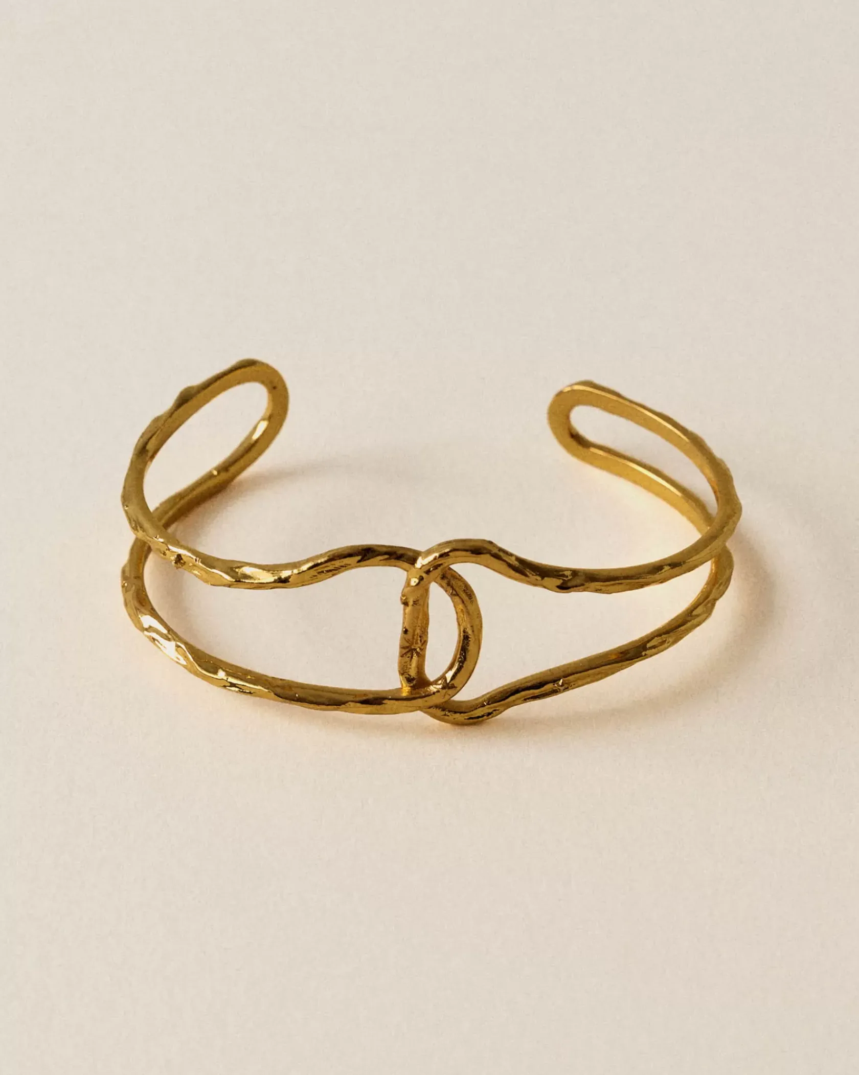 Bracelet anneaux noués finition dorée texturée.