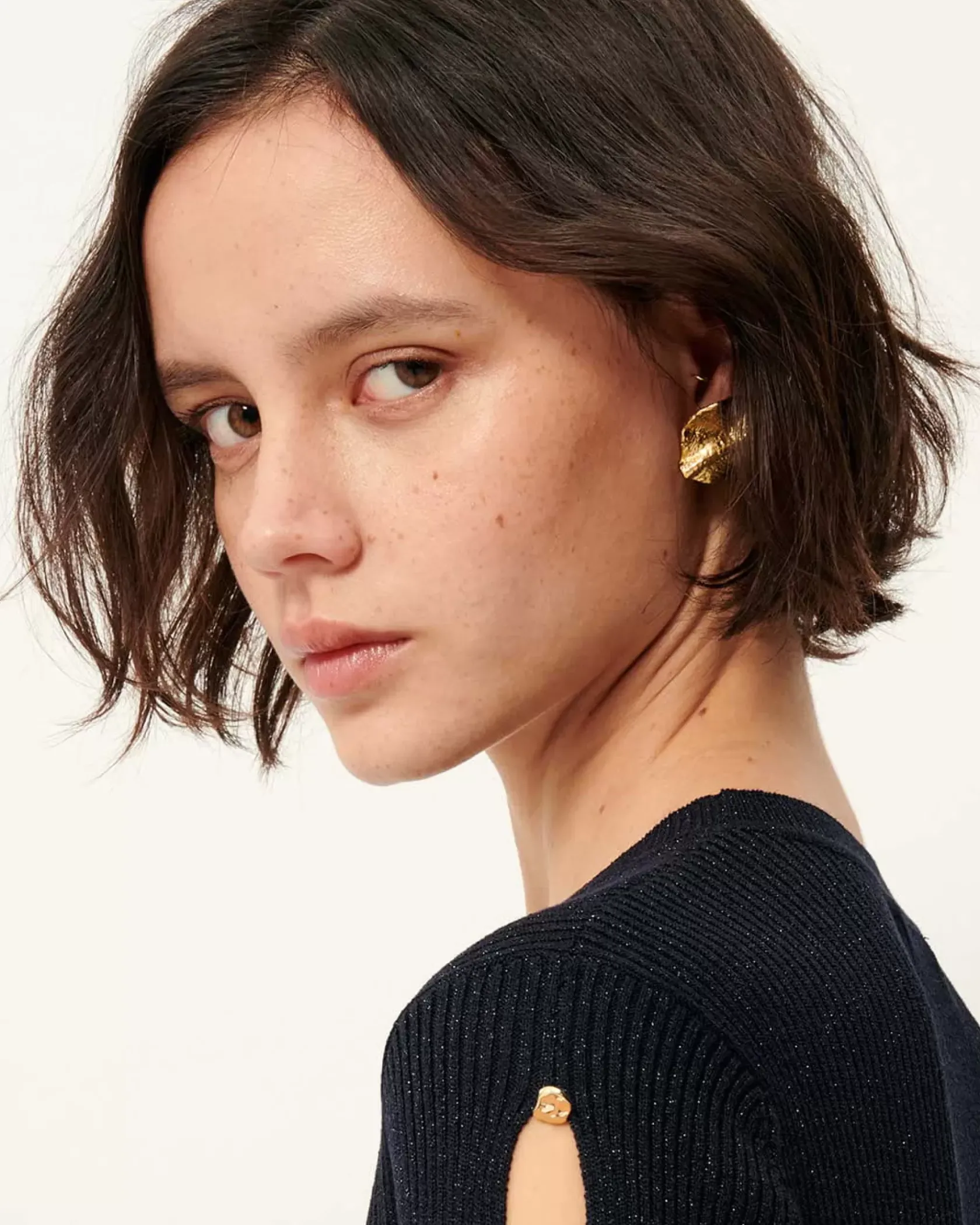 Boucles d’oreilles pastilles finition dorée avec effet matiéré et reliefs étoilés.