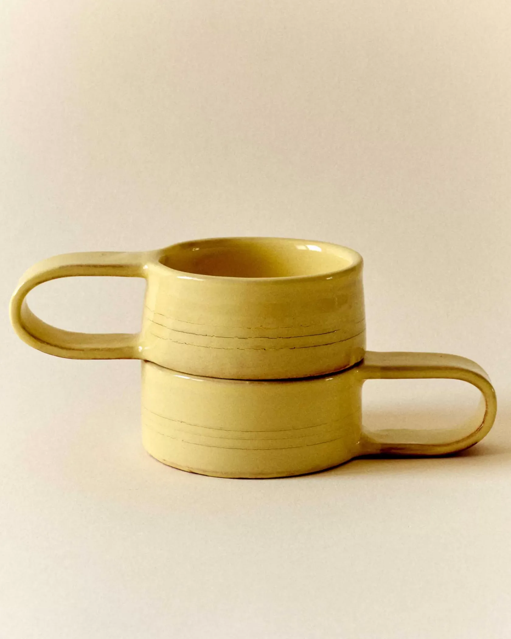 Notre tasse revisitée dans un nouveau coloris lumineux d’été. Son dessin à large anse inspiré des années 1960 est engravé de lignes discrètes.