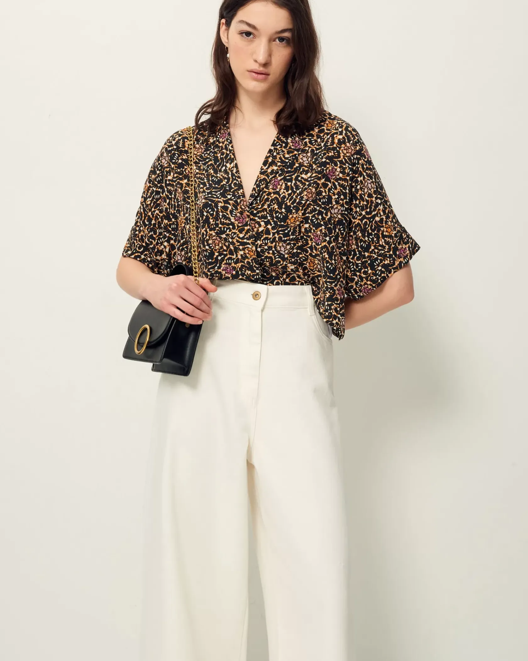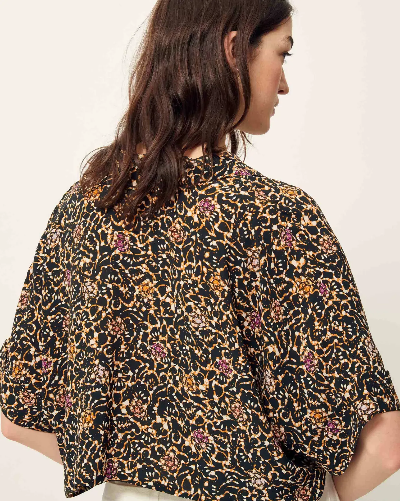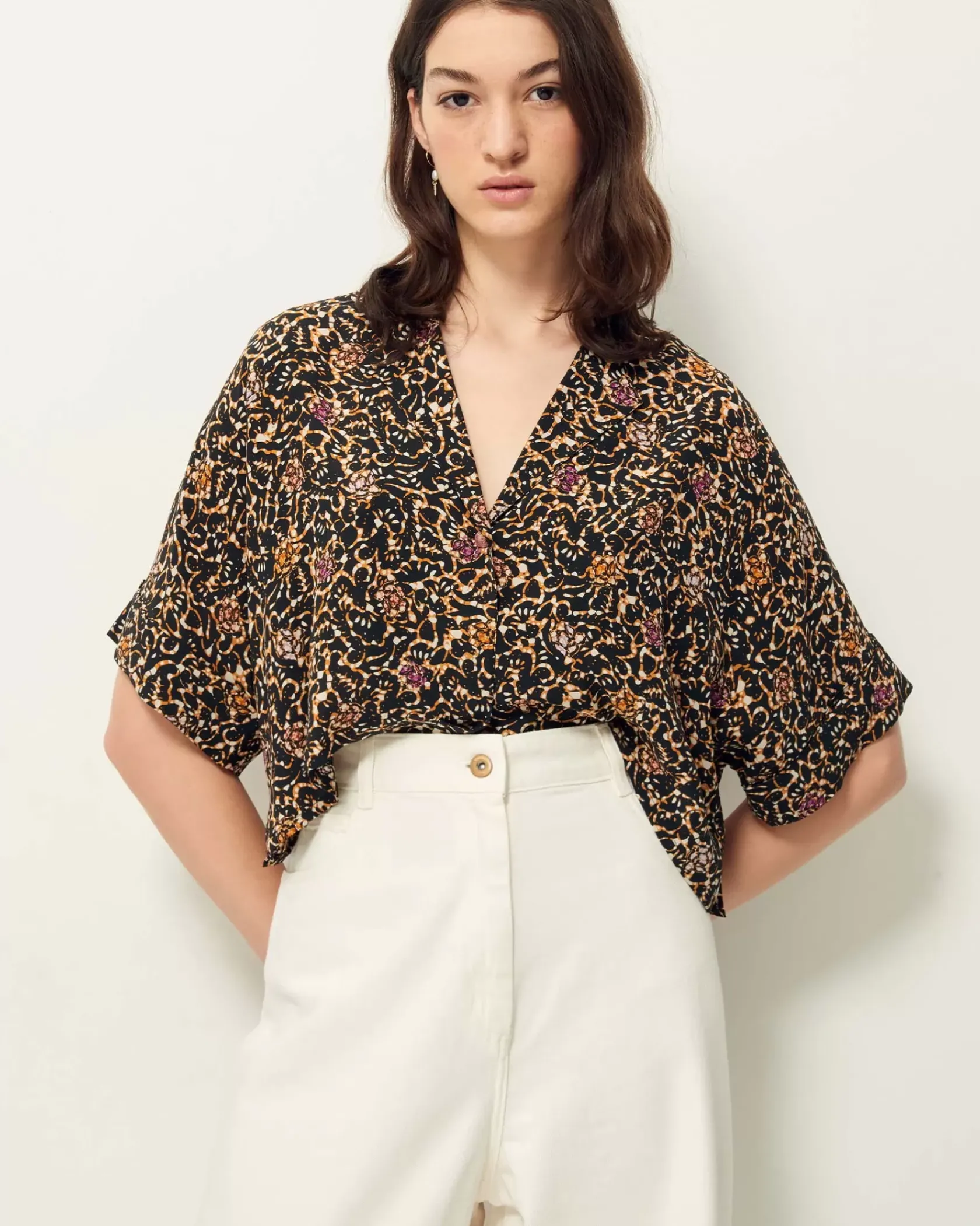 Chemisette courte esprit pyjama en toile de viscose fluide et aérienne imprimée, motif exclusif Sessùn.