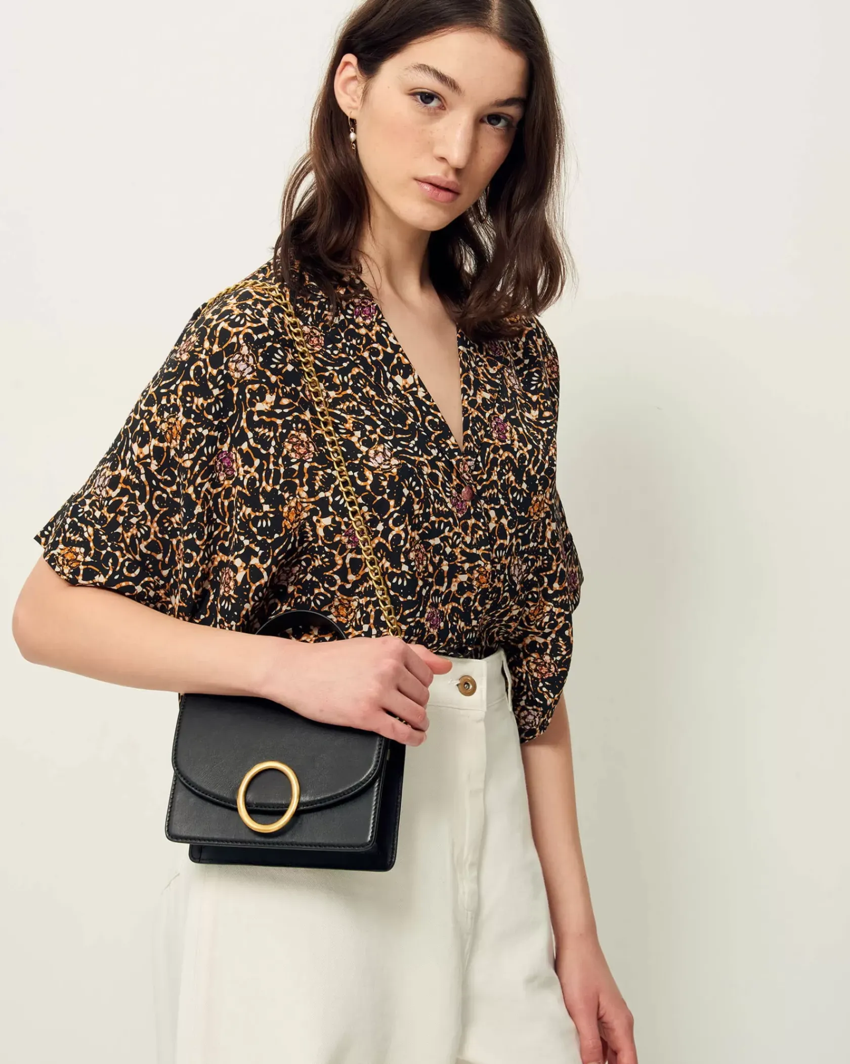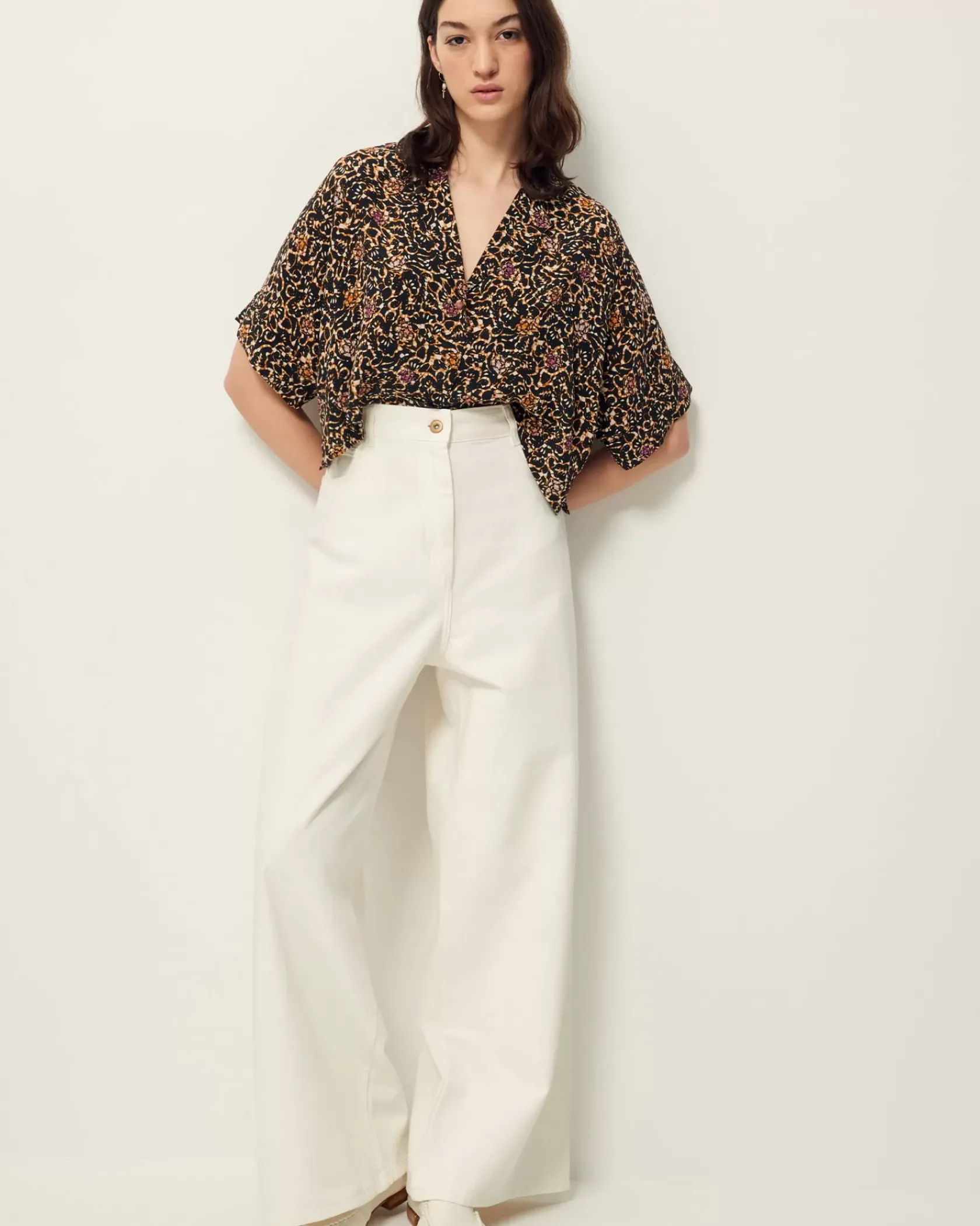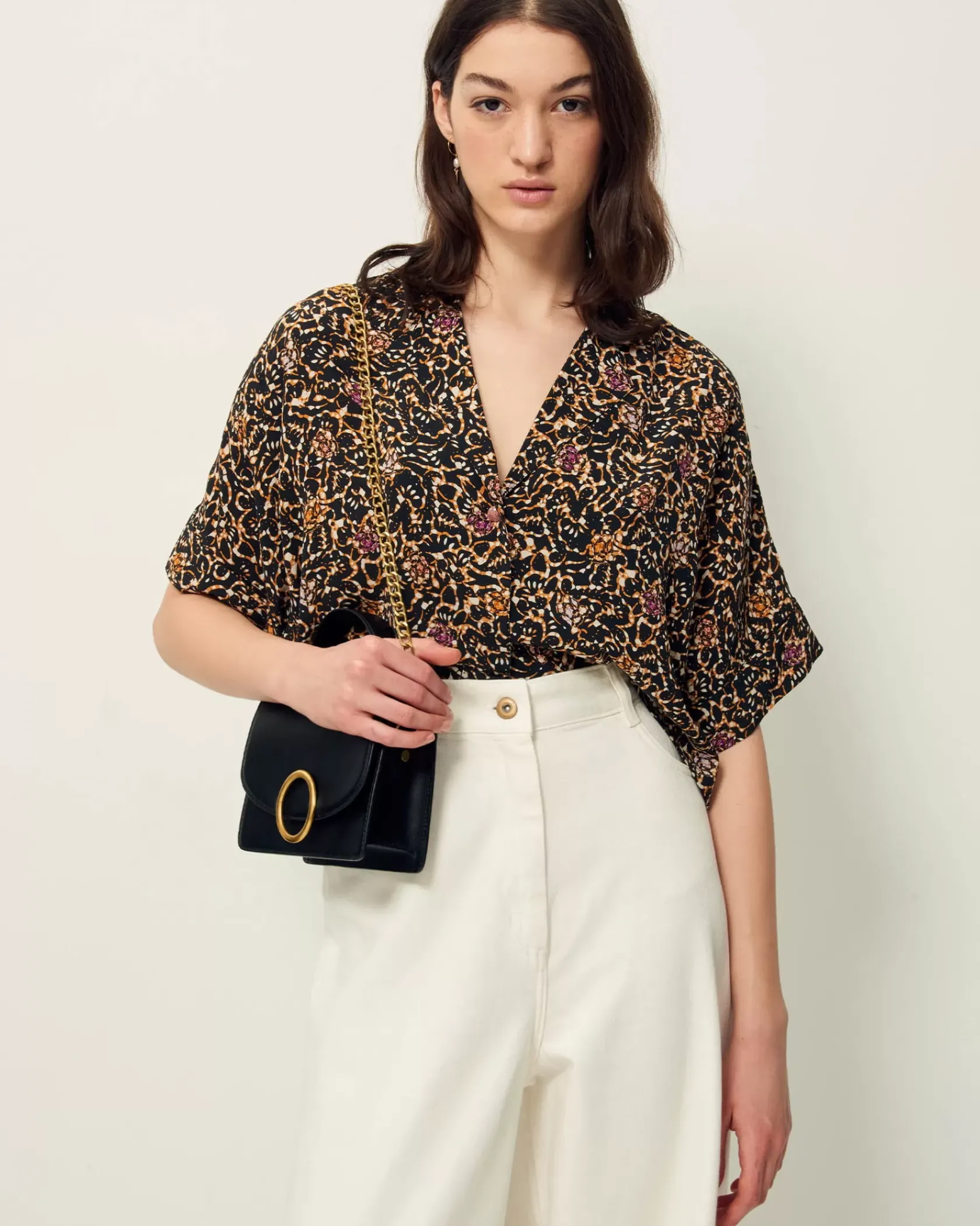 Chemisette courte esprit pyjama en toile de viscose fluide et aérienne imprimée, motif exclusif Sessùn.
