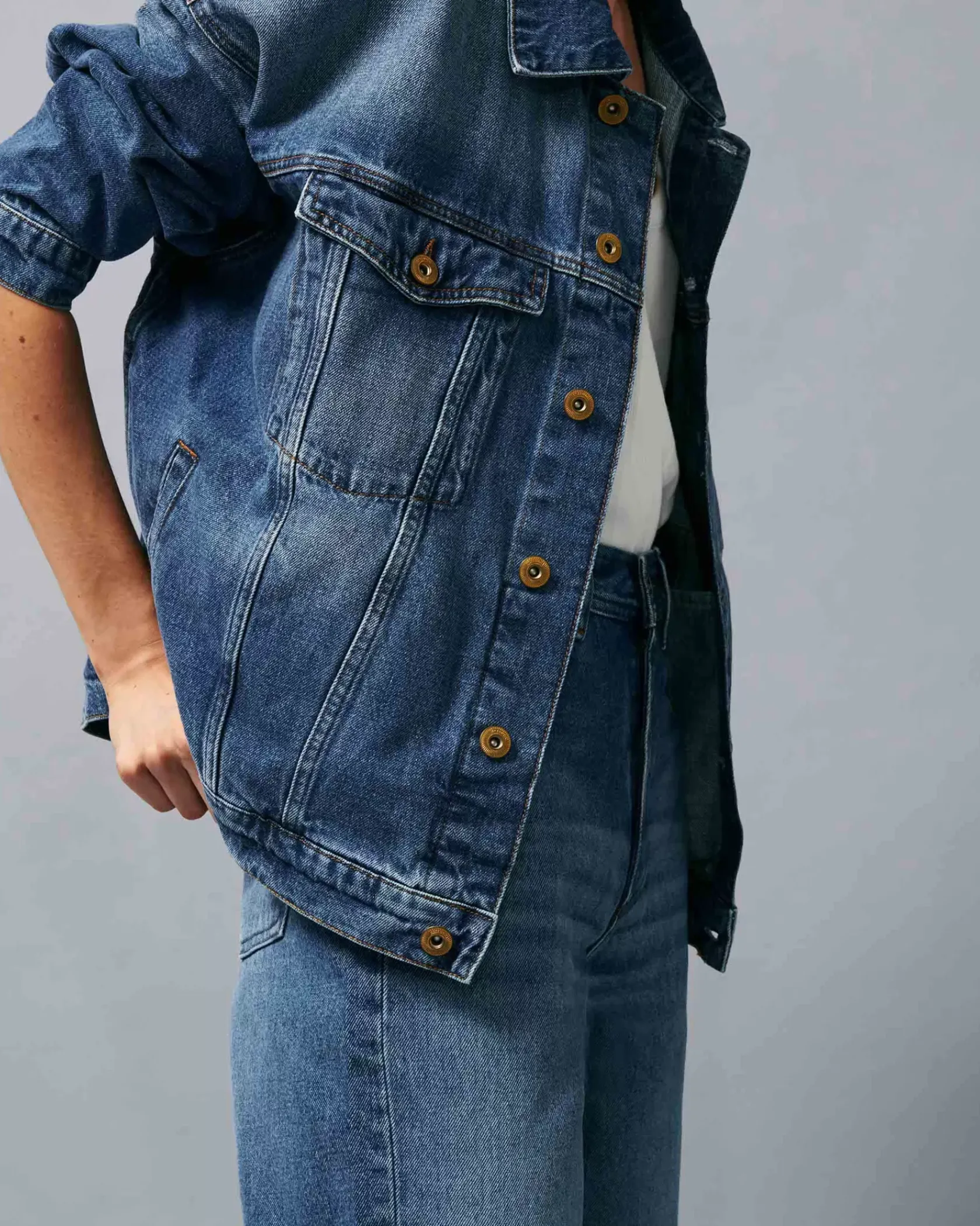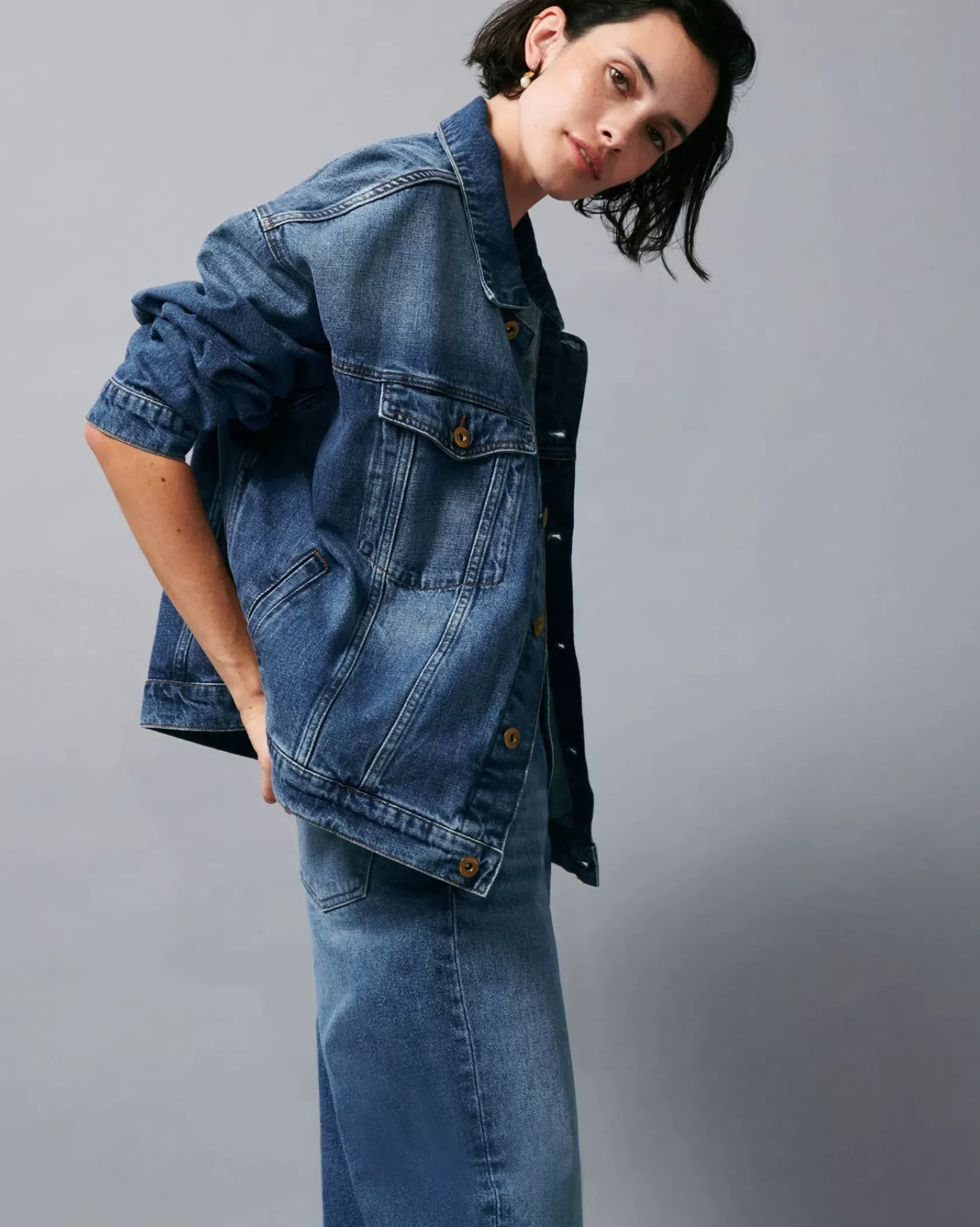Blouson oversize en denim stonewashé.