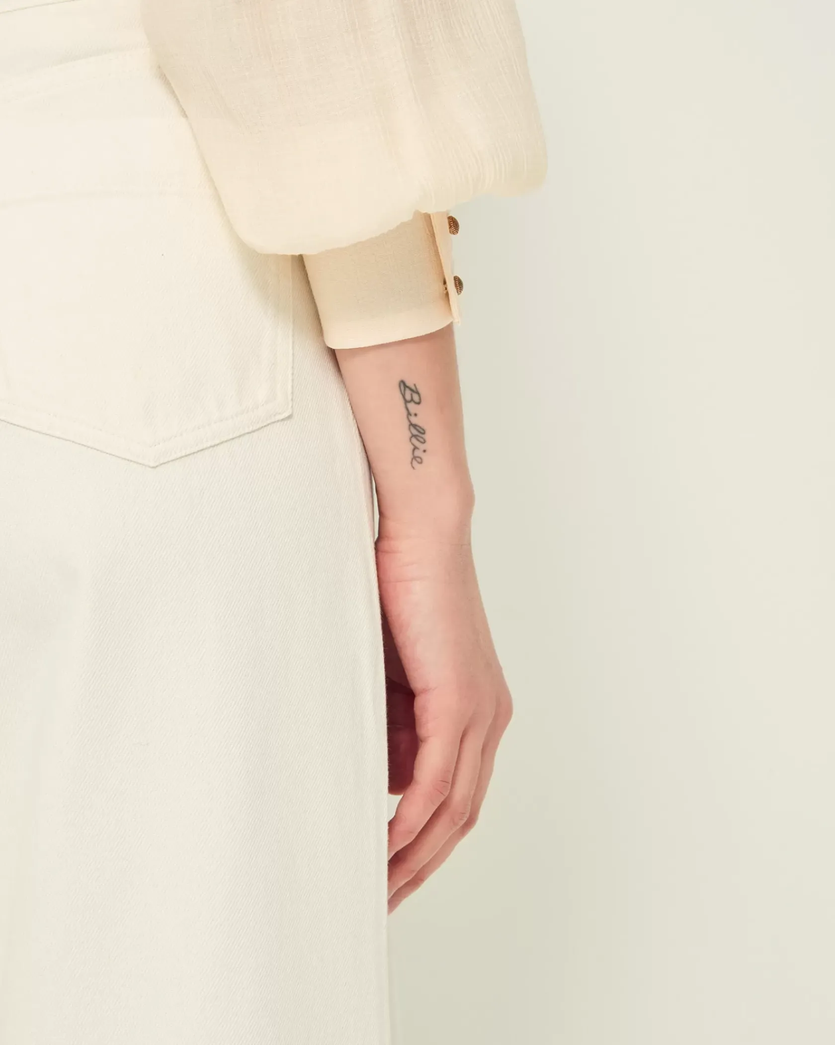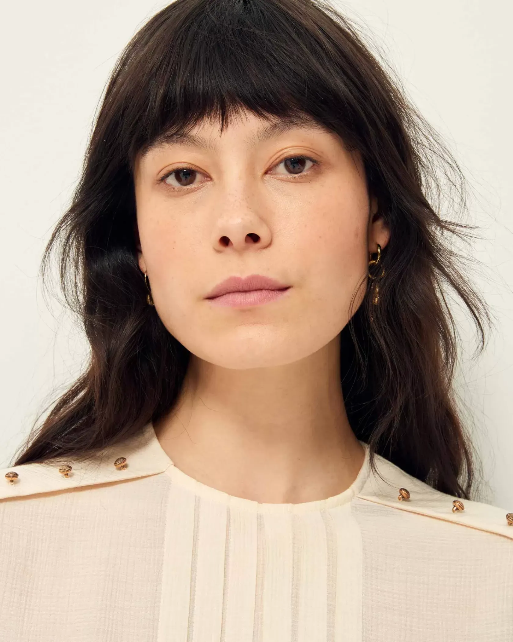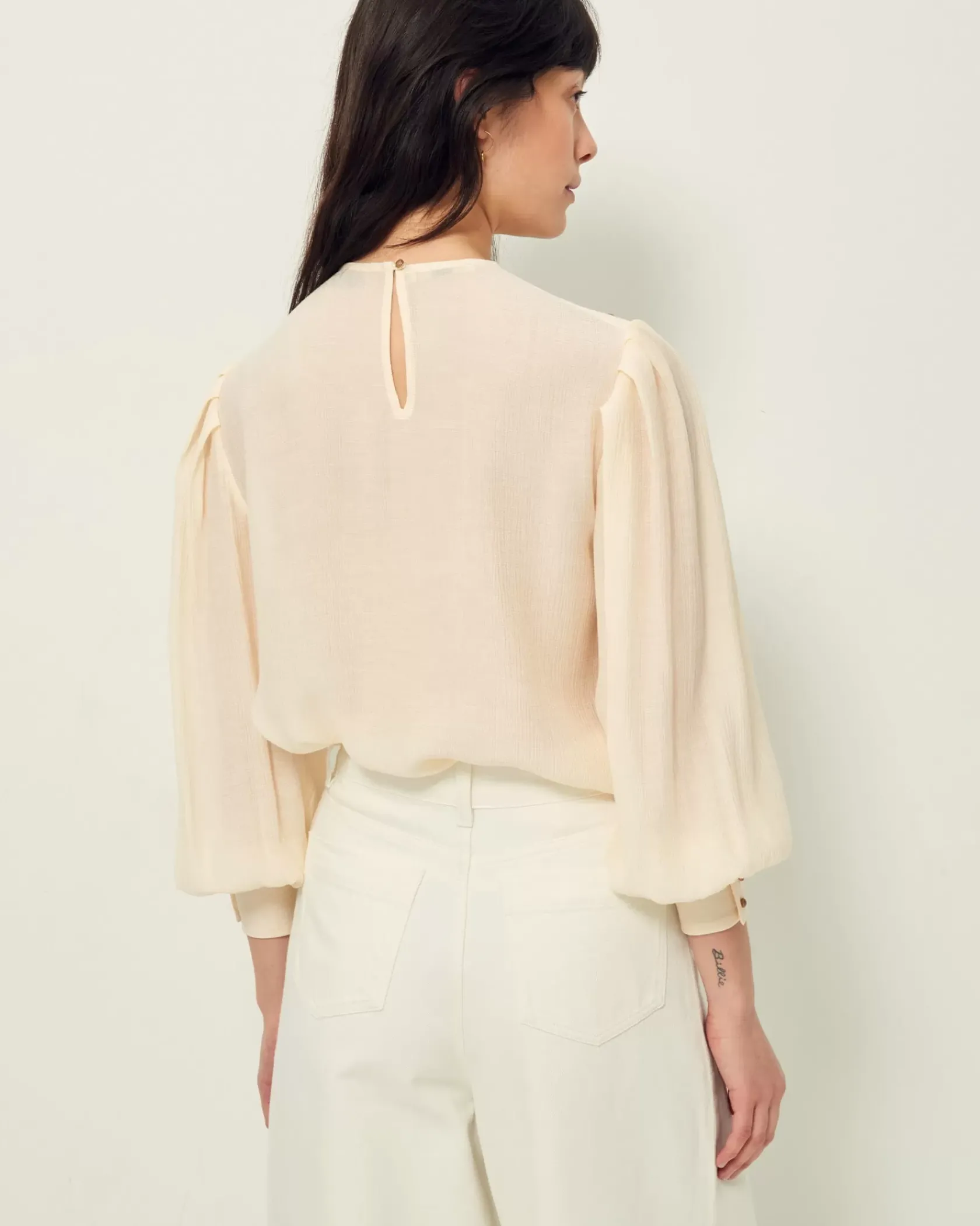 Blouse col rond et détails de plis couchés en crépon gaufré de viscose.