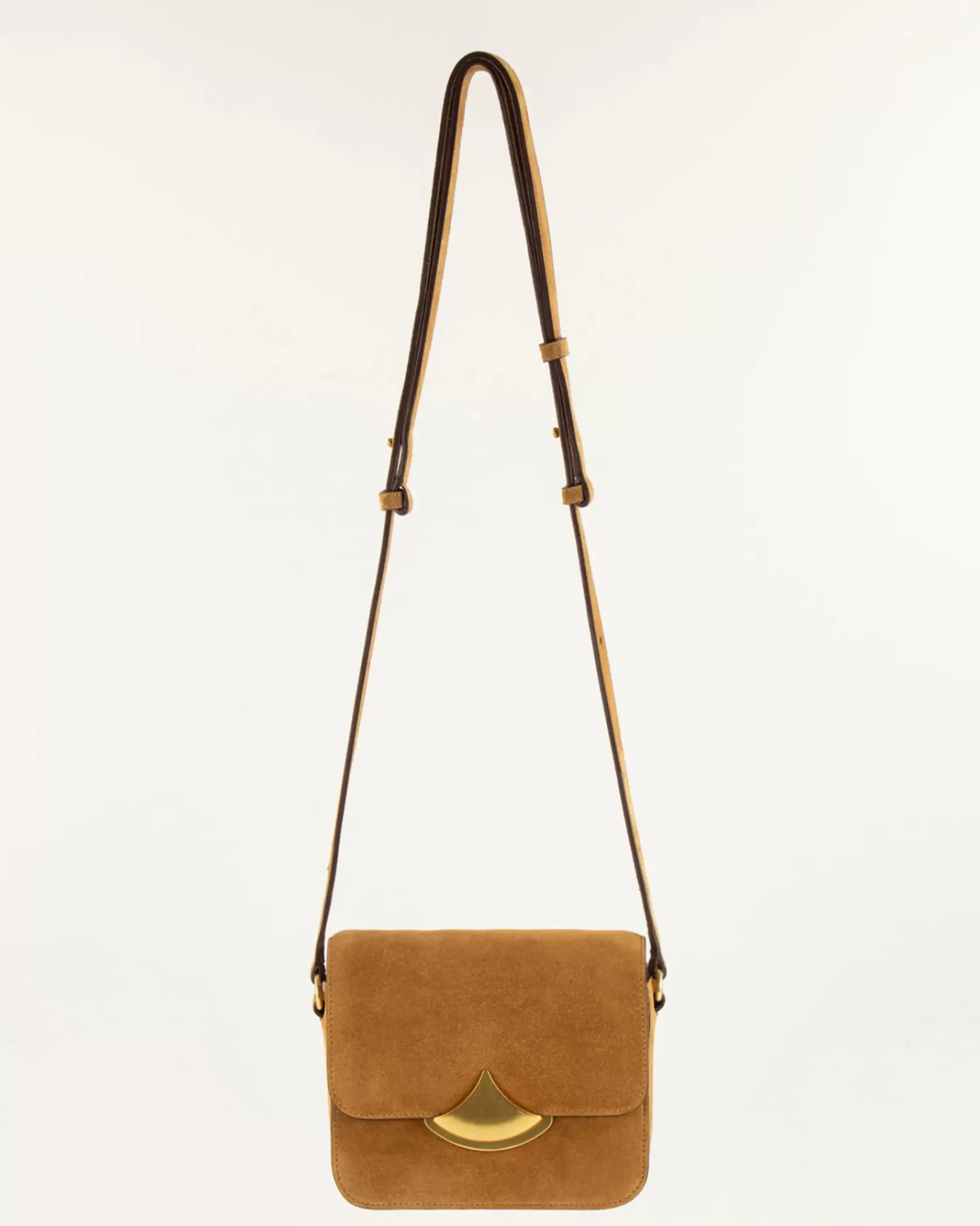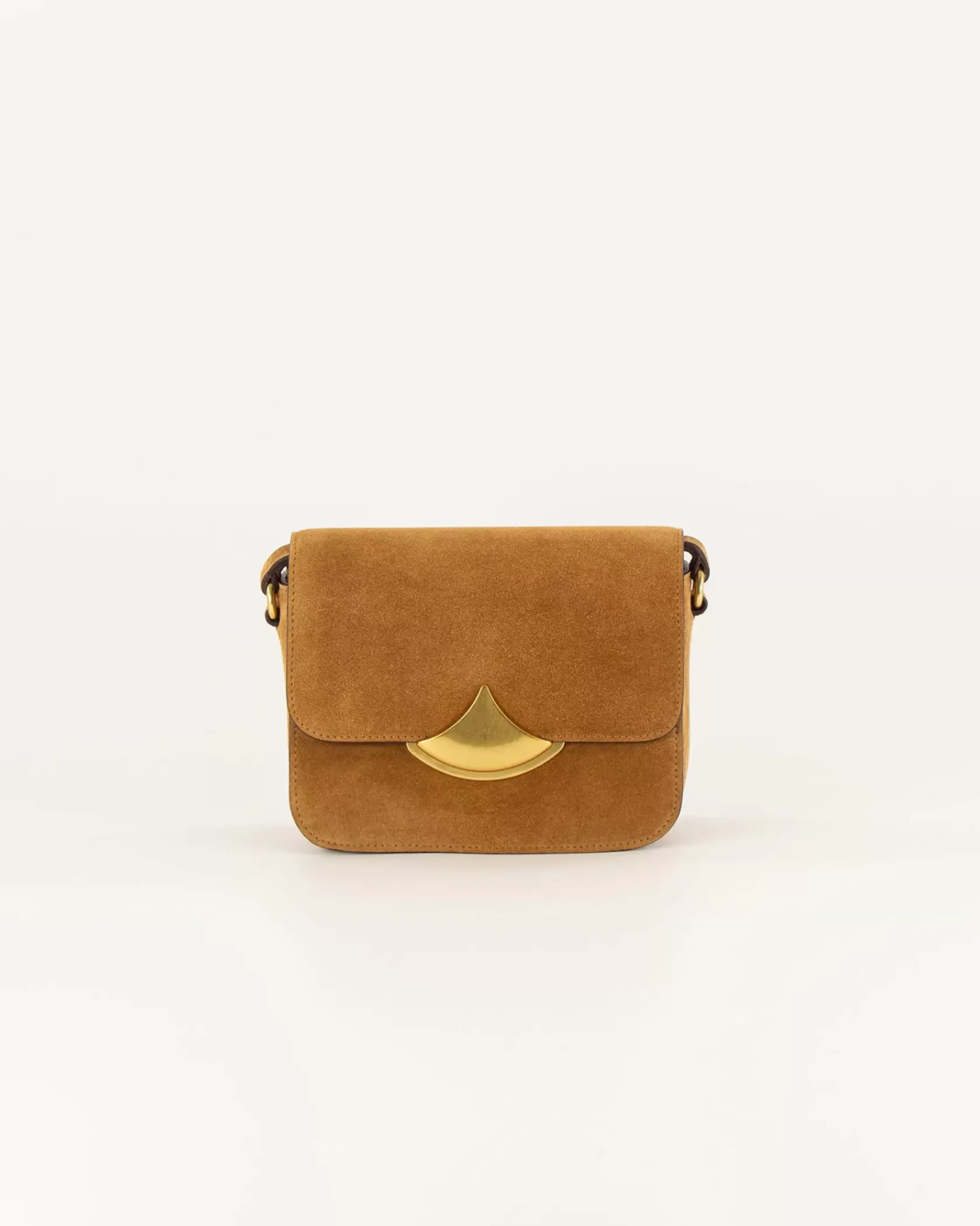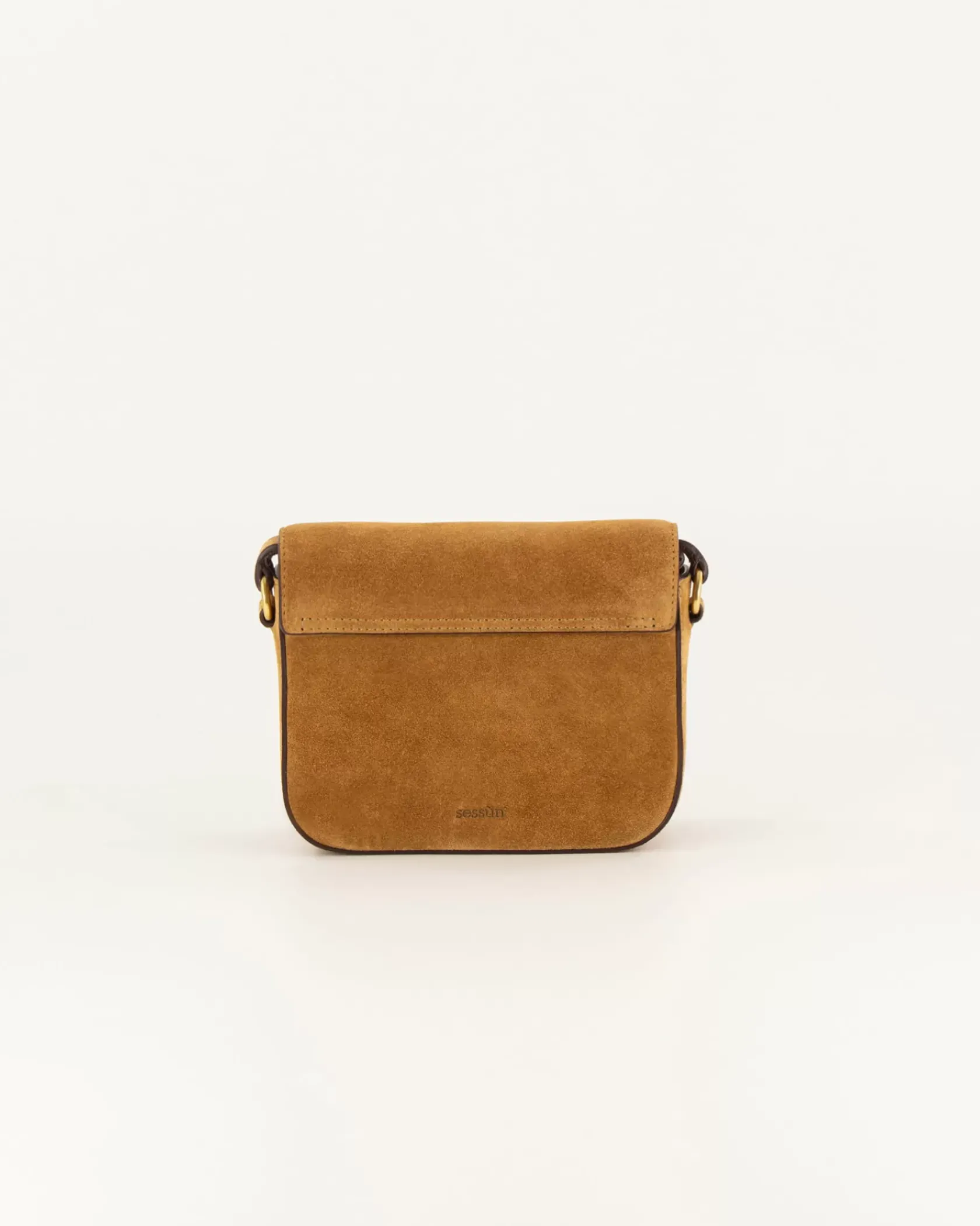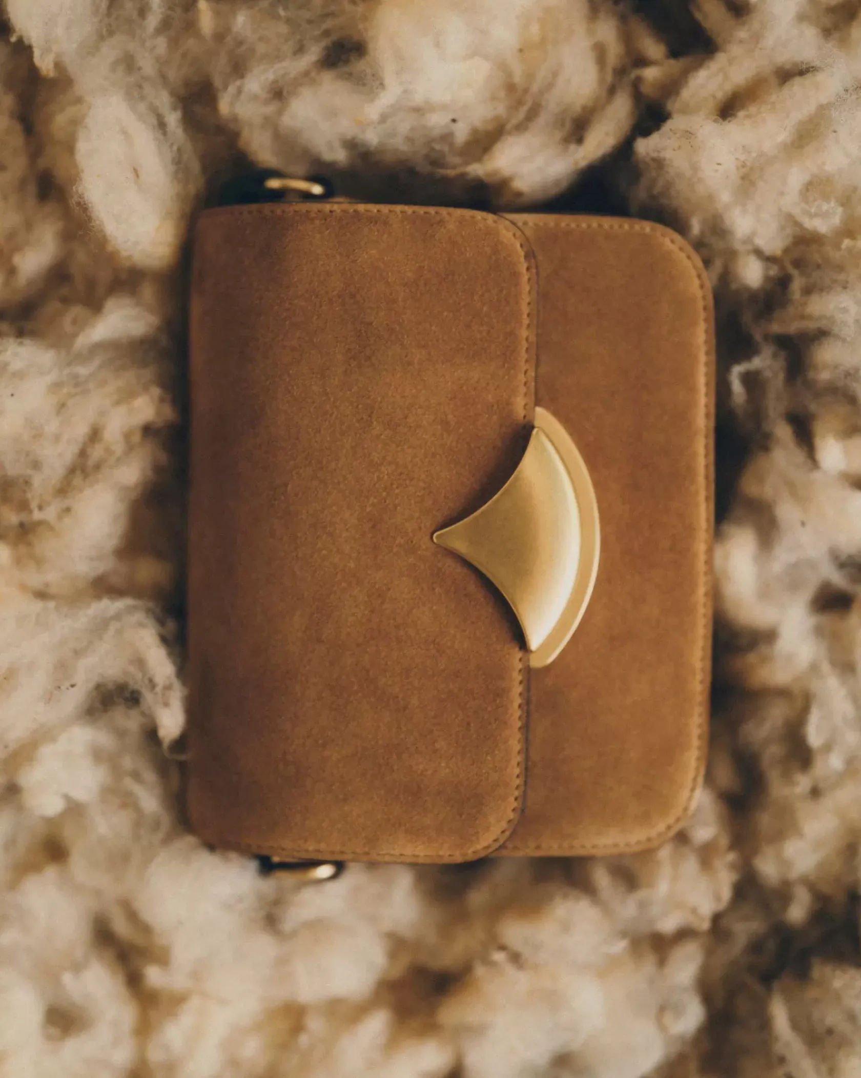 Petit sac boîte à deux compartiments en cuir de vache suédé avec fermoir magnétique, développement exclusif Sessùn.