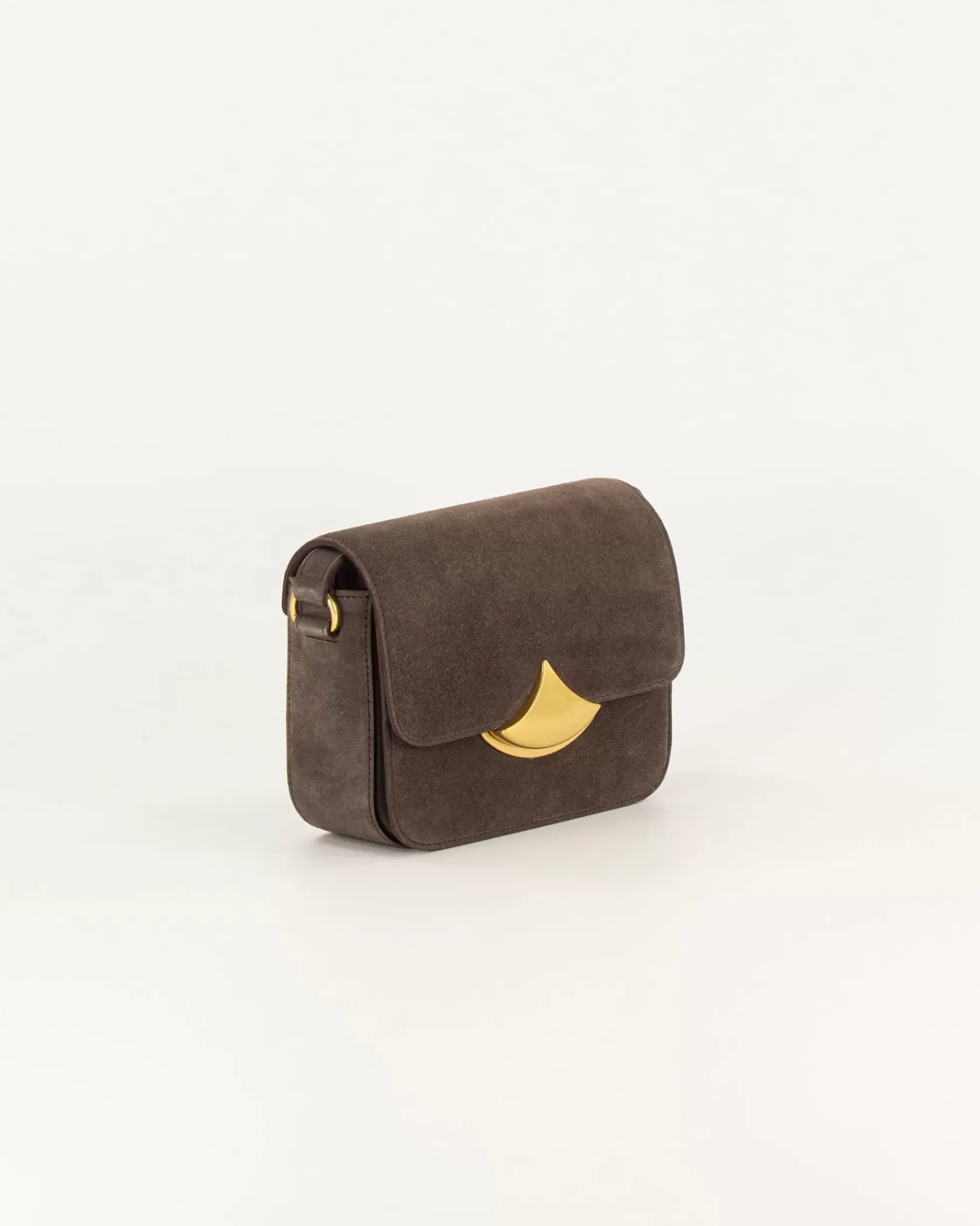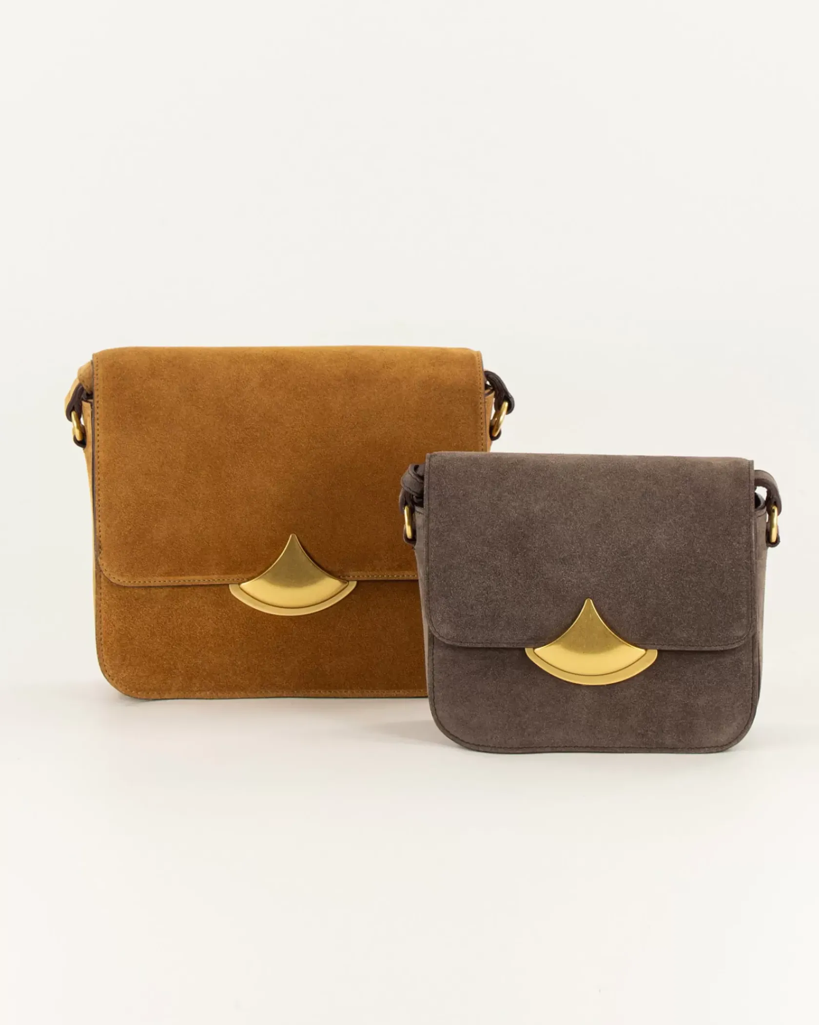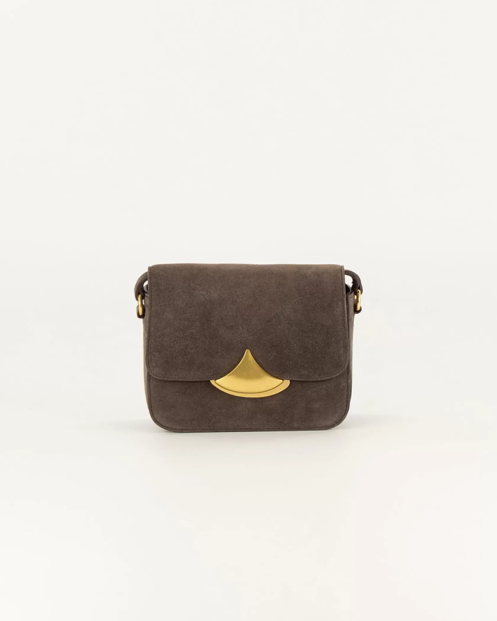 Petit sac boîte à deux compartiments en cuir de vache suédé avec fermoir magnétique, développement exclusif Sessùn.
