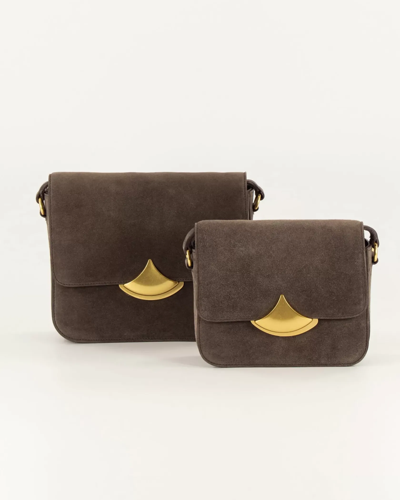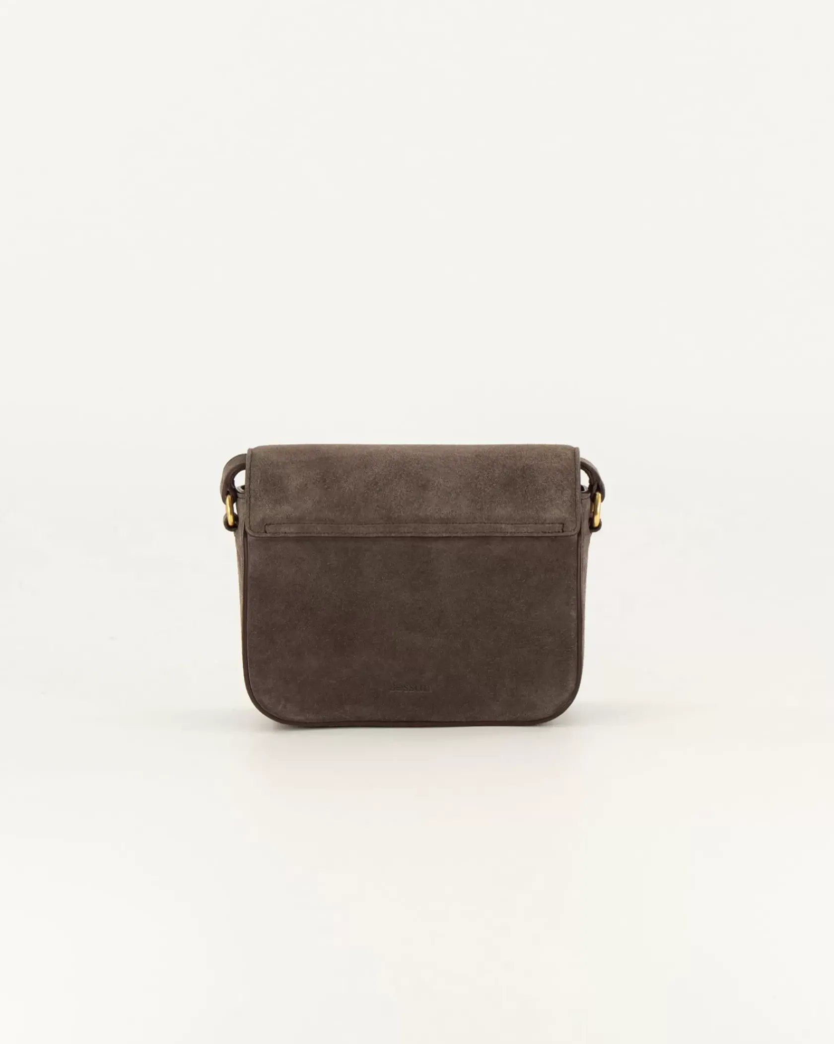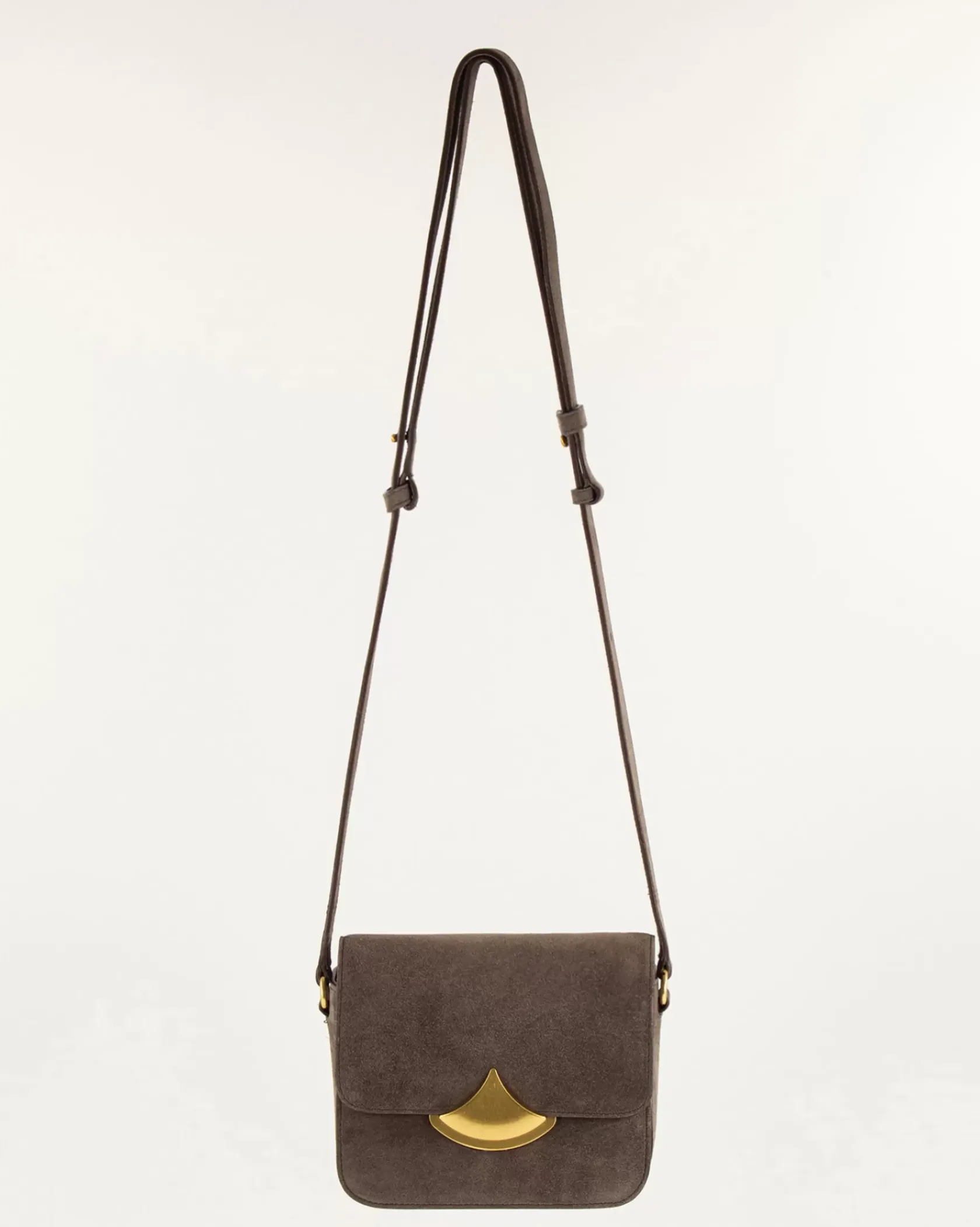 Petit sac boîte à deux compartiments en cuir de vache suédé avec fermoir magnétique, développement exclusif Sessùn.