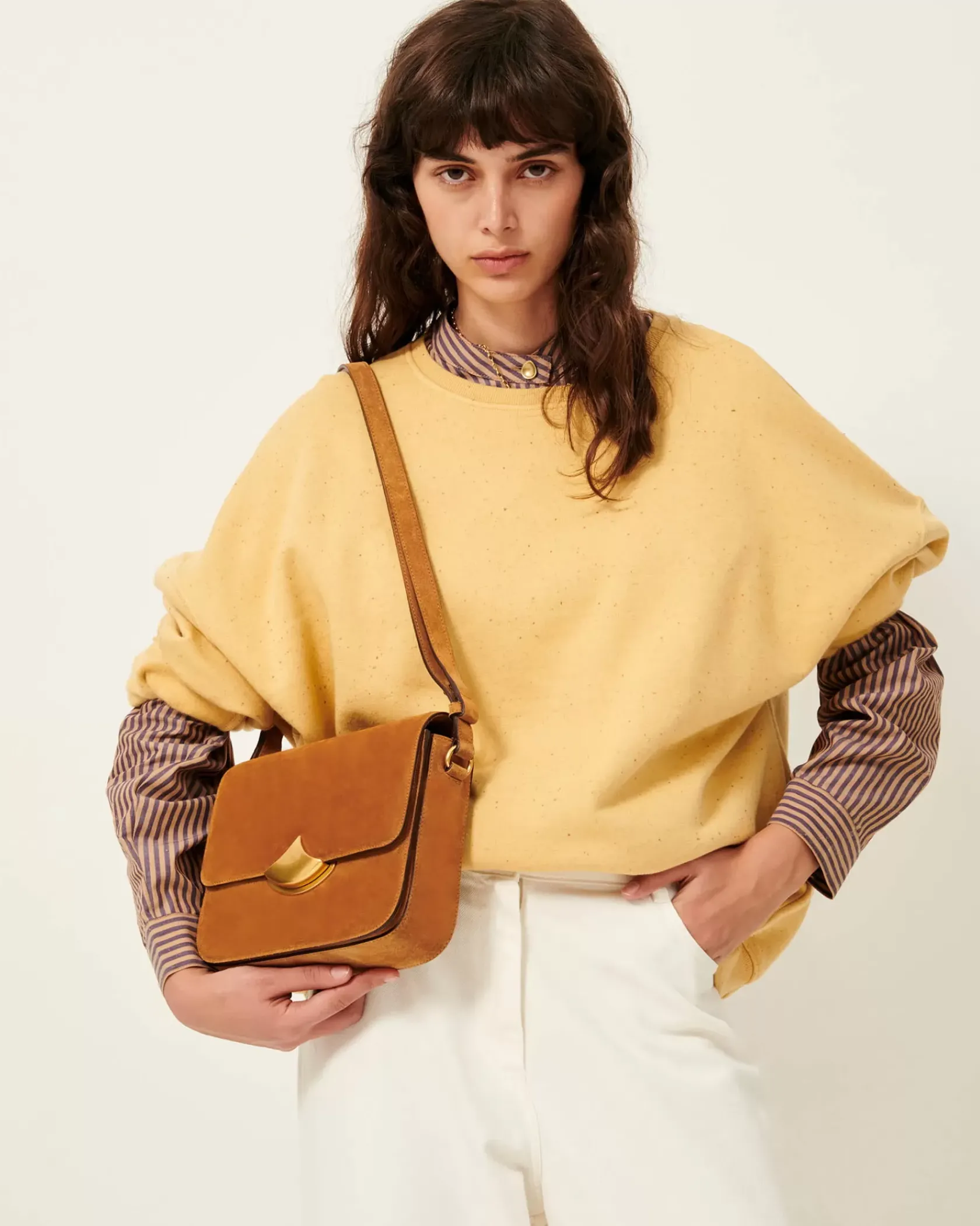 Sac boîte à deux compartiments en cuir de vache suédé avec fermoir magnétique, développement exclusif Sessùn.