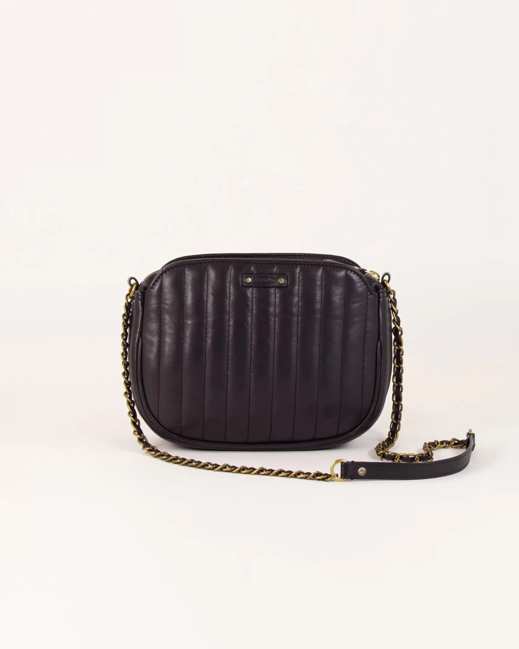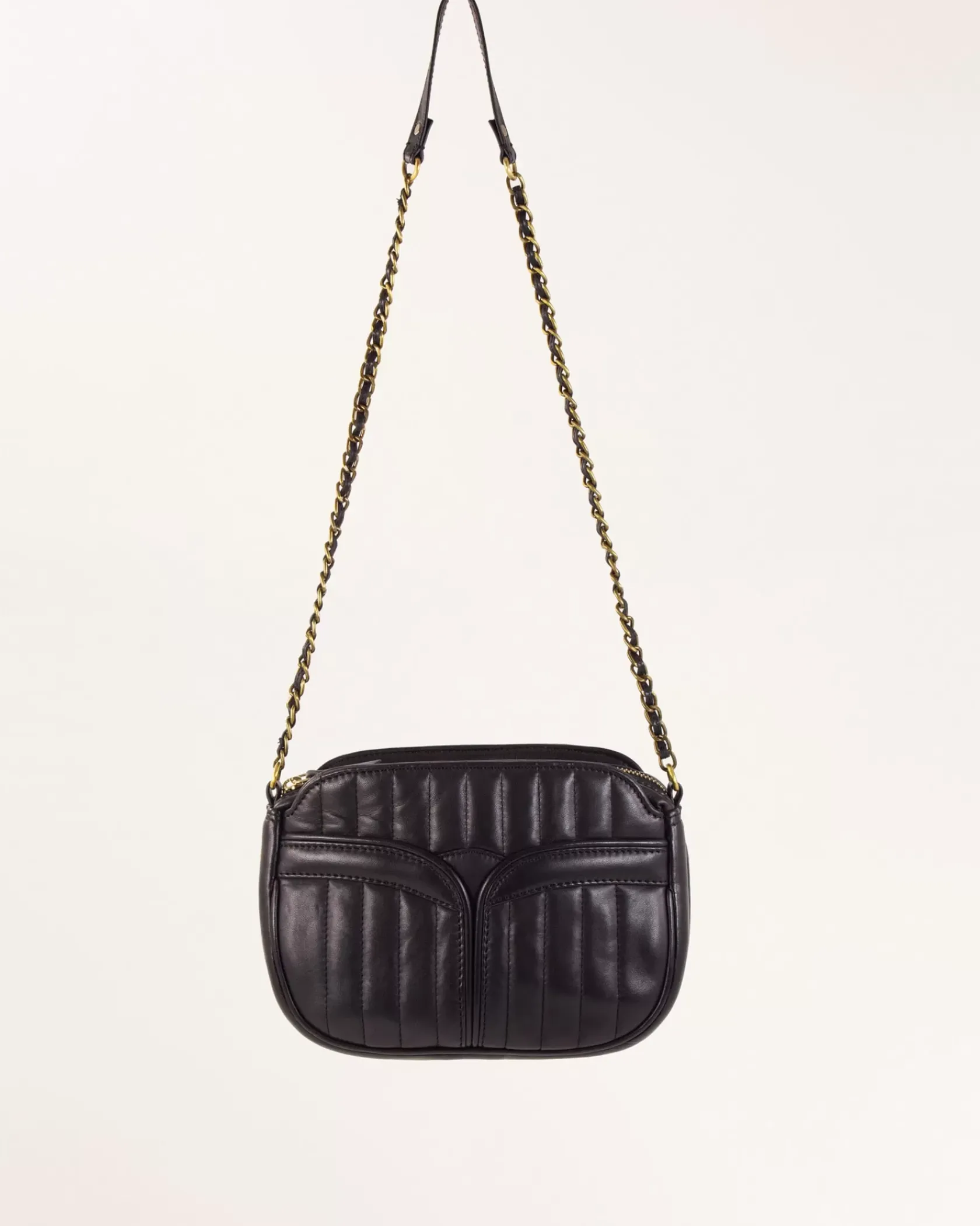 Sac en cuir d’agneau matelassé surpiqué avec anse chaine bijou.
