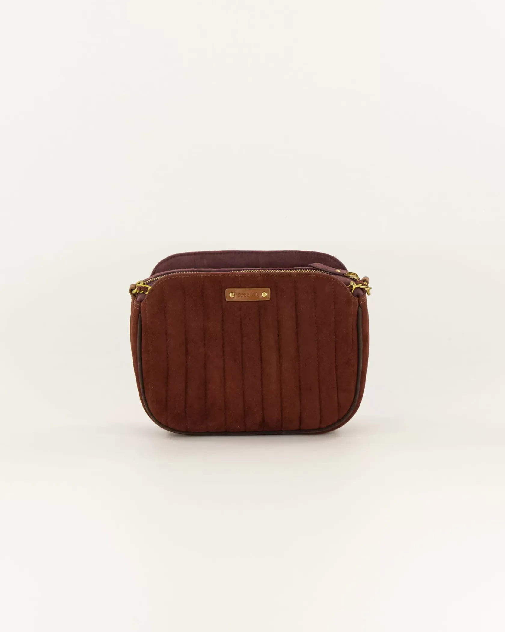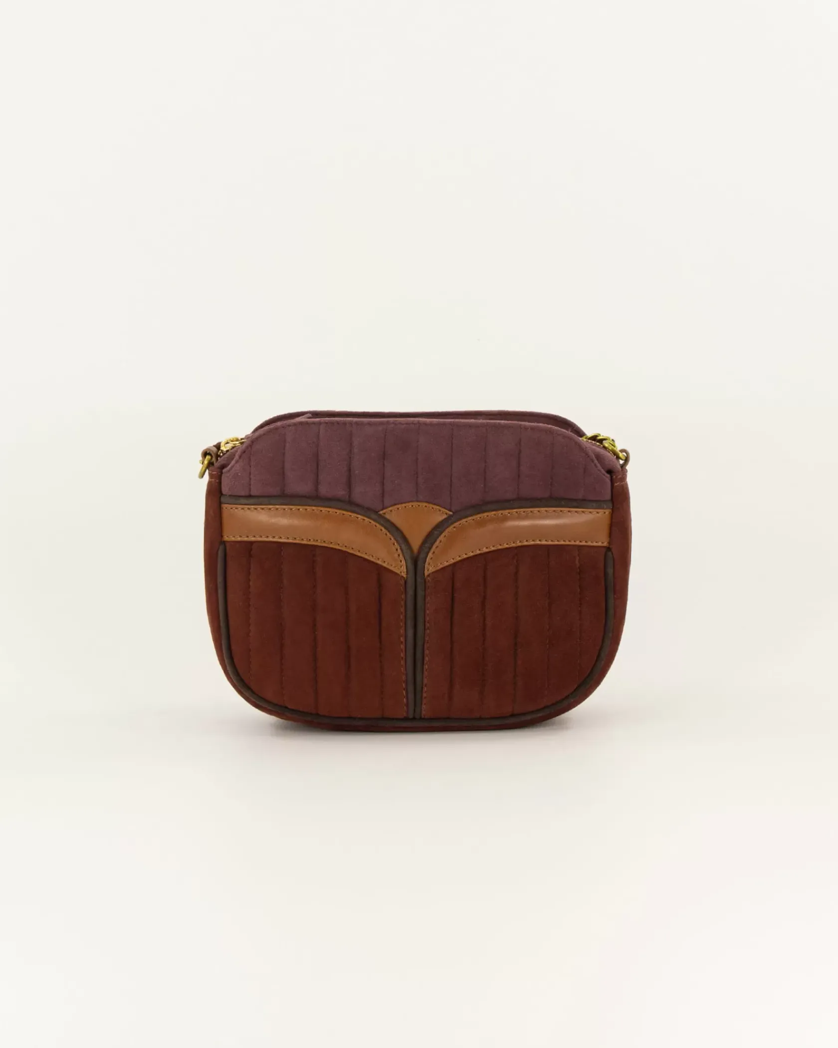 Sac en cuir de chèvre suédé matelassé surpiqué avec anse chaine bijou.
