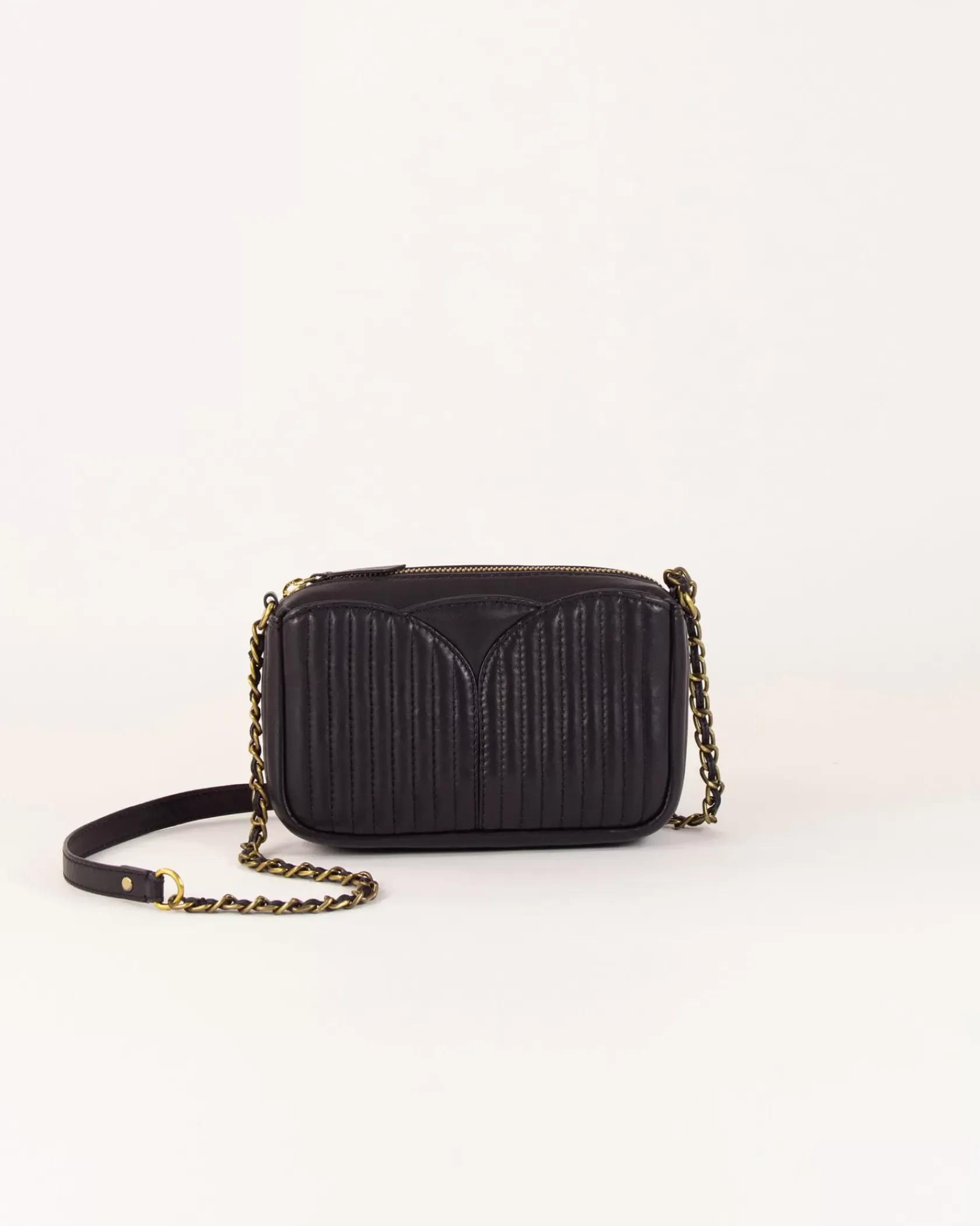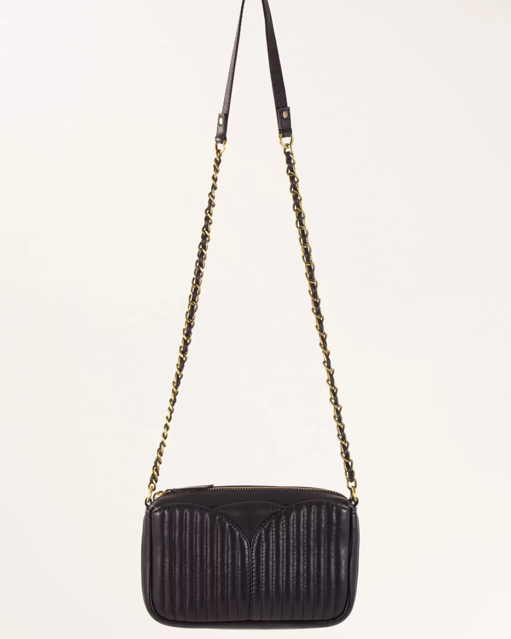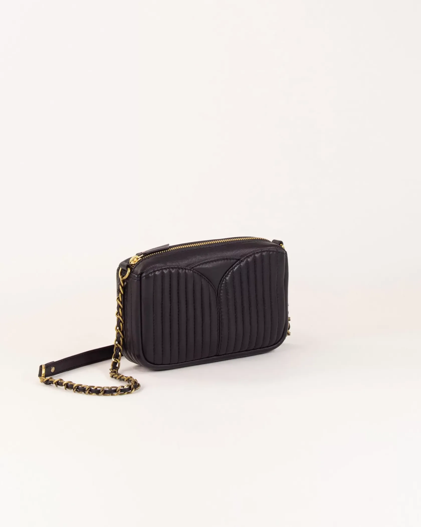 Petit sac en cuir d’agneau matelassé surpiqué avec anse chaine bijou.