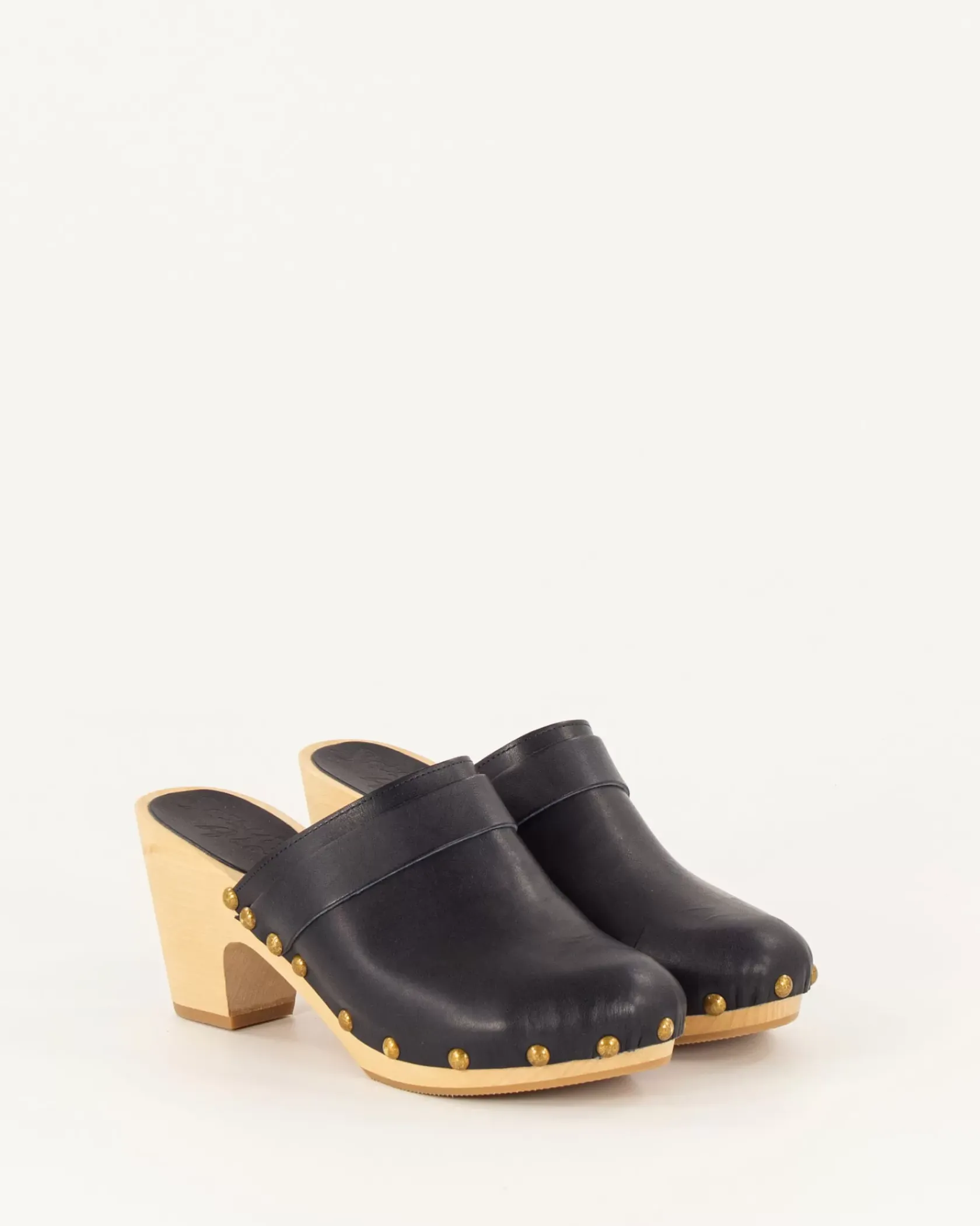 Sabots en cuir de vache à tannage végétal, confectionnés en France.