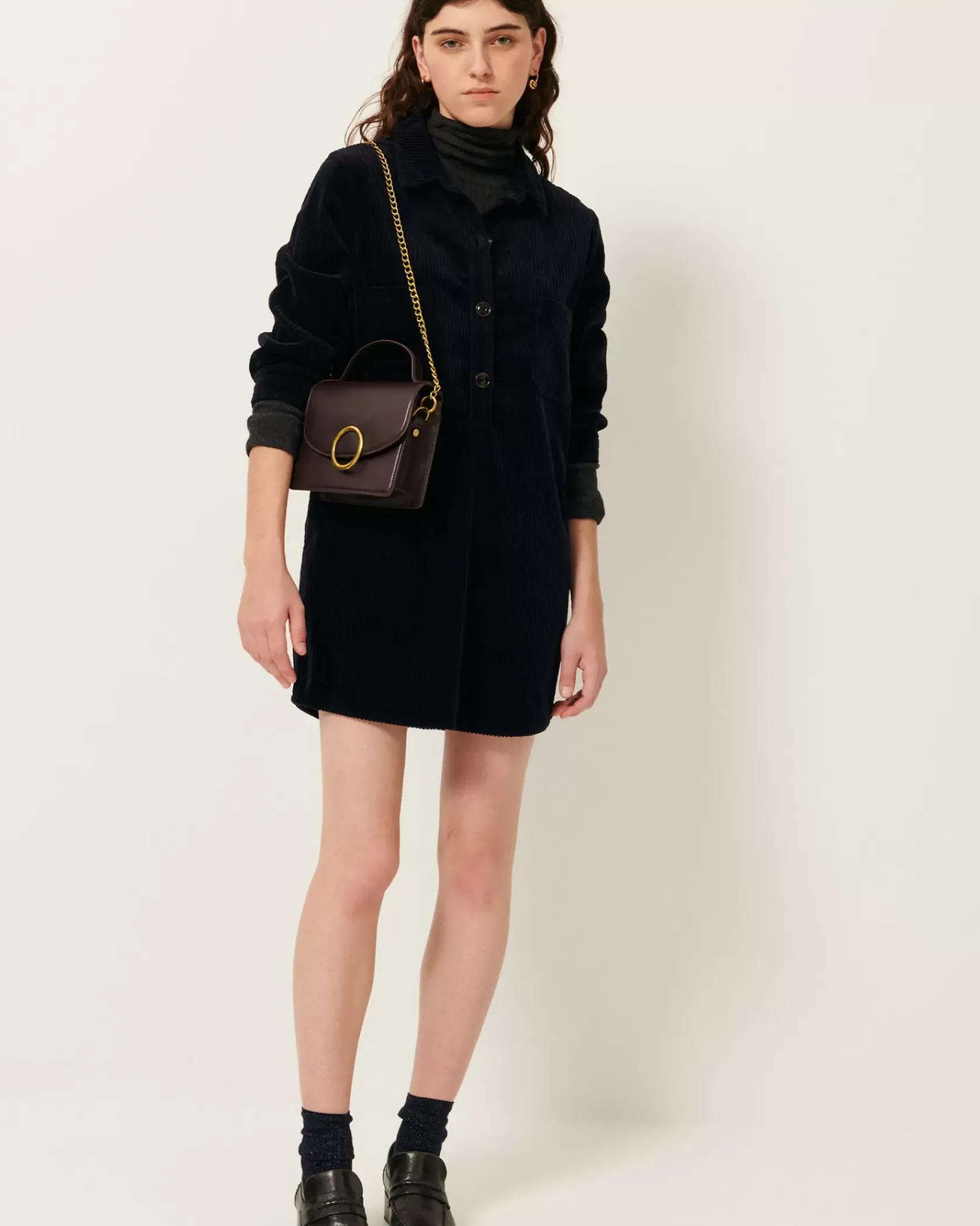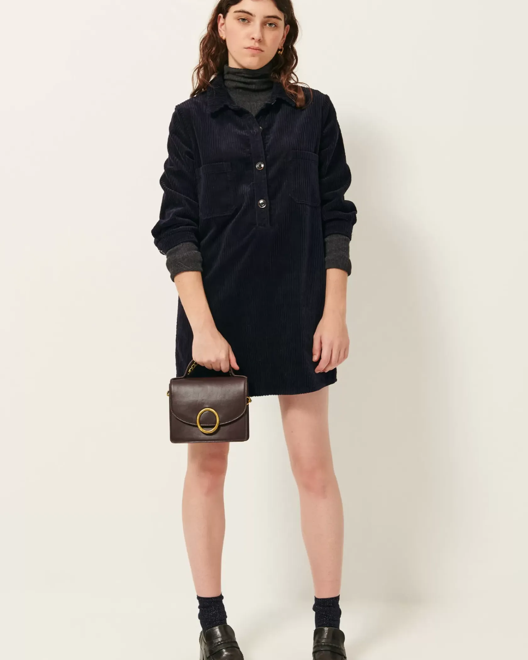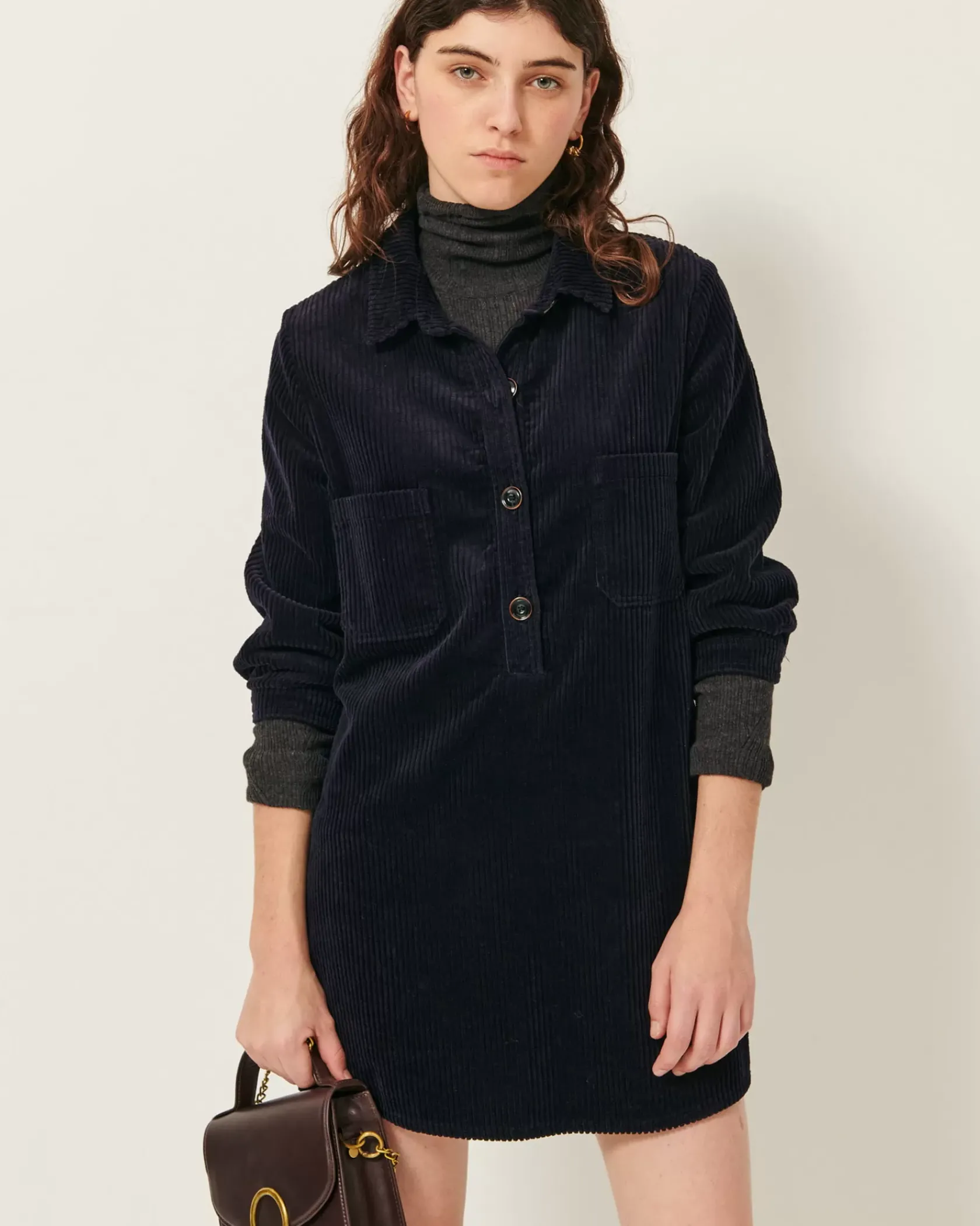 Robe courte esprit liquette en velours côtelé 500 raies, lavé, apprêté en France.