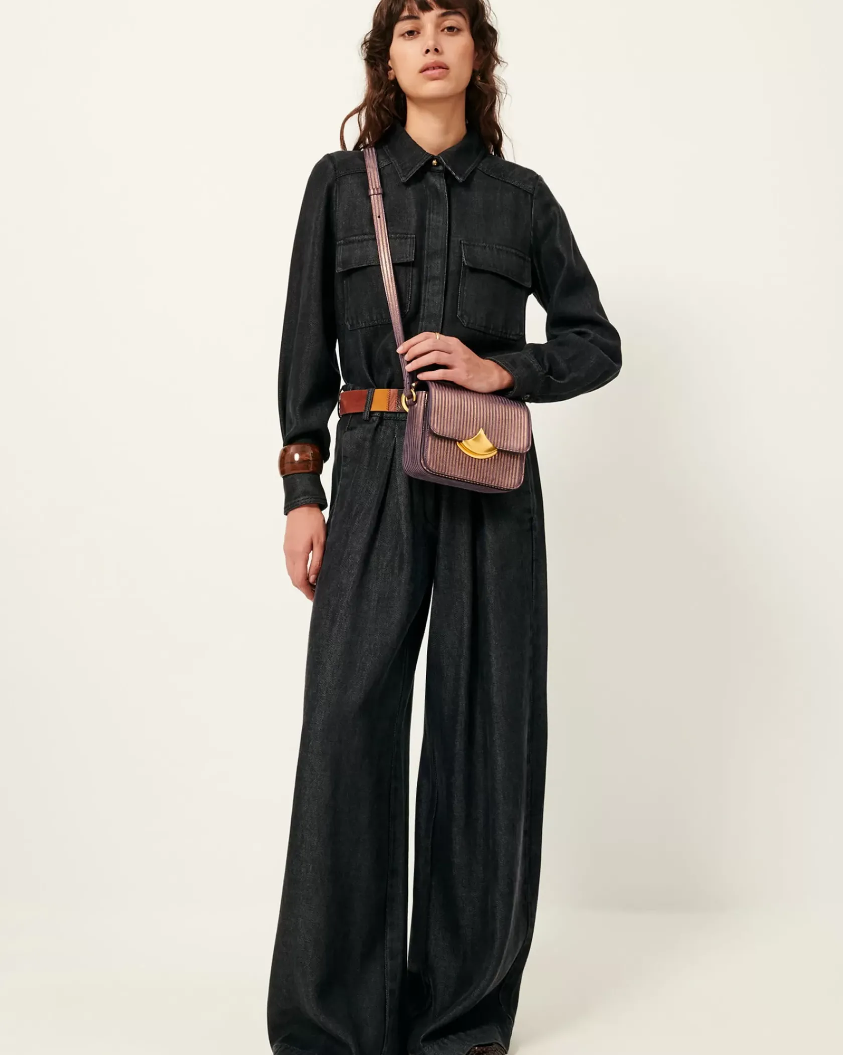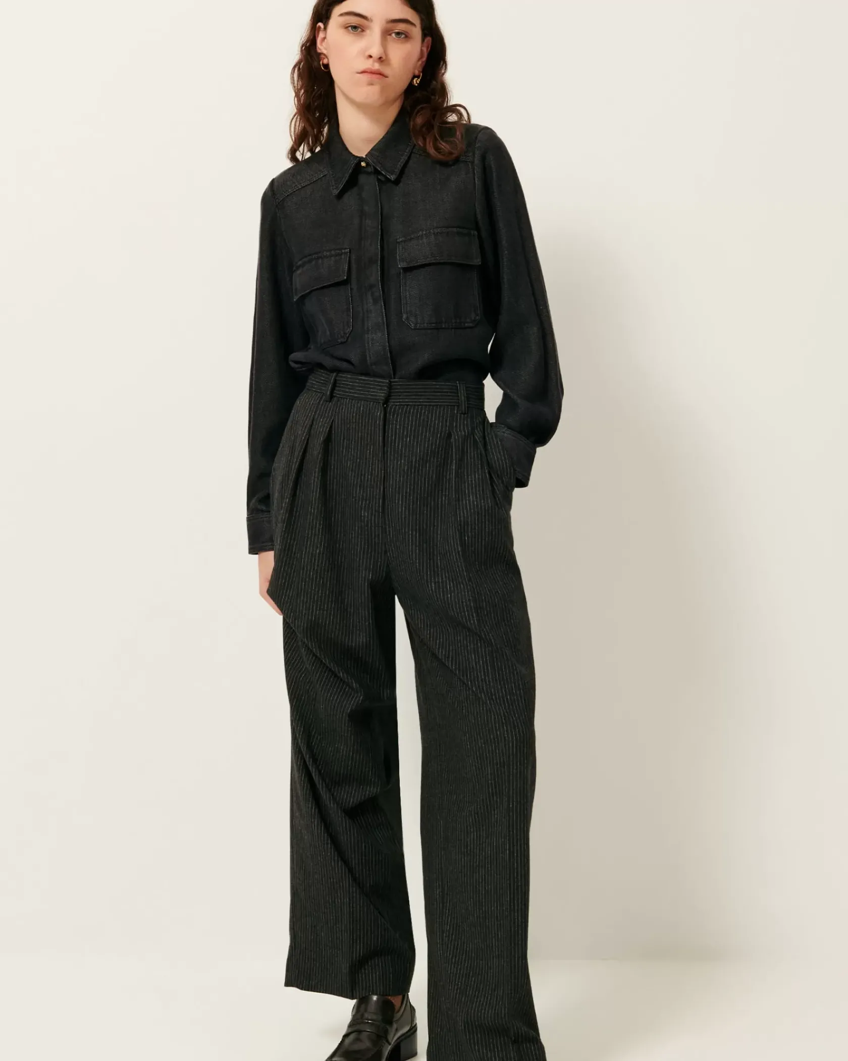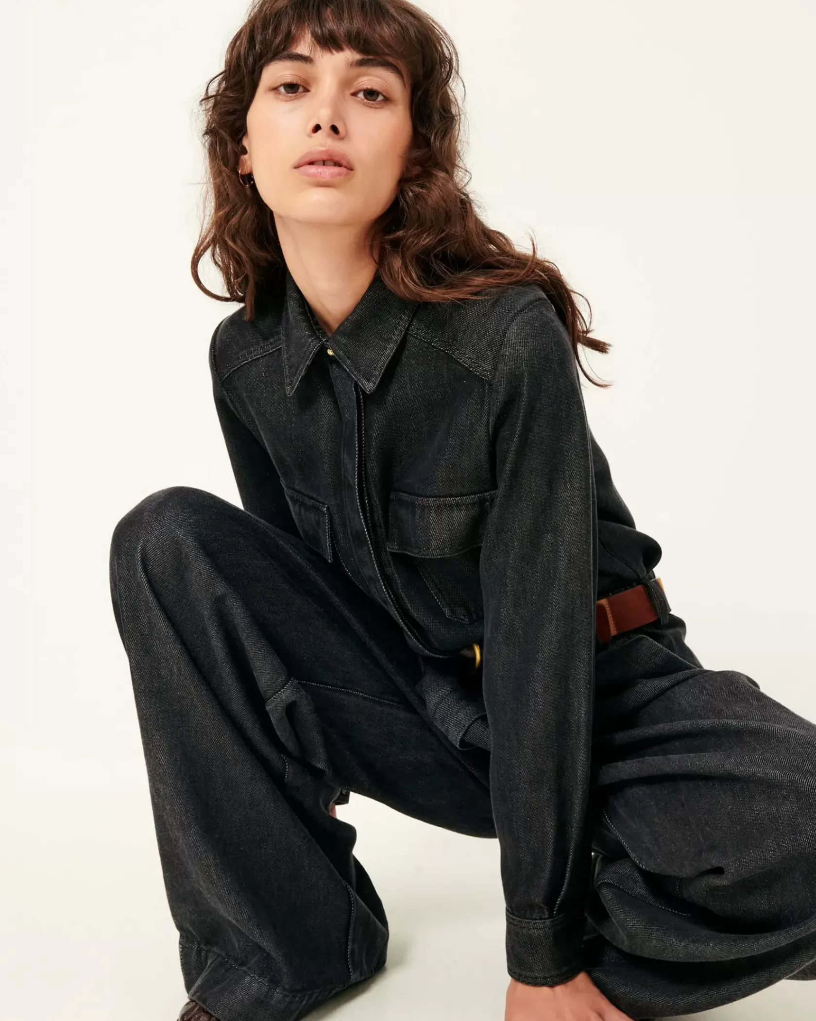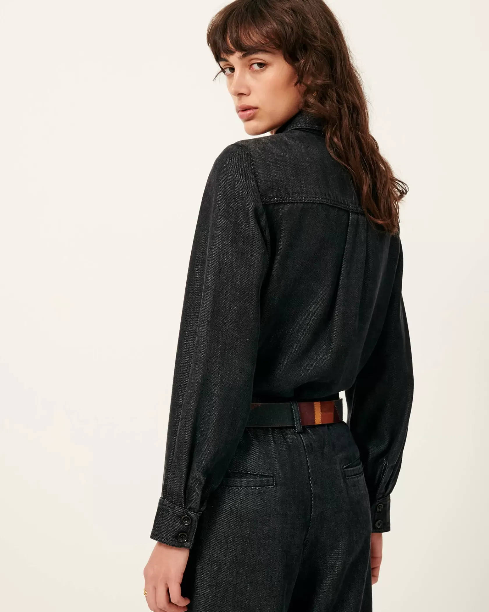 Chemise ajustée à poches plaquées en toile denim de lyocell fluide tissée en Espagne.
