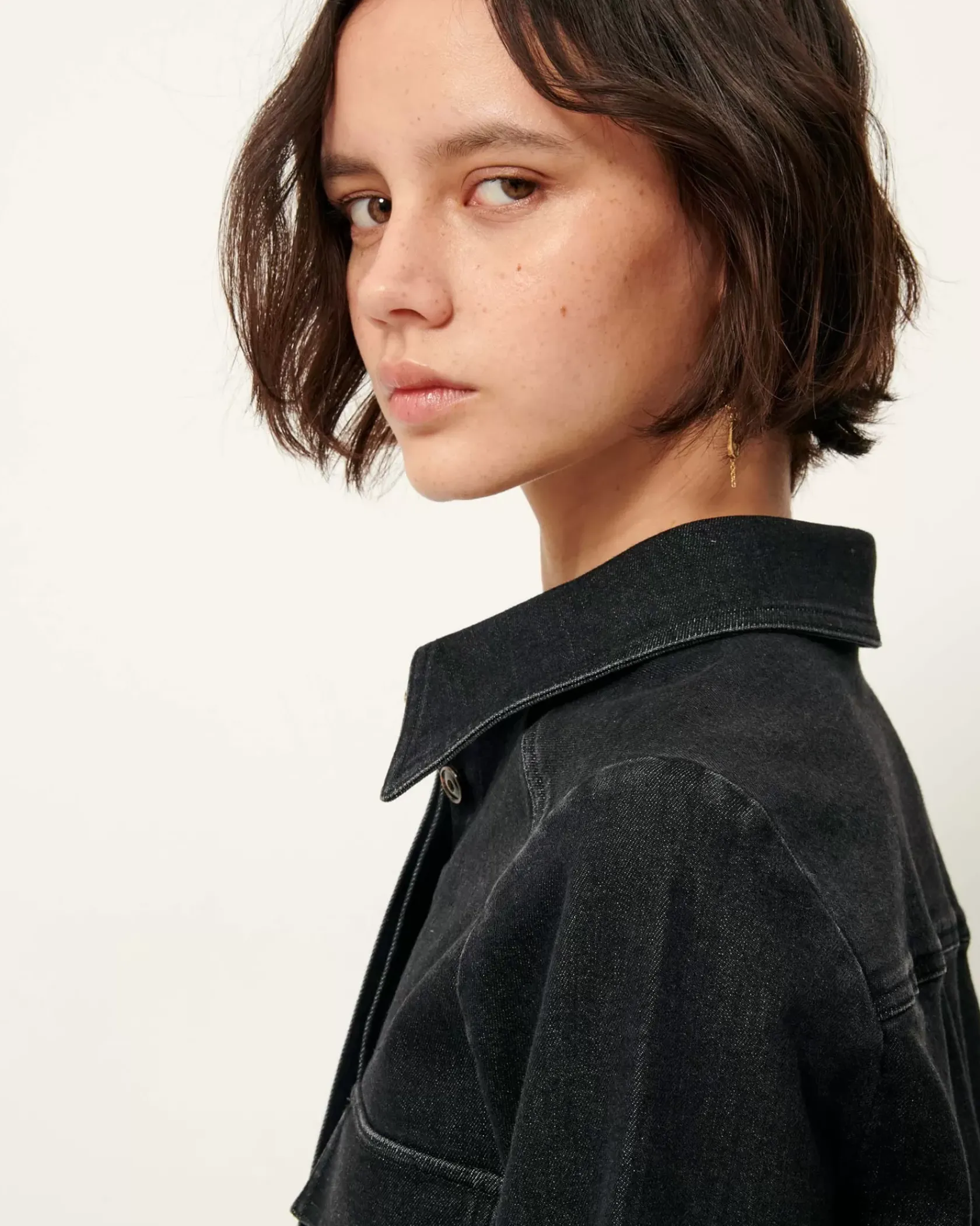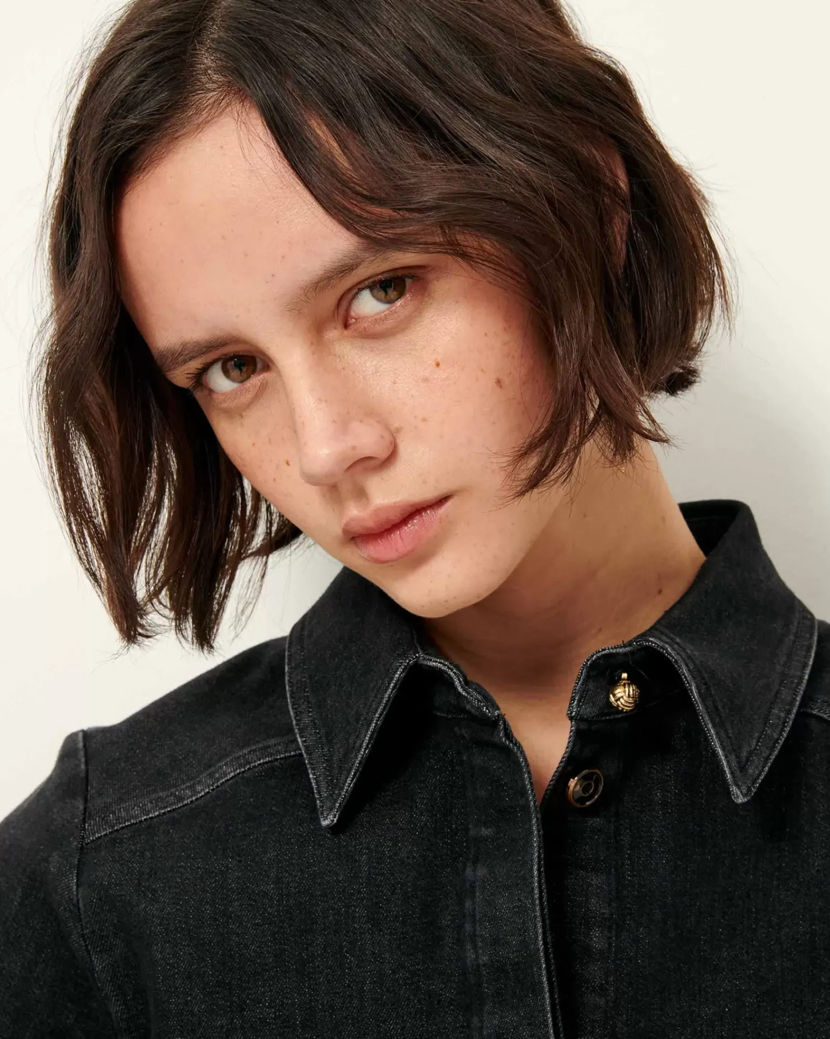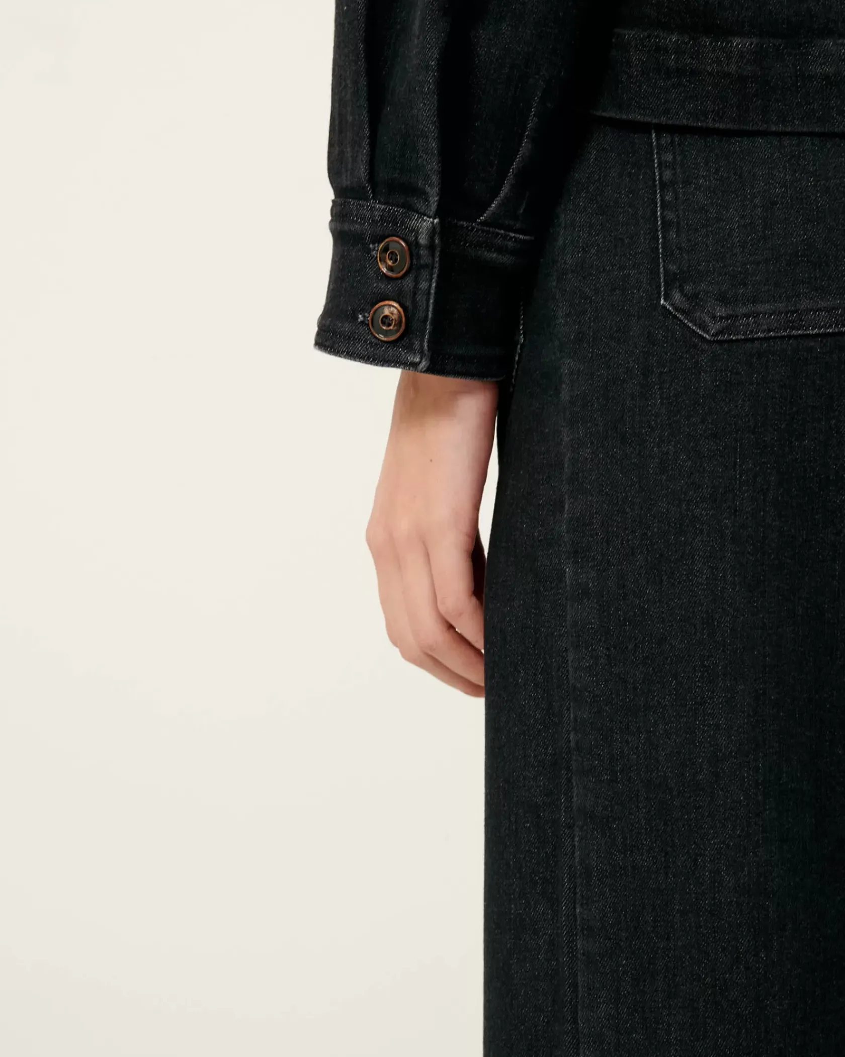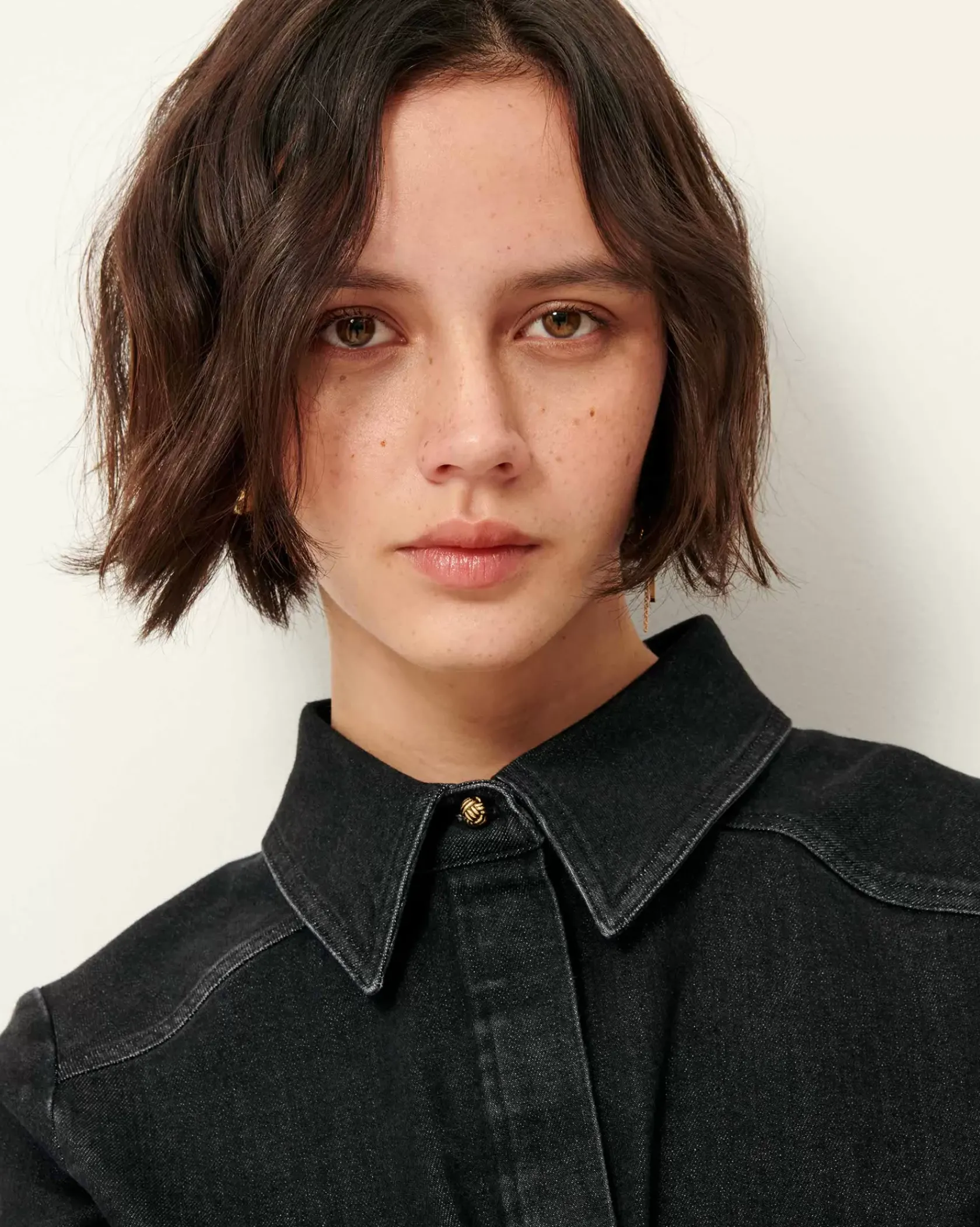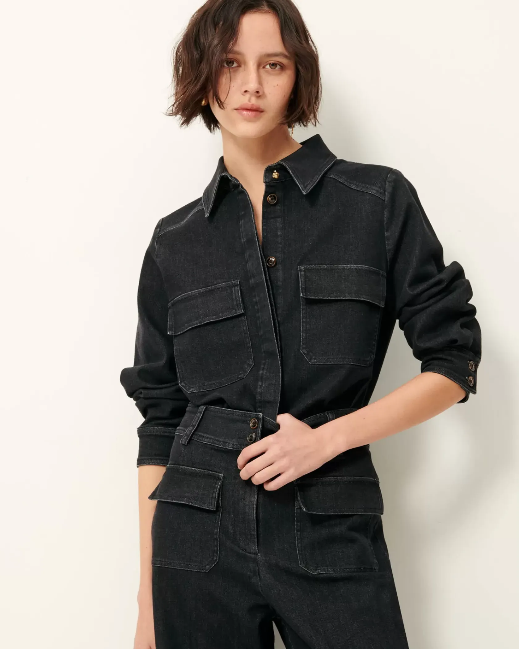 Chemise ajustée à poches plaquées en sergé denim lavé, tissé au Portugal.