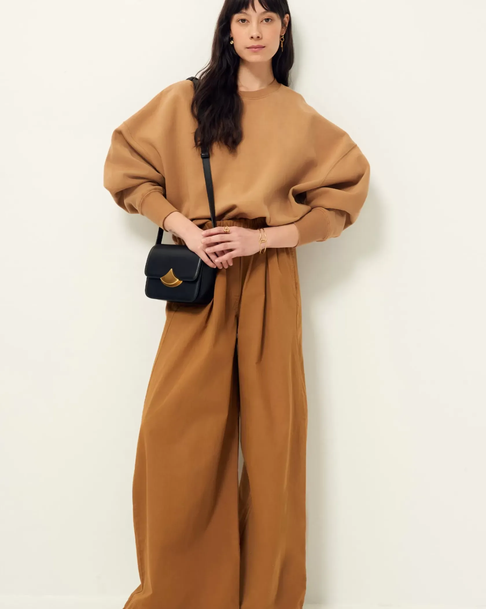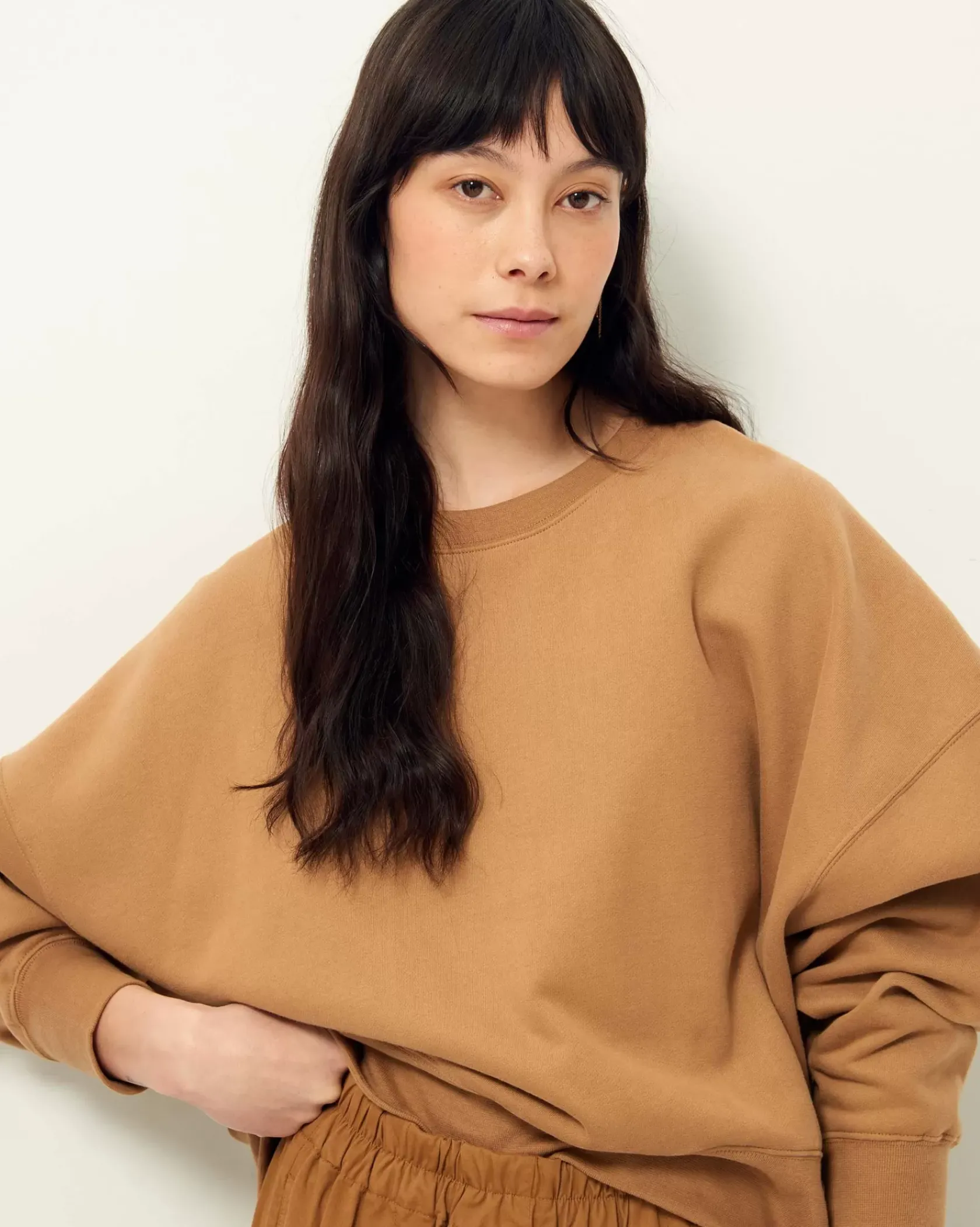 Sweat court oversize en molleton gratté, confectionné au Portugal.