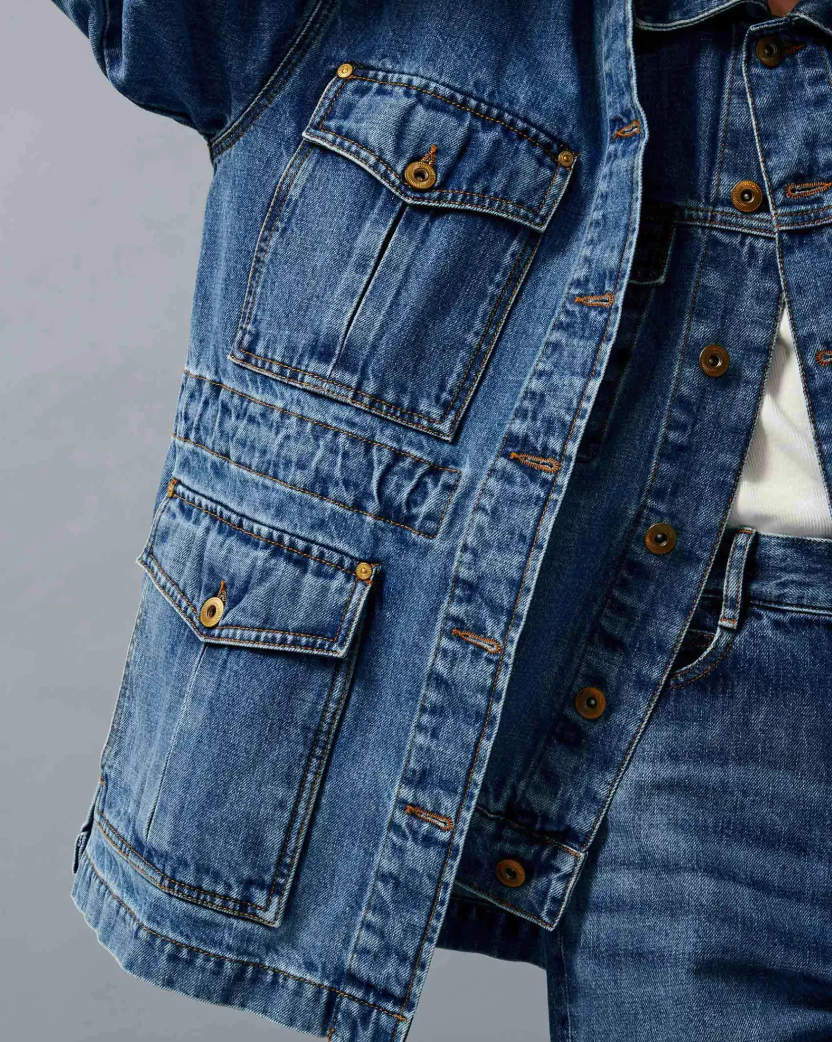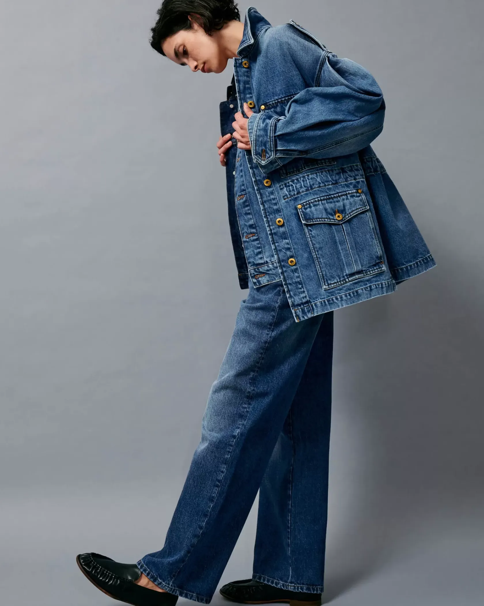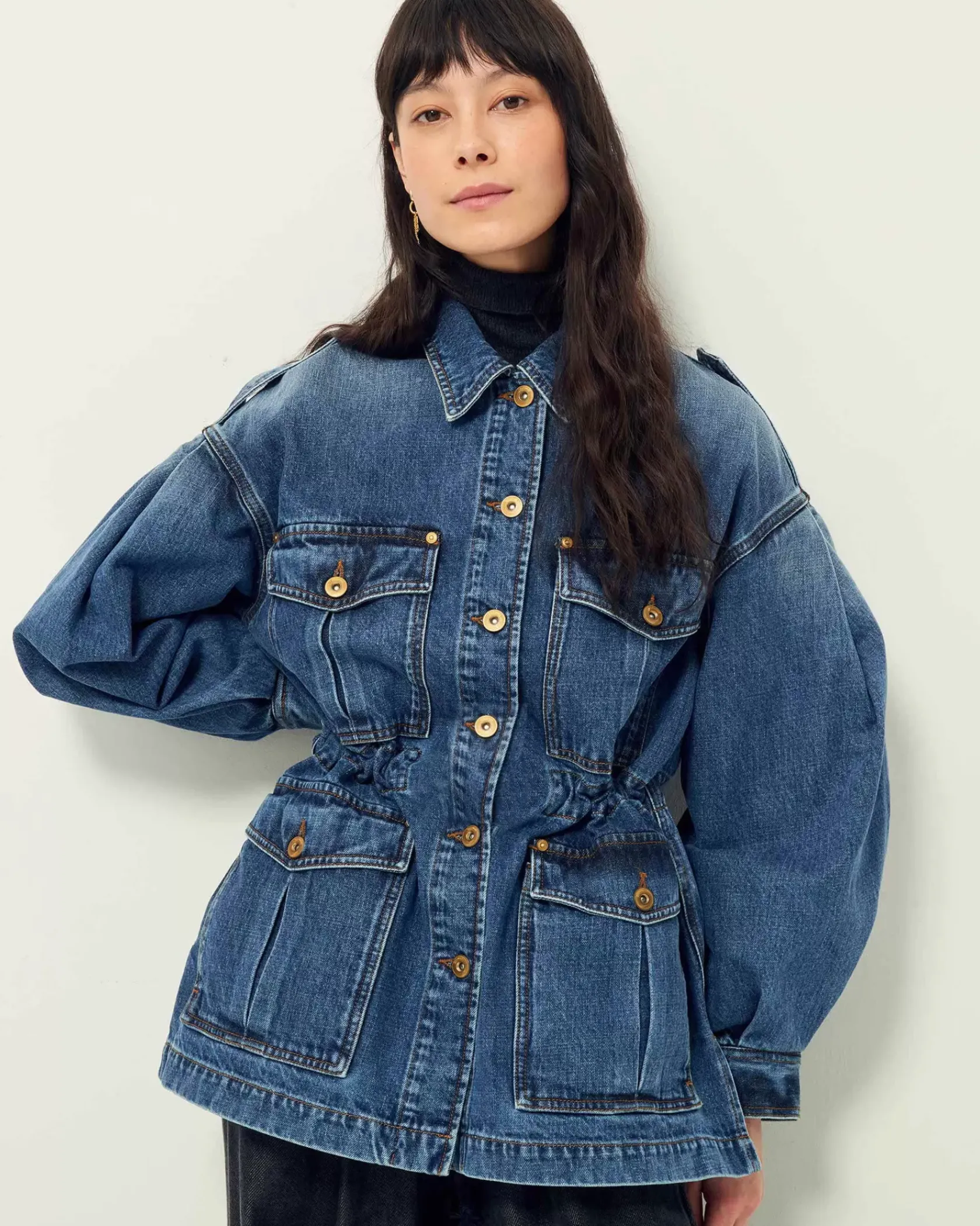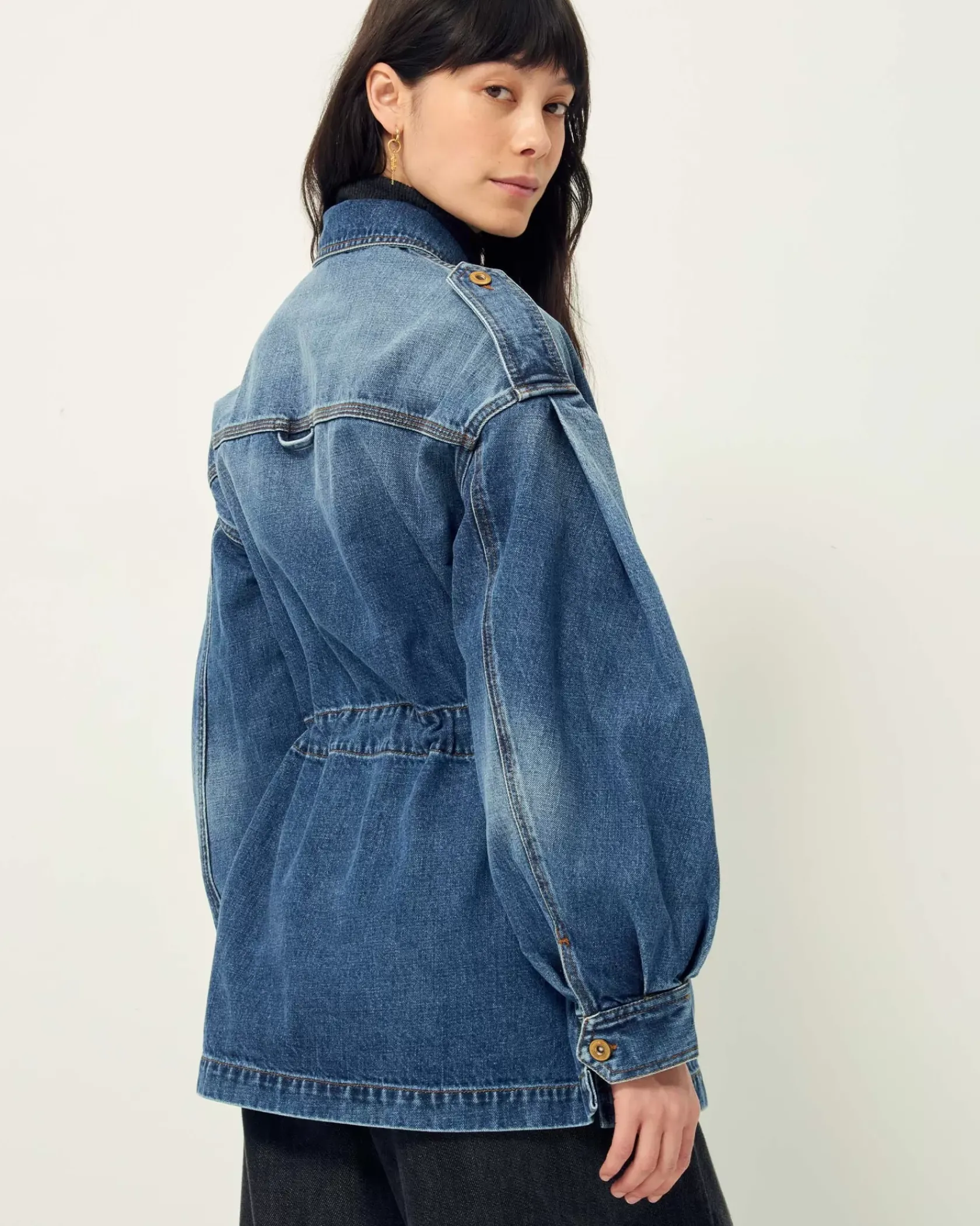 Veste esprit worker à manches ballon en denim stonewashé.