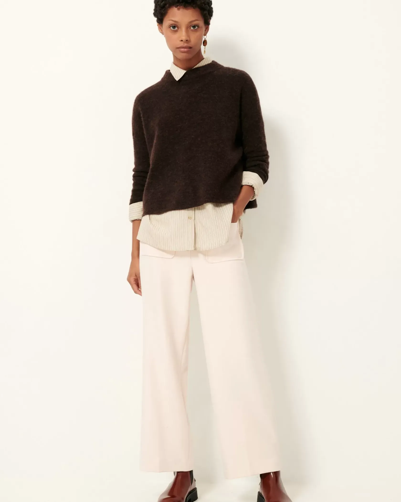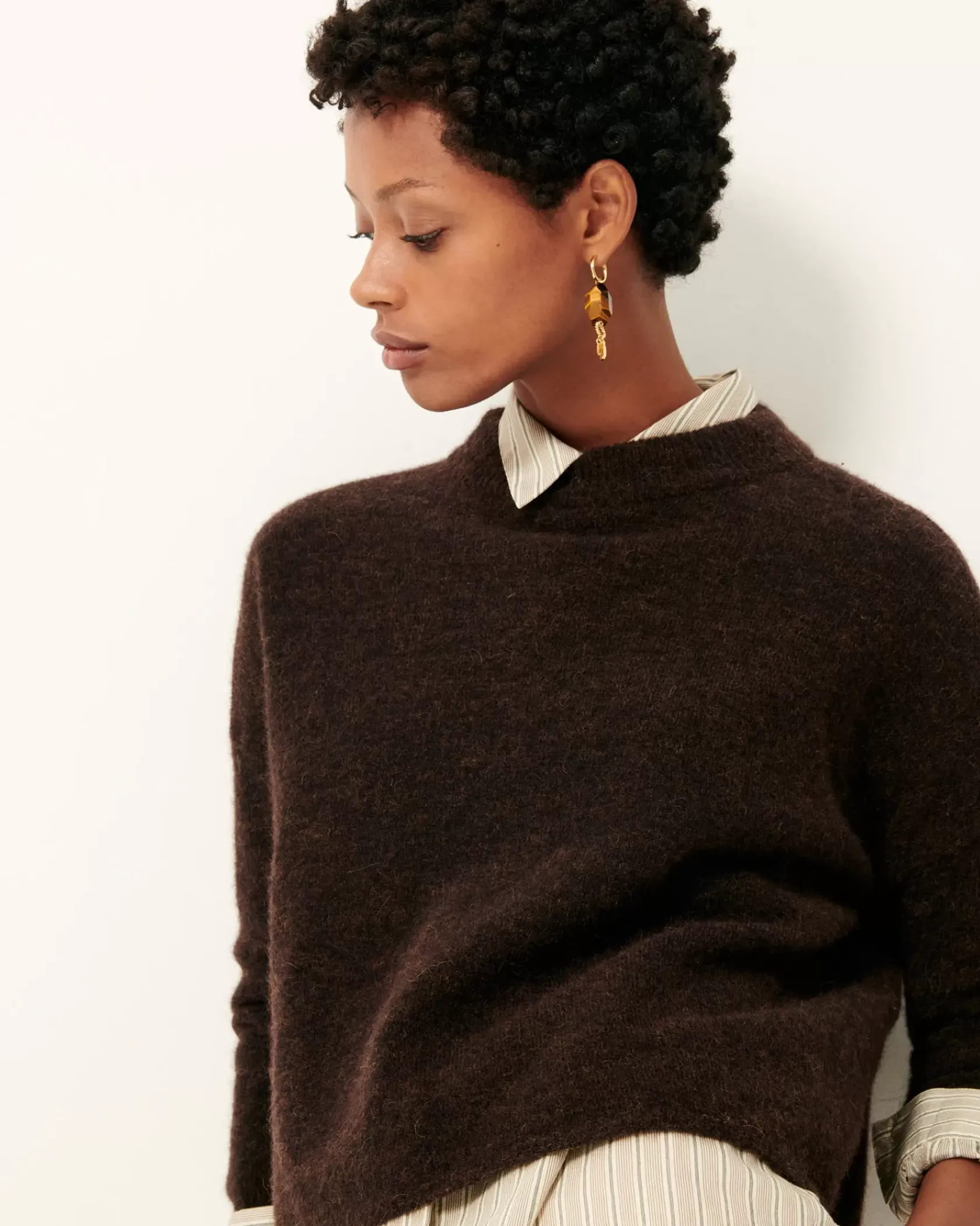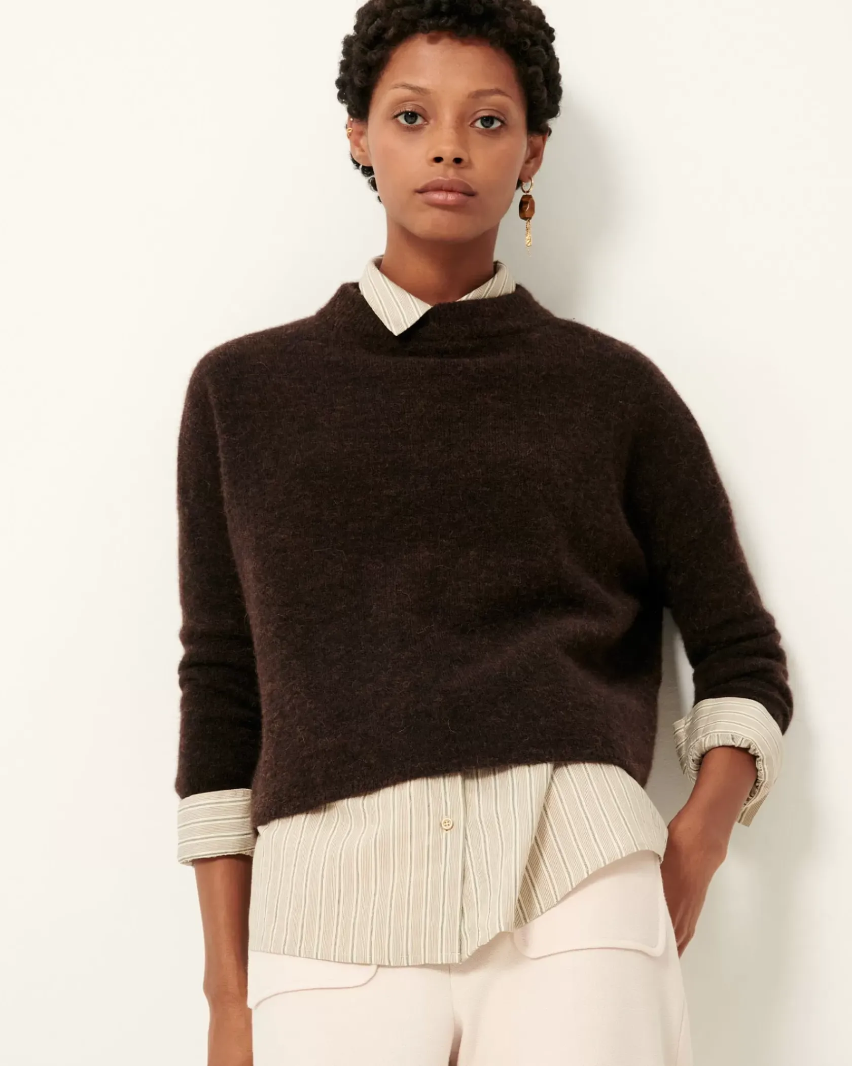 Pull ample en maille duveteuse point jersey.