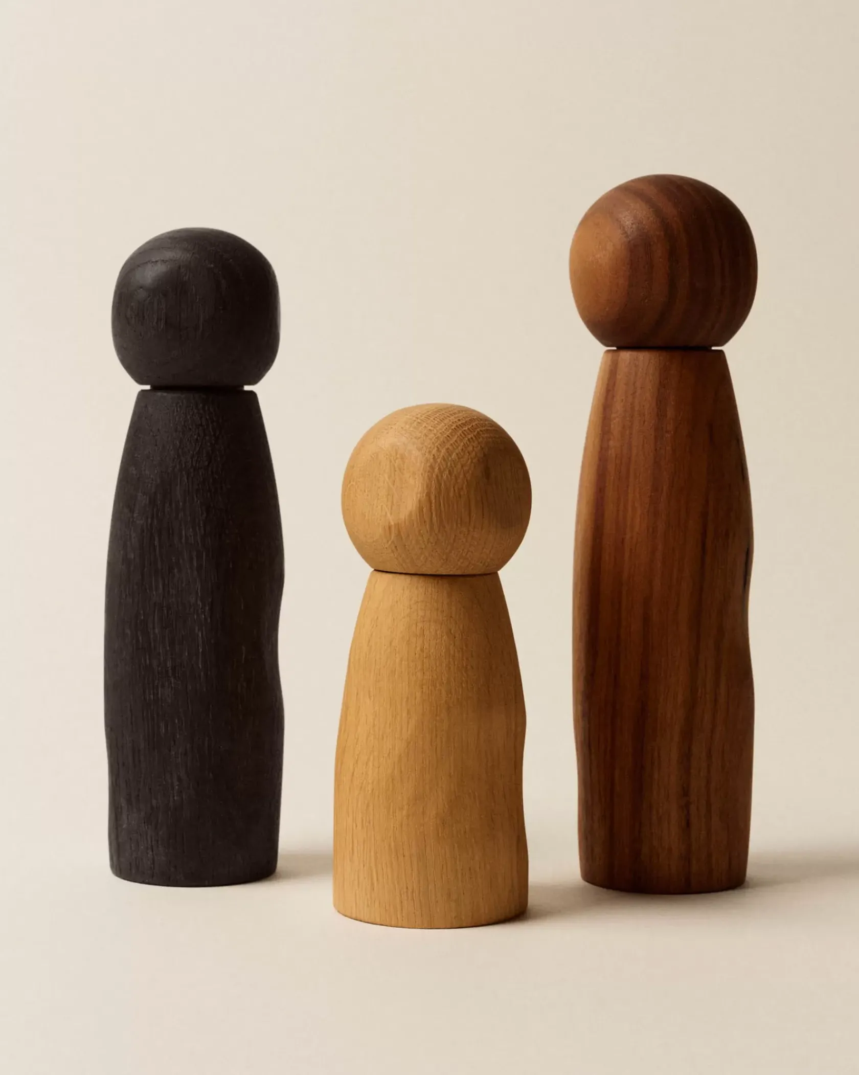 Ce poivrier est façonné entièrement à la main avec des restes de bois par l’atelier 365 à Bruxelles. Réutiliser le bois considéré comme inutile et traiter les chutes comme quelque chose de précieux pour construire un objet imparfait unique, donc authentique.