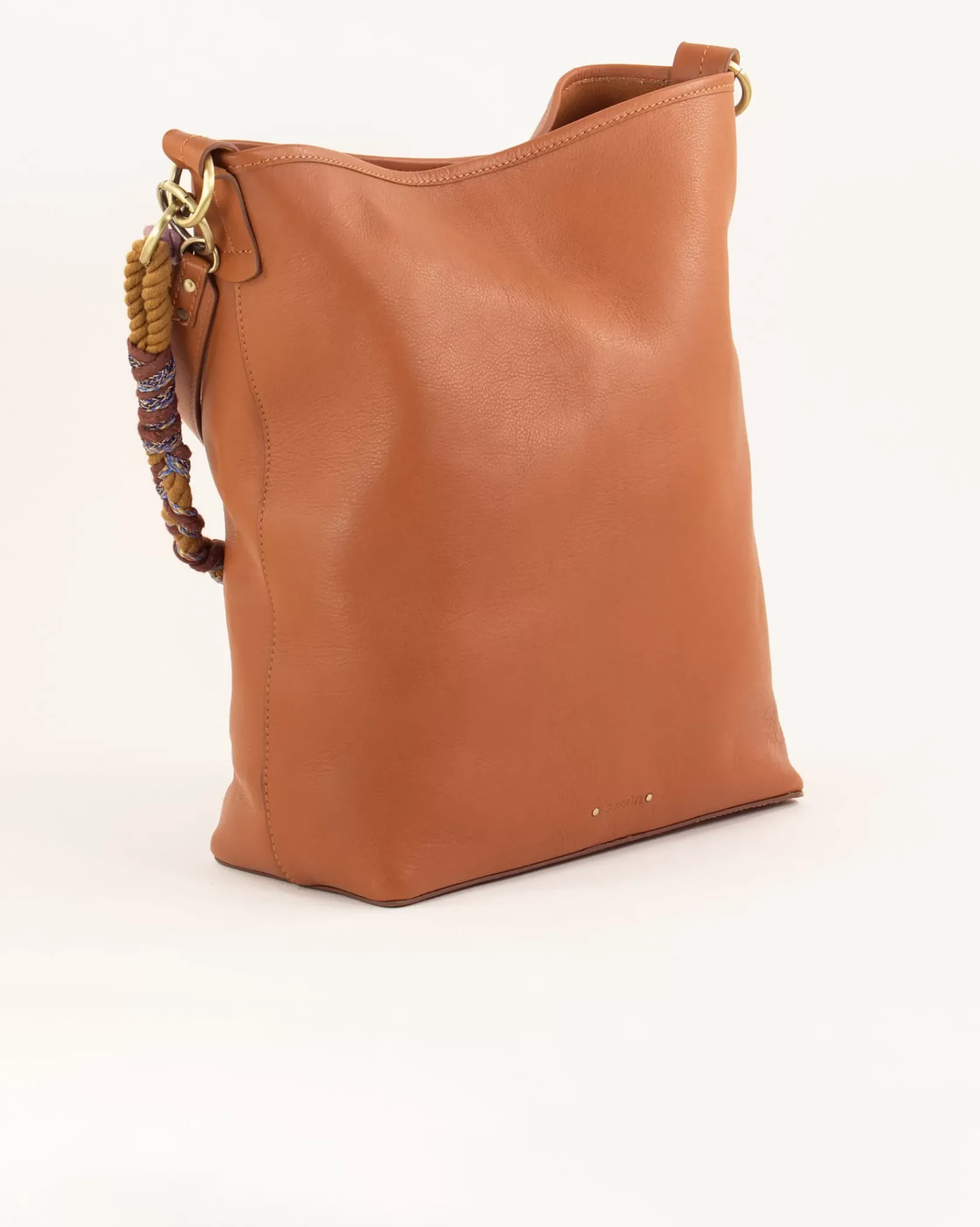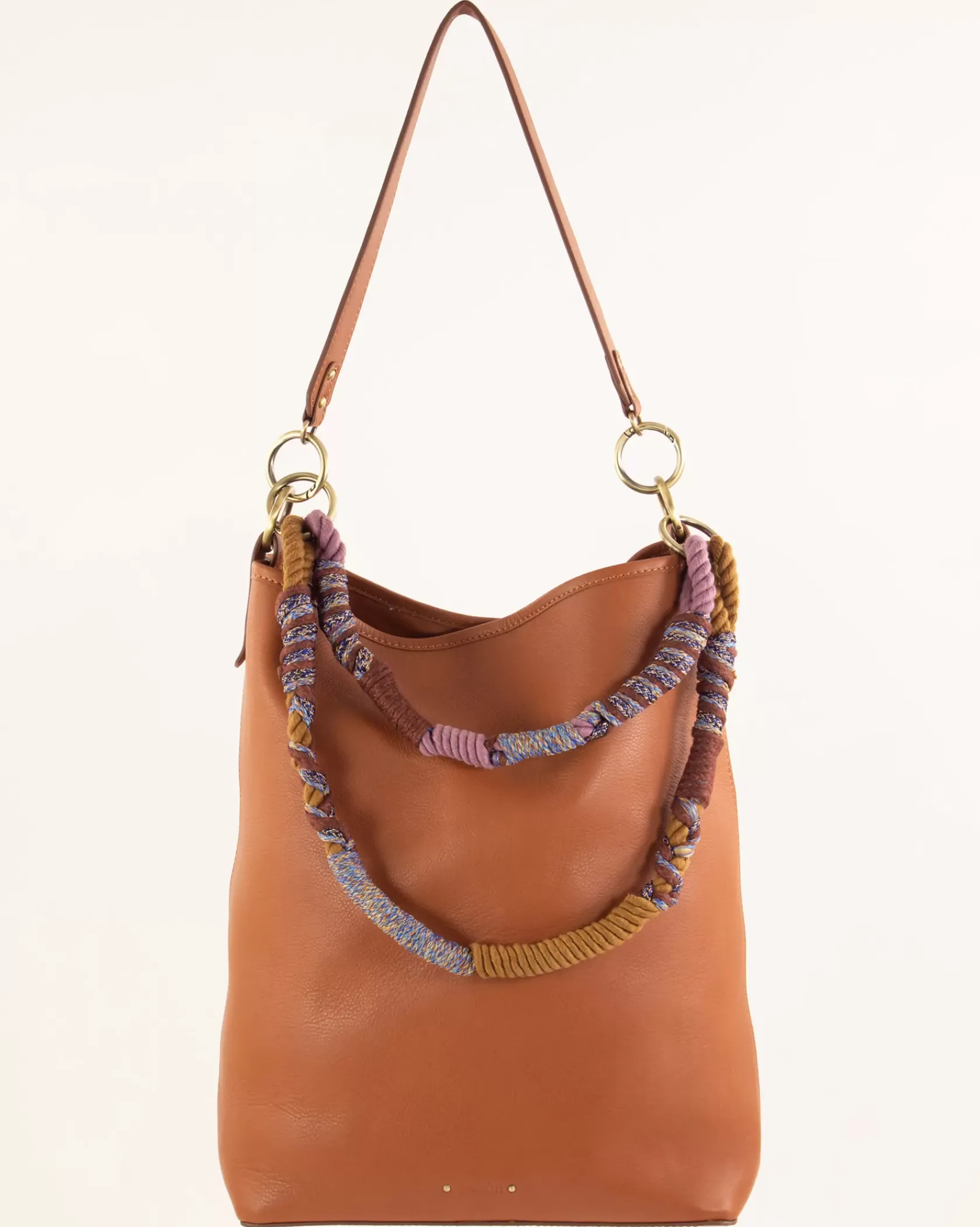 Anse nouée en corde de coton tressée de liens fantaisie et anse cuir, amovibles.