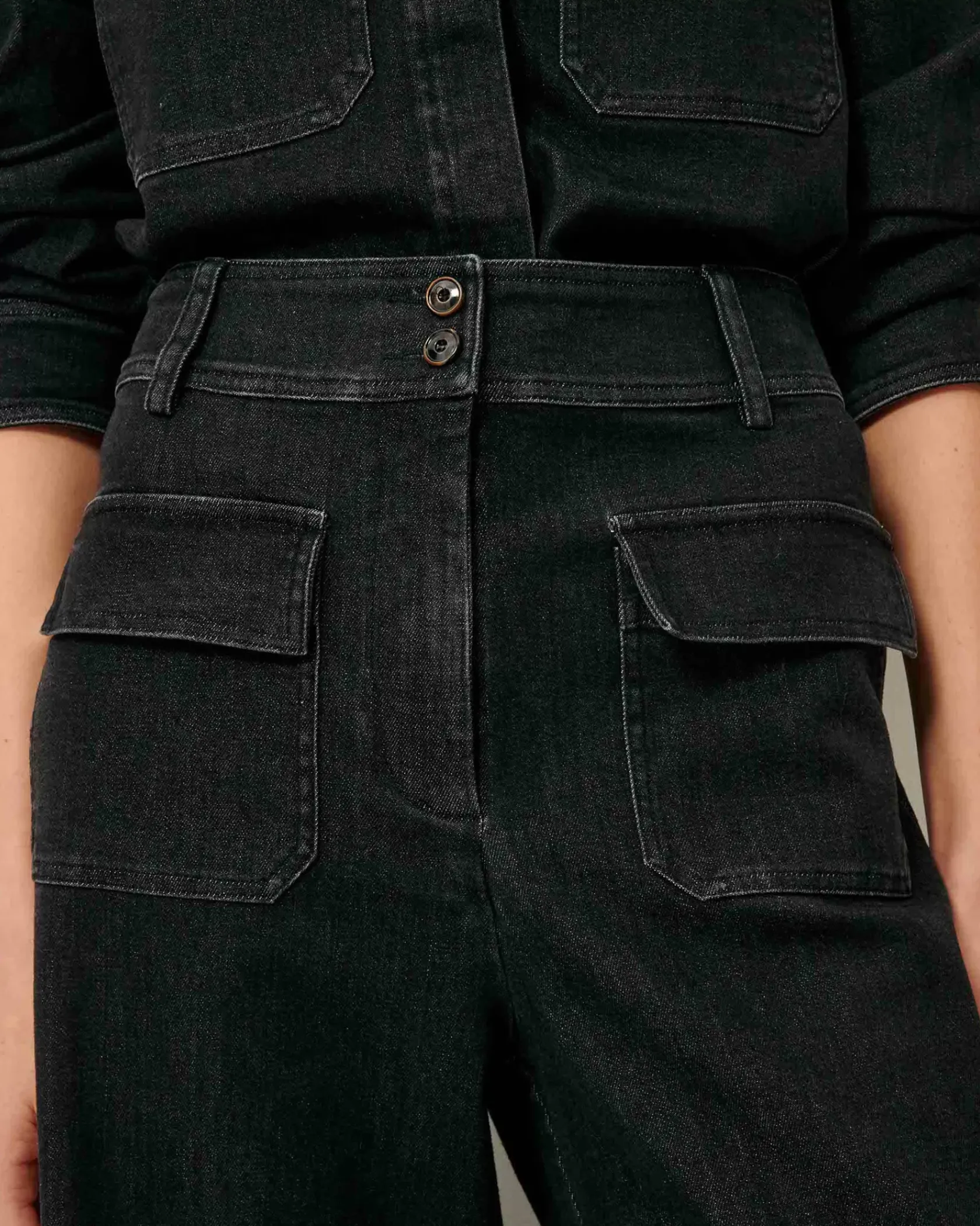 Pantalon évasé en sergé denim lavé, tissé au Portugal.