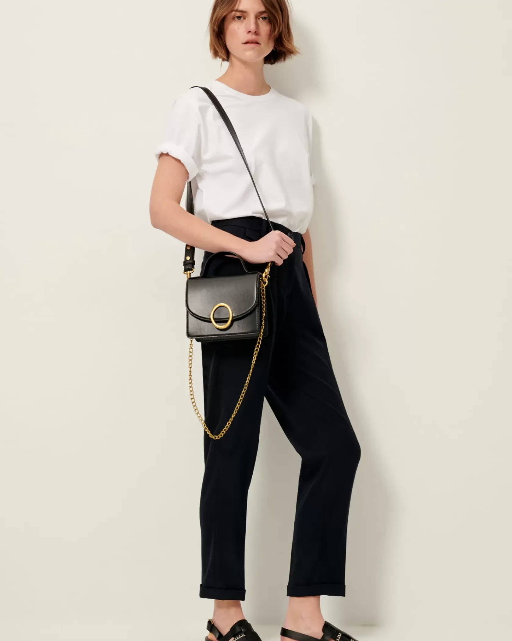 Pantalon tailoring à plis en toile à armure quadrillée.