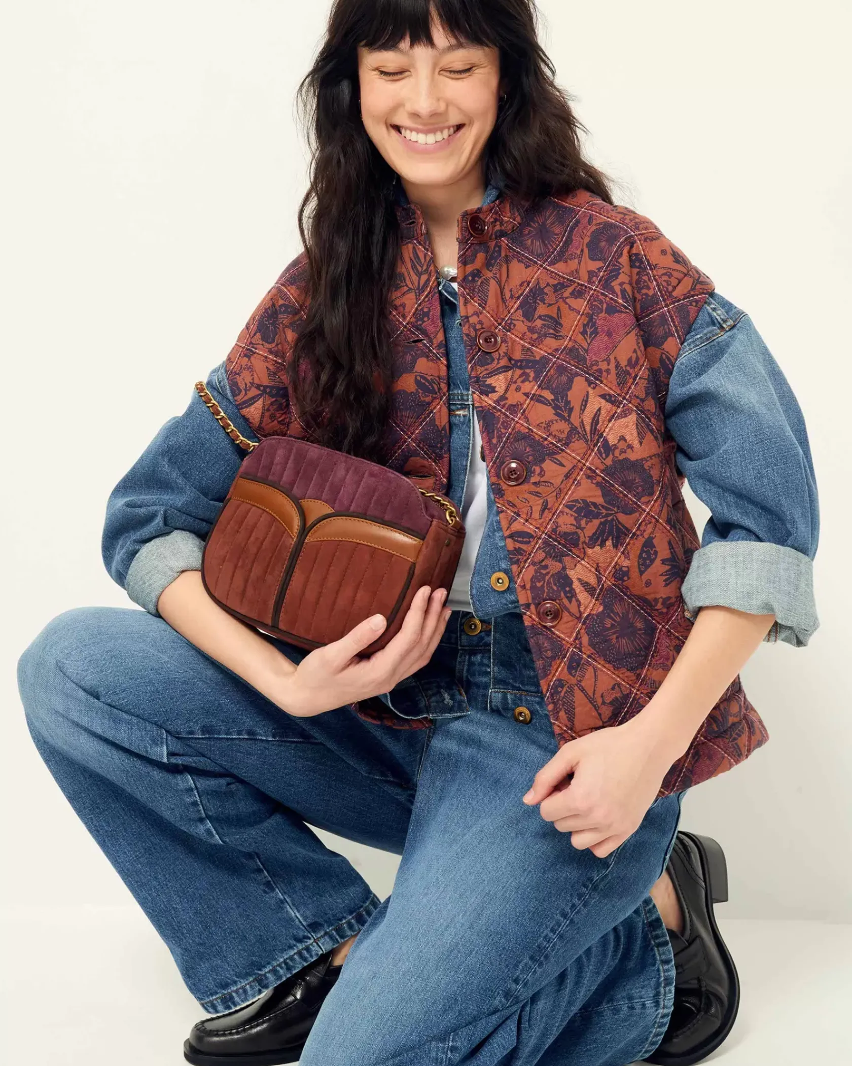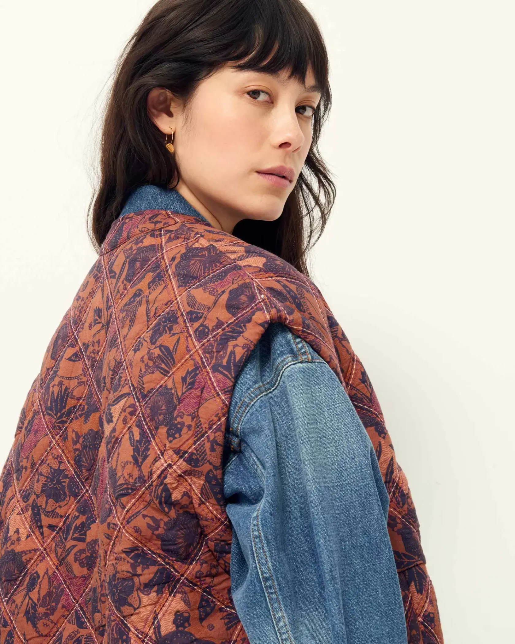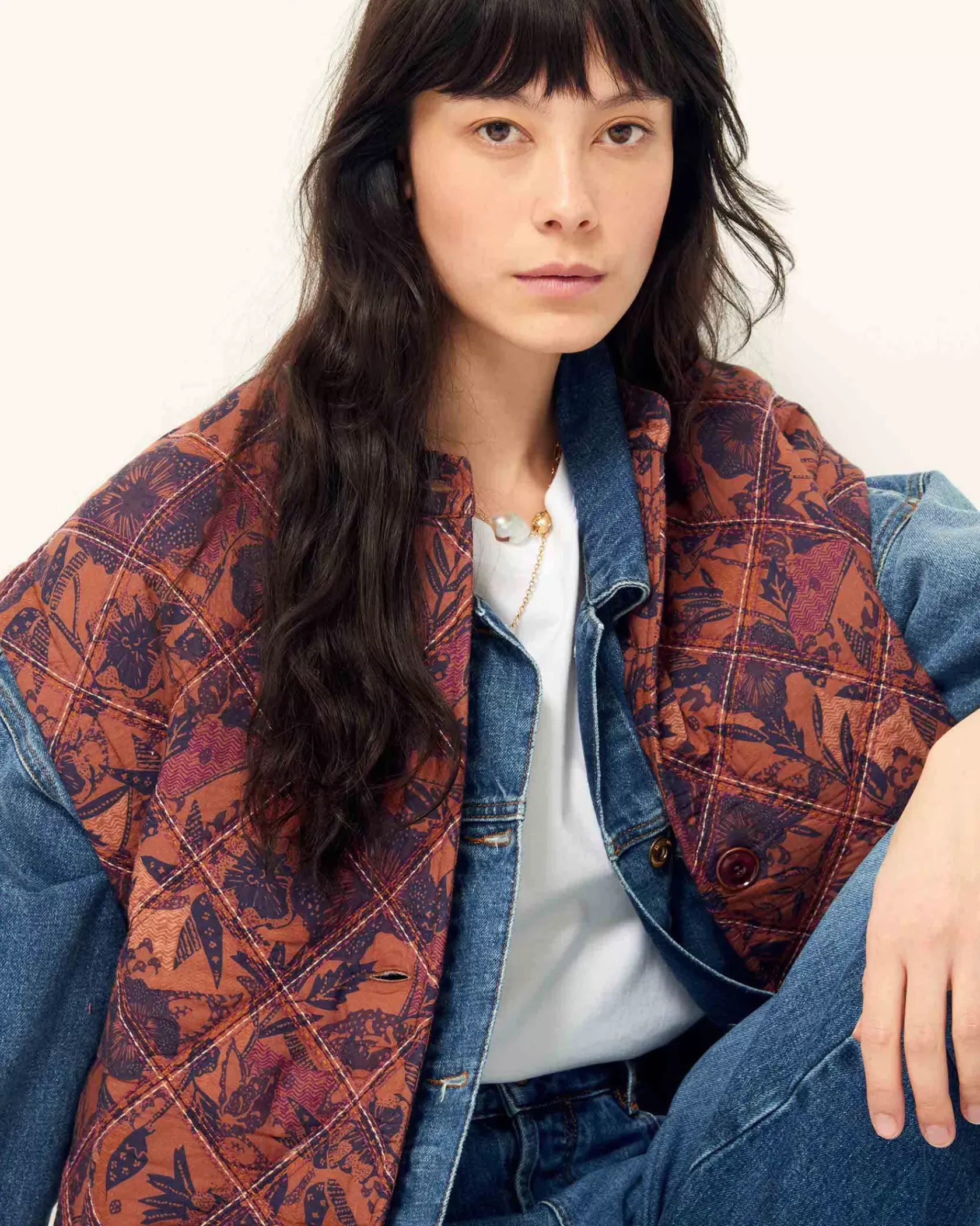 Veste sans manches boutonnée en batiste de coton légère matelassée, imprimée esprit « block print », motif exclusif Sessùn.