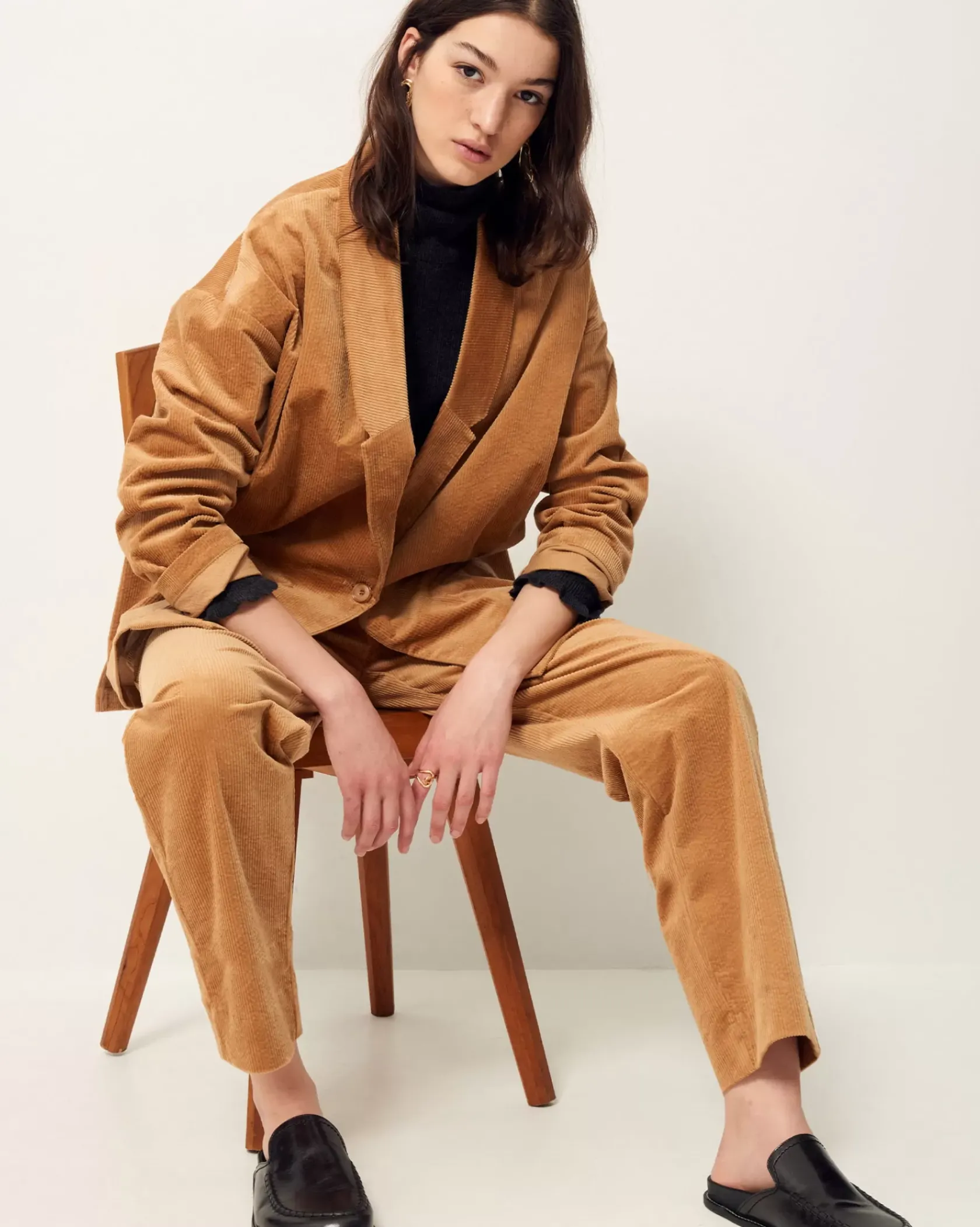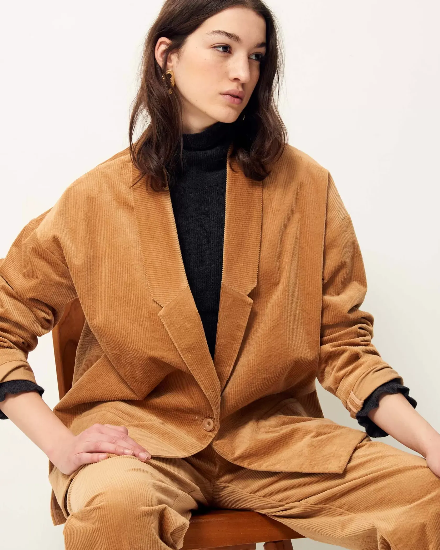 Veste de costume non doublée en velours côtelé 300 raies.