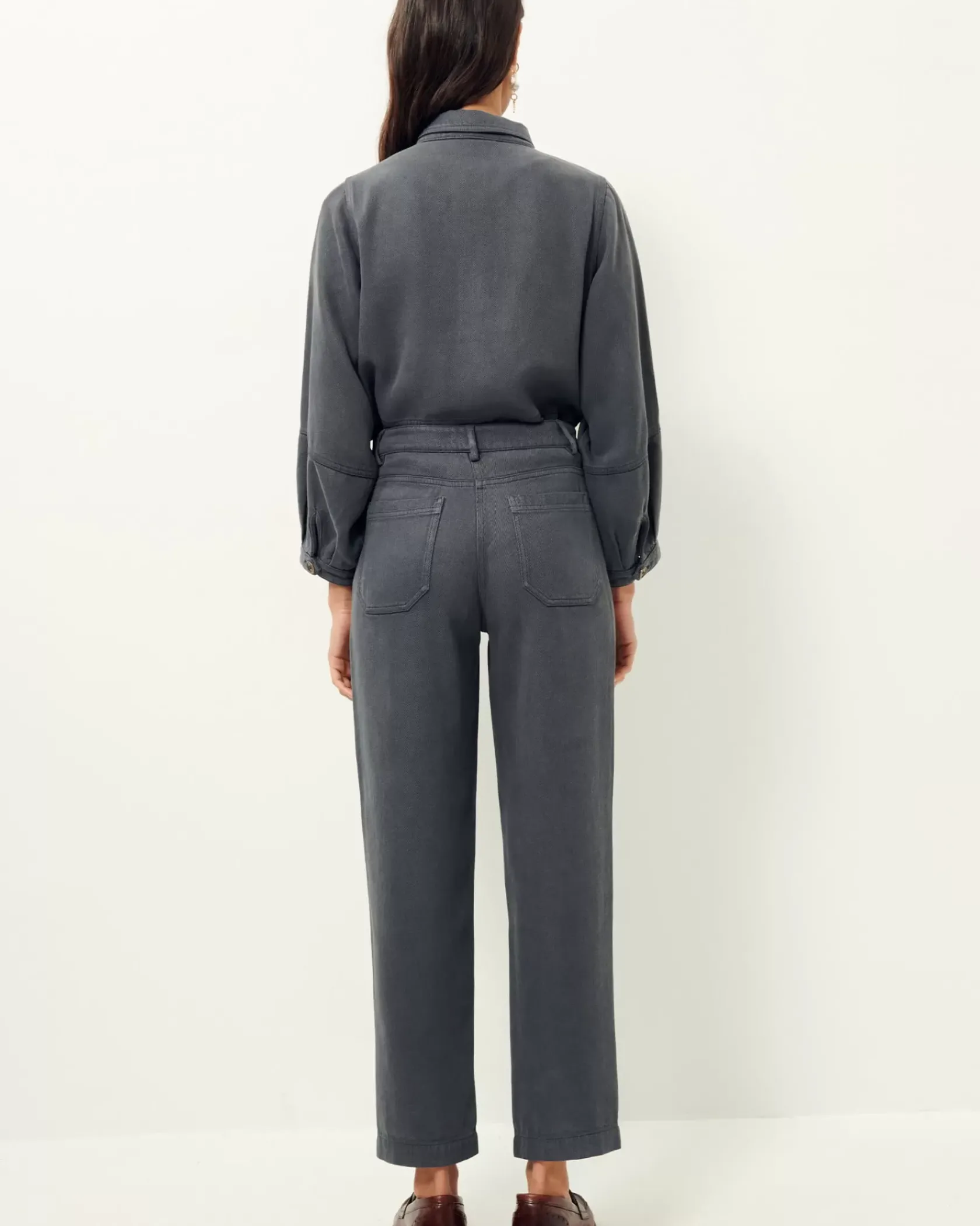 Pantalon taille haute resserré en bas de jambe en gabardine de lyocell fluide teinte en plongée tissée en Espagne.