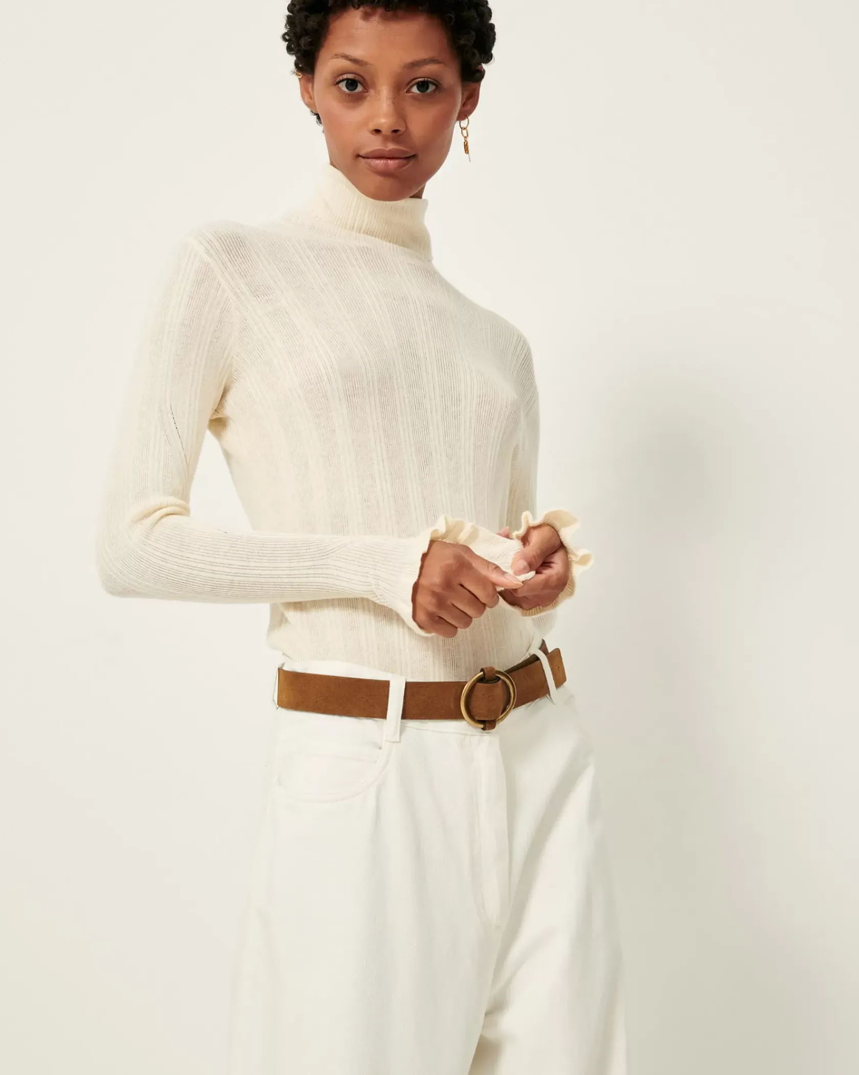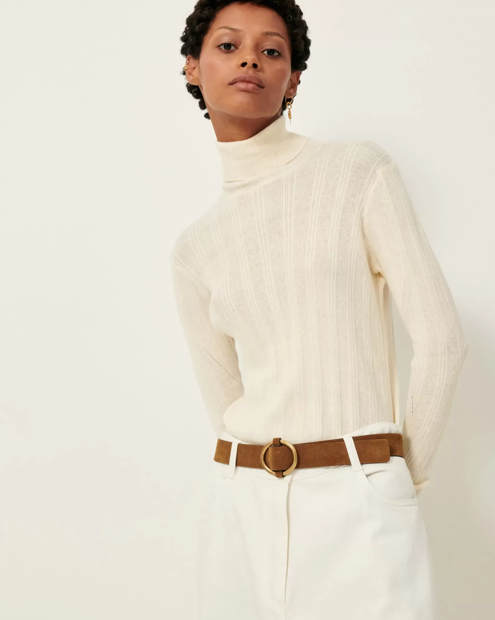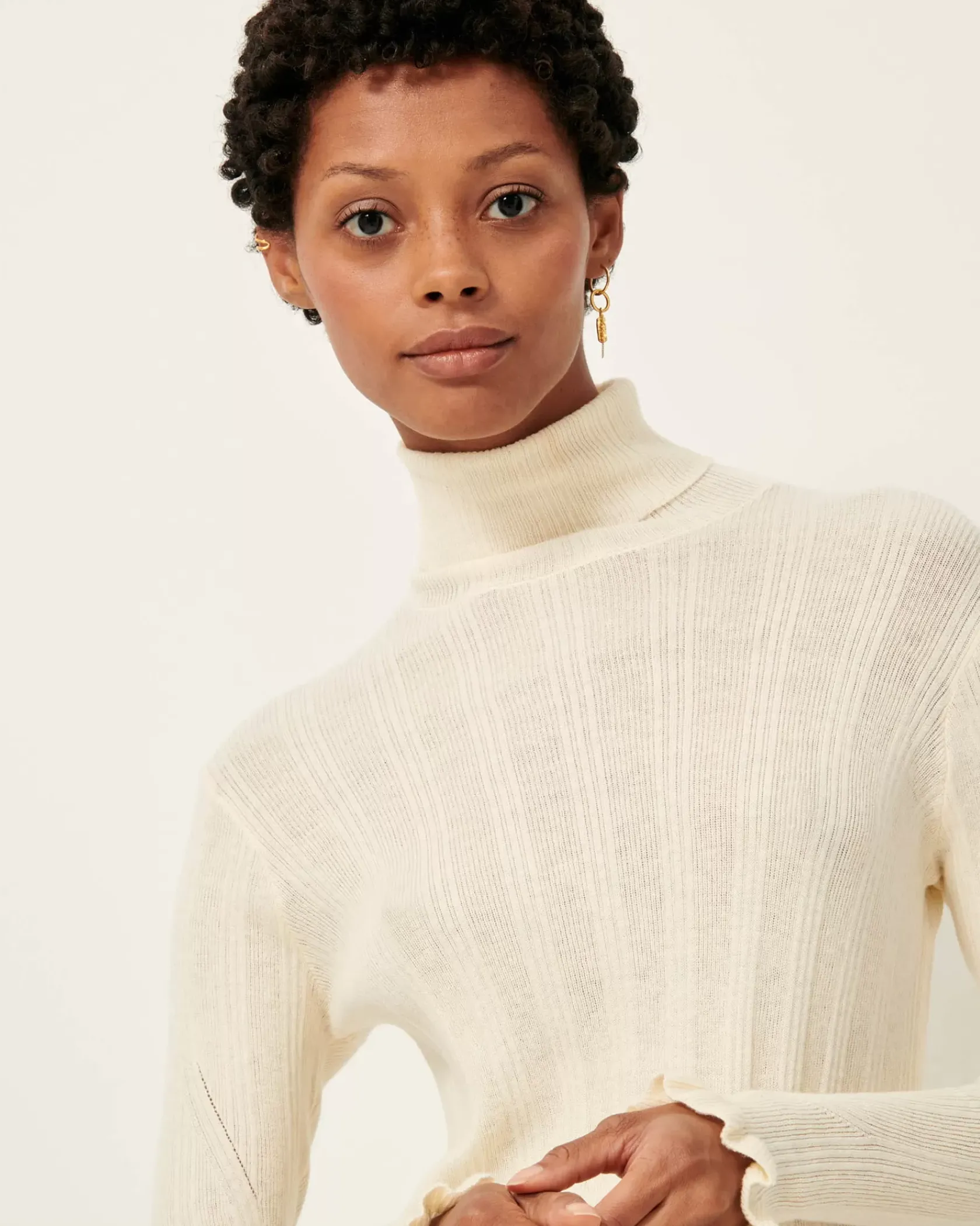 Pull col roulé ajusté maille fine jauge et jeu de côtes graphique aux côtés et aux manches.