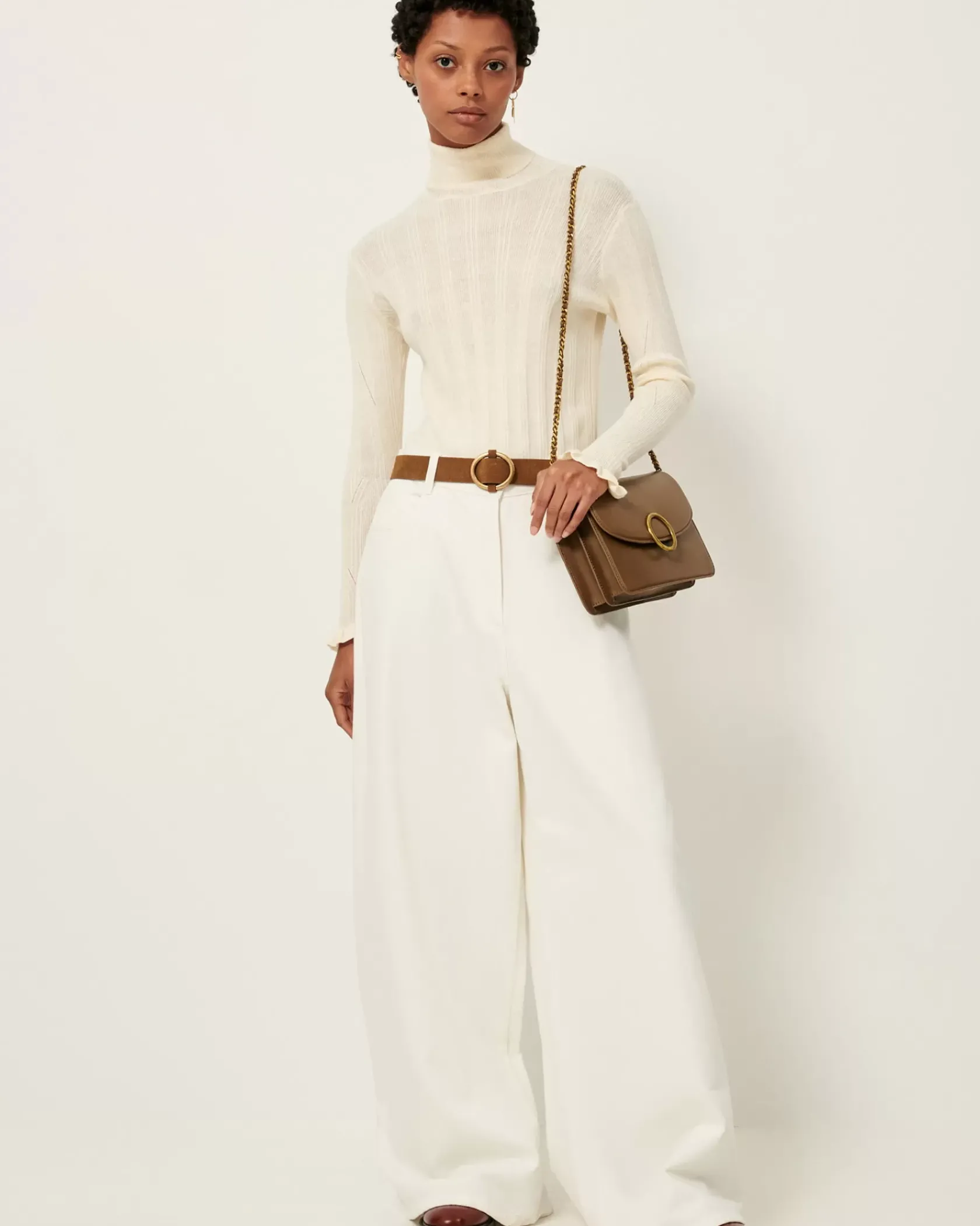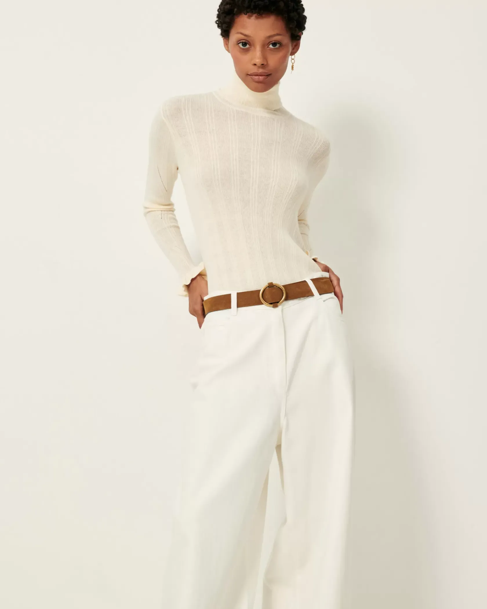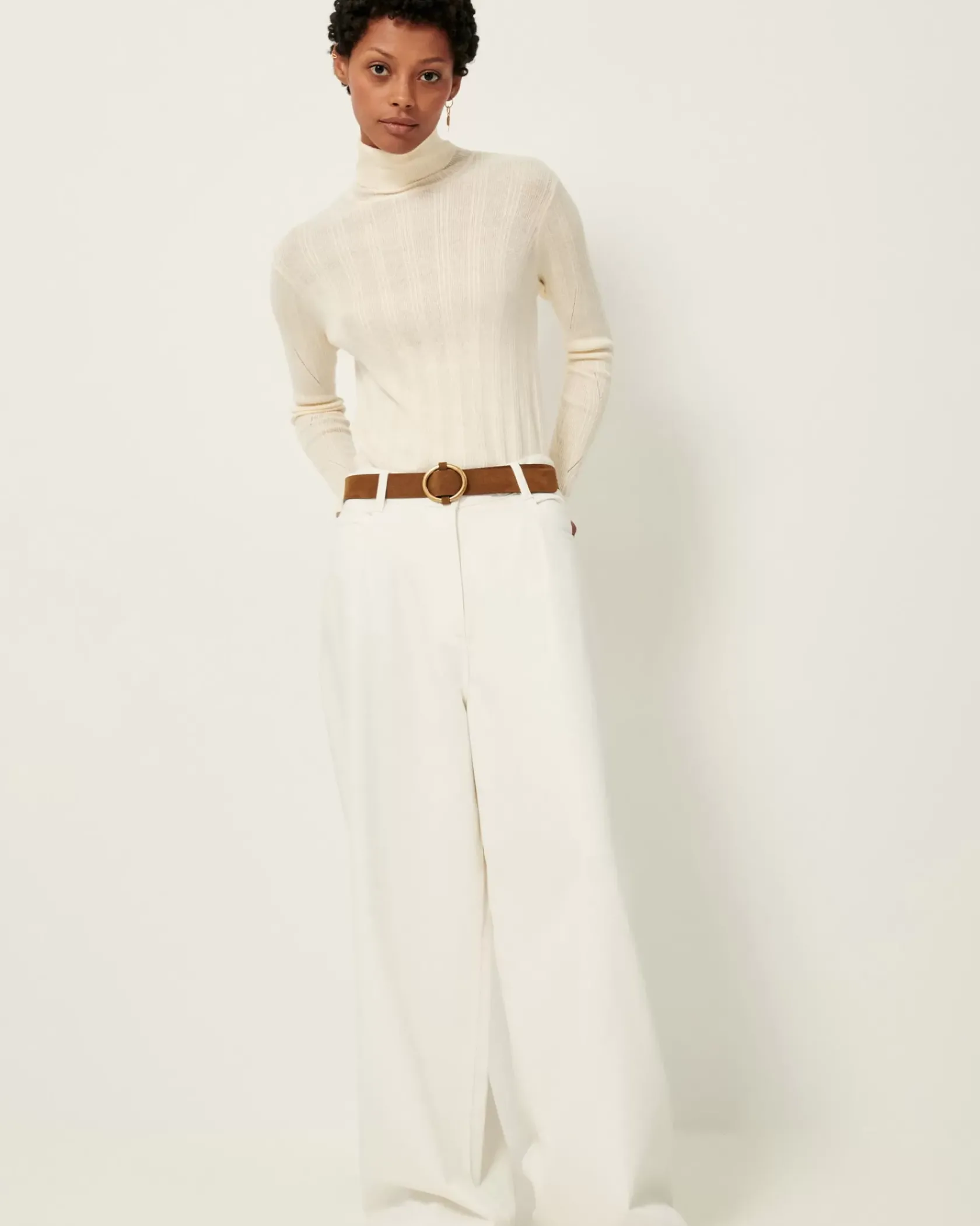Pull col roulé ajusté maille fine jauge et jeu de côtes graphique aux côtés et aux manches.