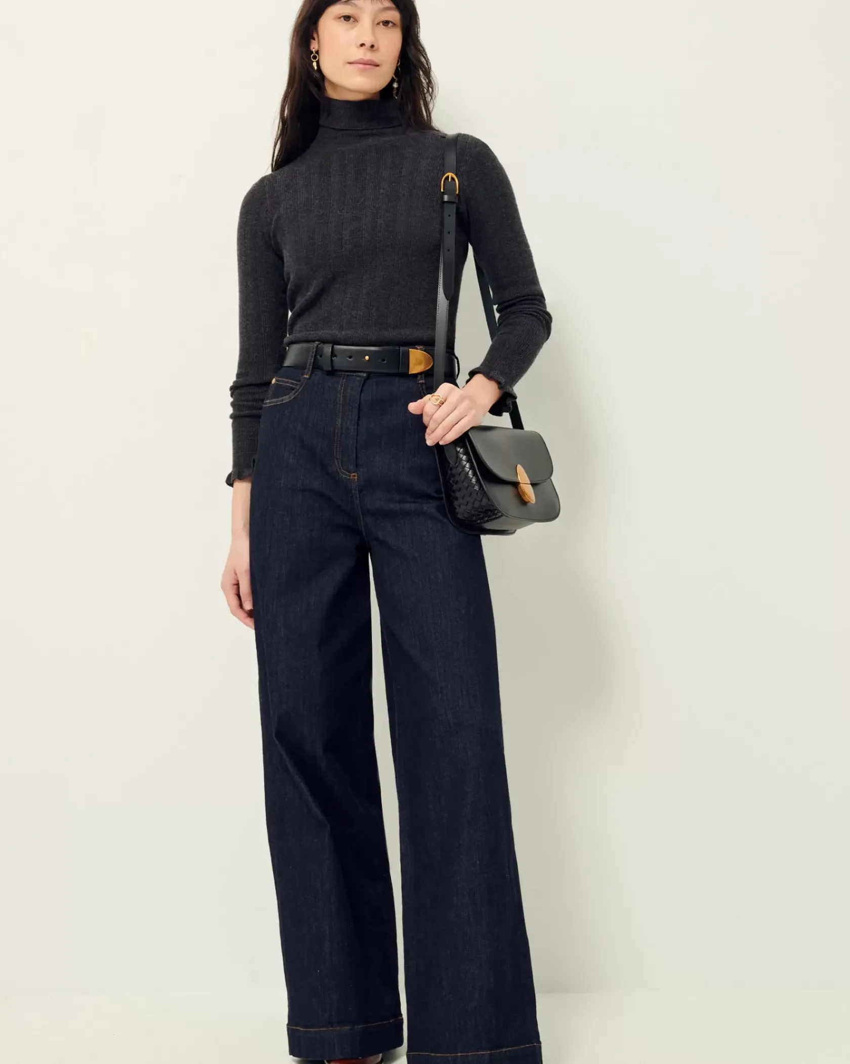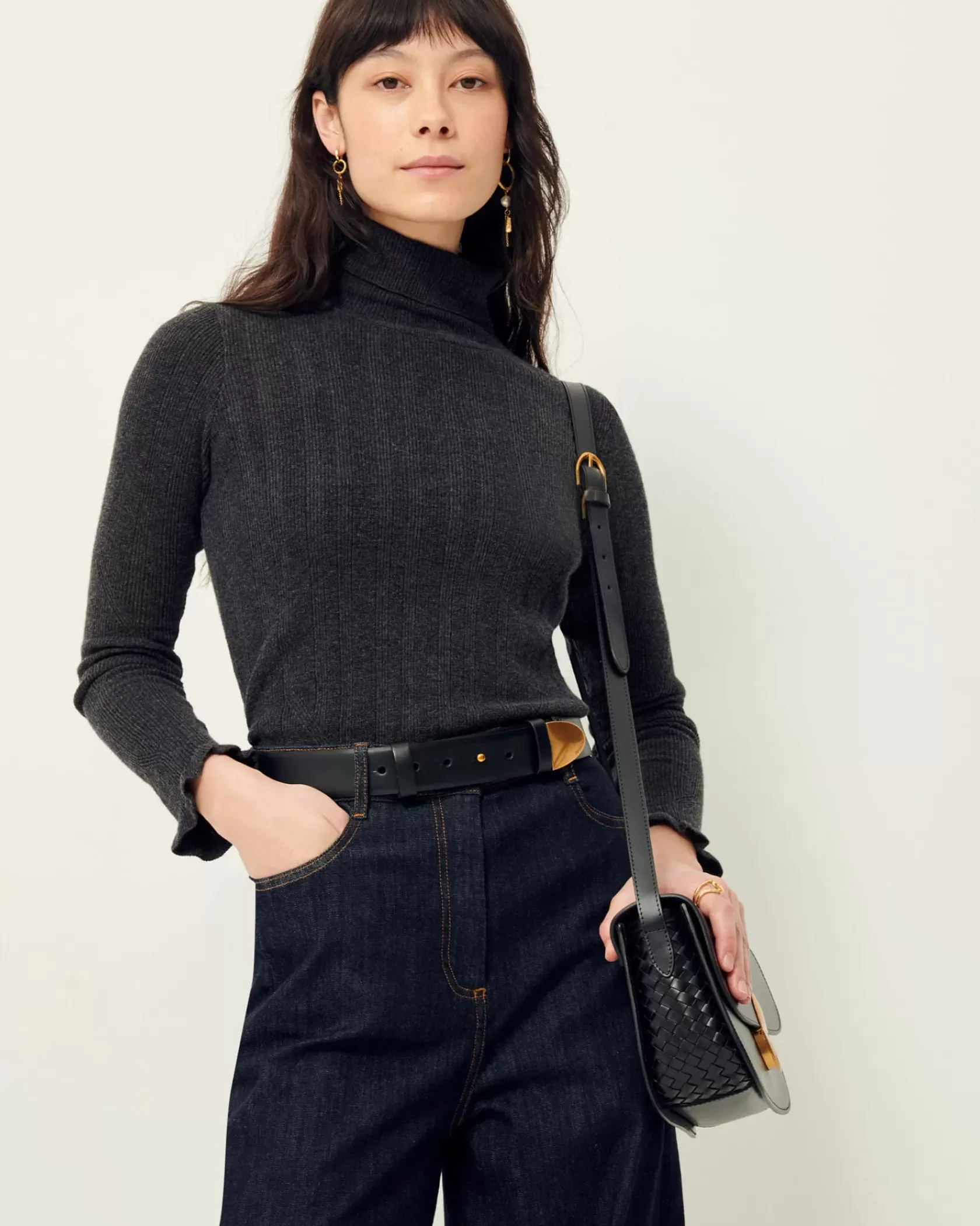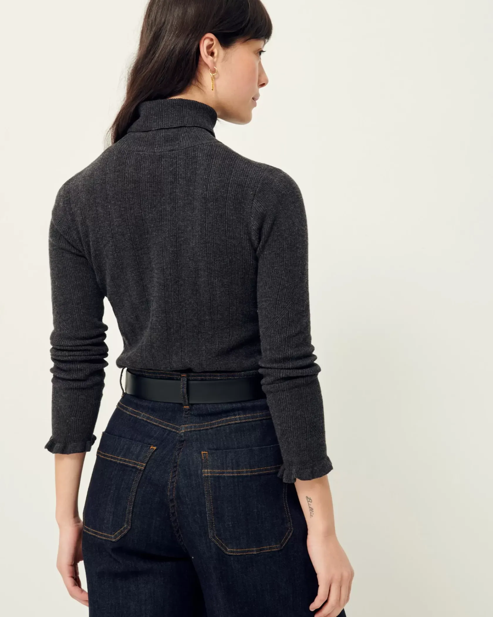 Pull col roulé ajusté maille fine jauge et jeu de côtes graphique aux côtés et aux manches.