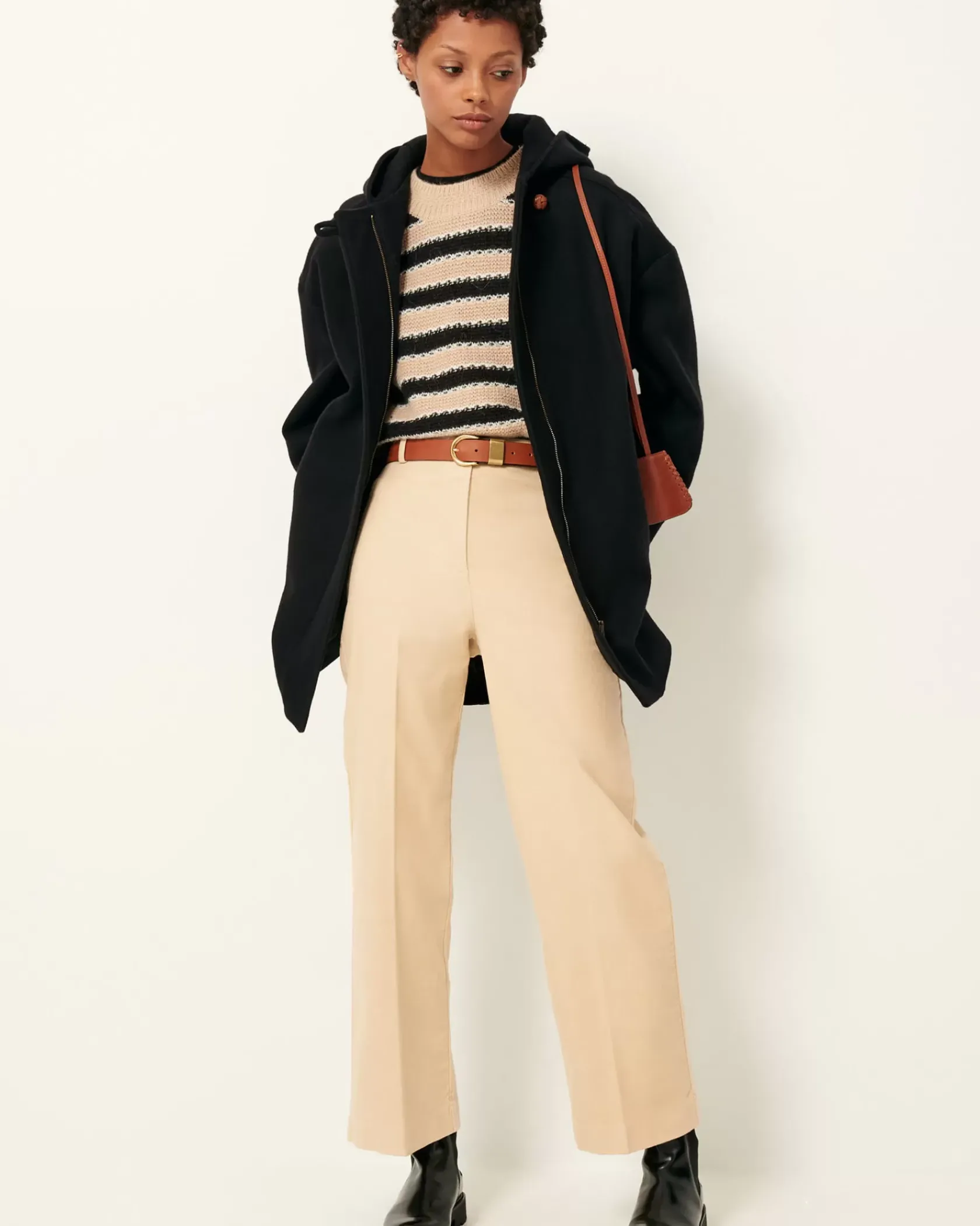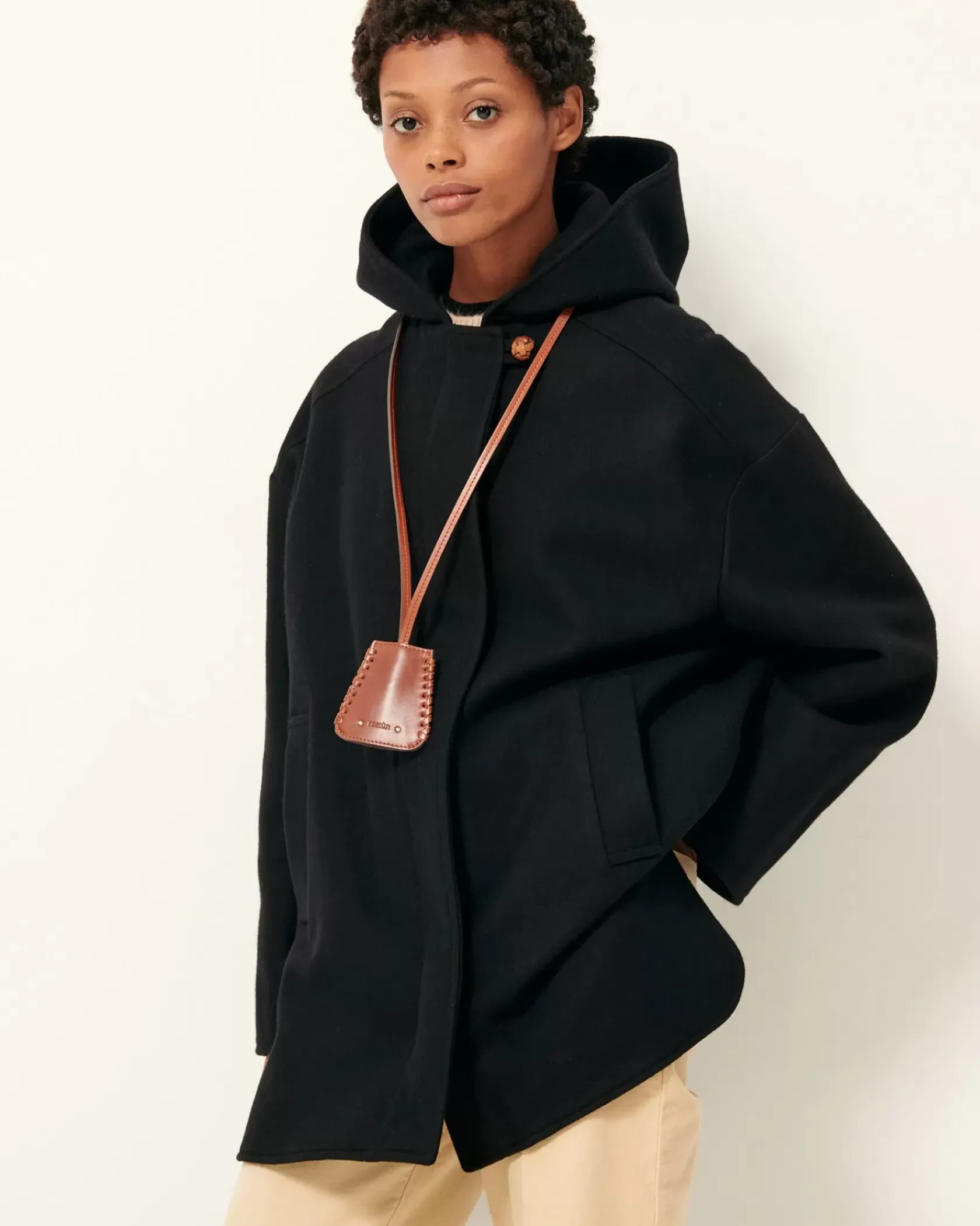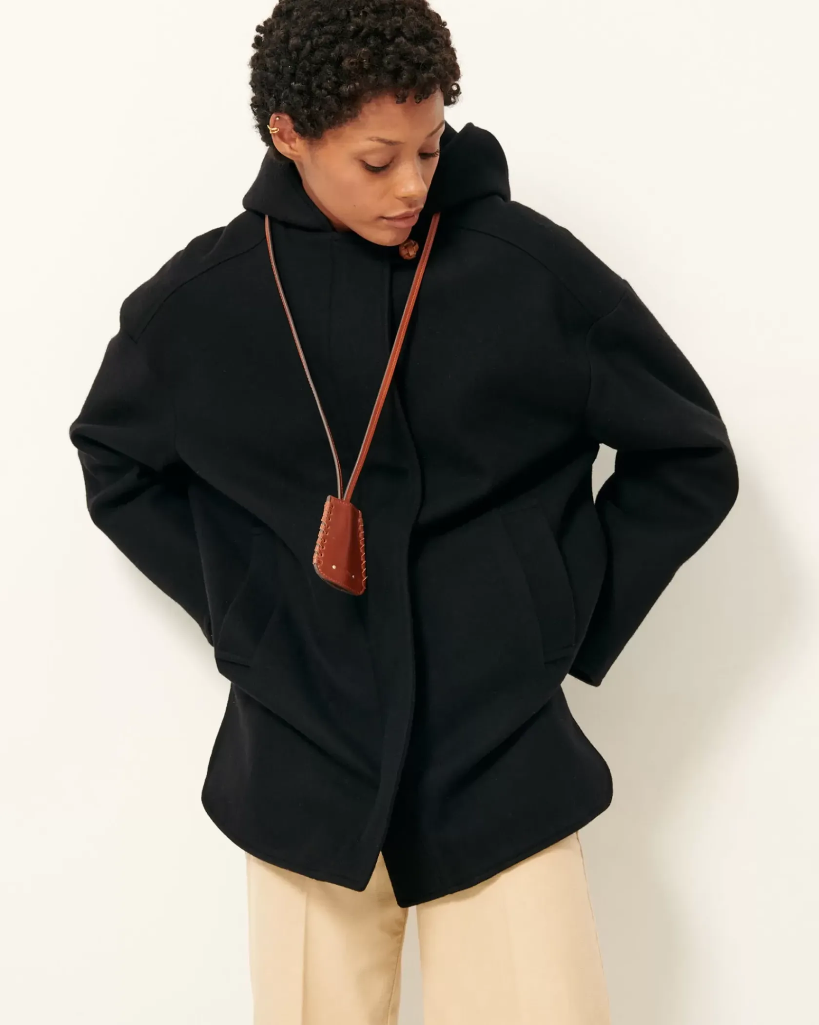Manteau oversize à capuche en toile de coton organique enduite déperlante, tissée en Italie.