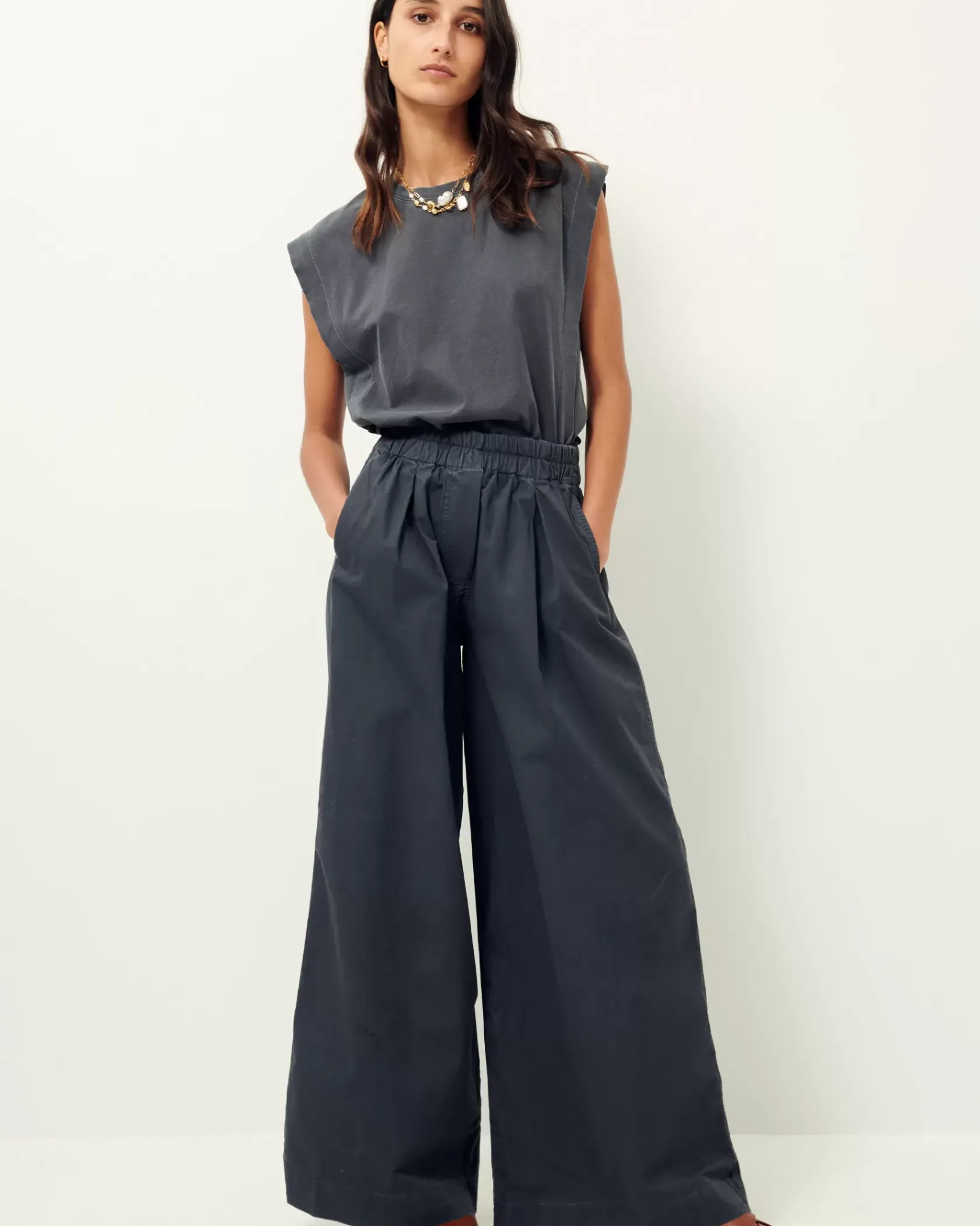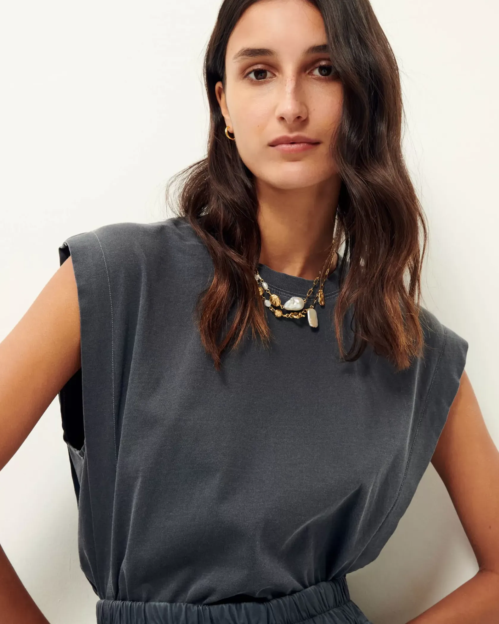 T-shirt sans manches à plis en jersey teint en pigmentaire, confectionné et teint artisanalement au Portugal.