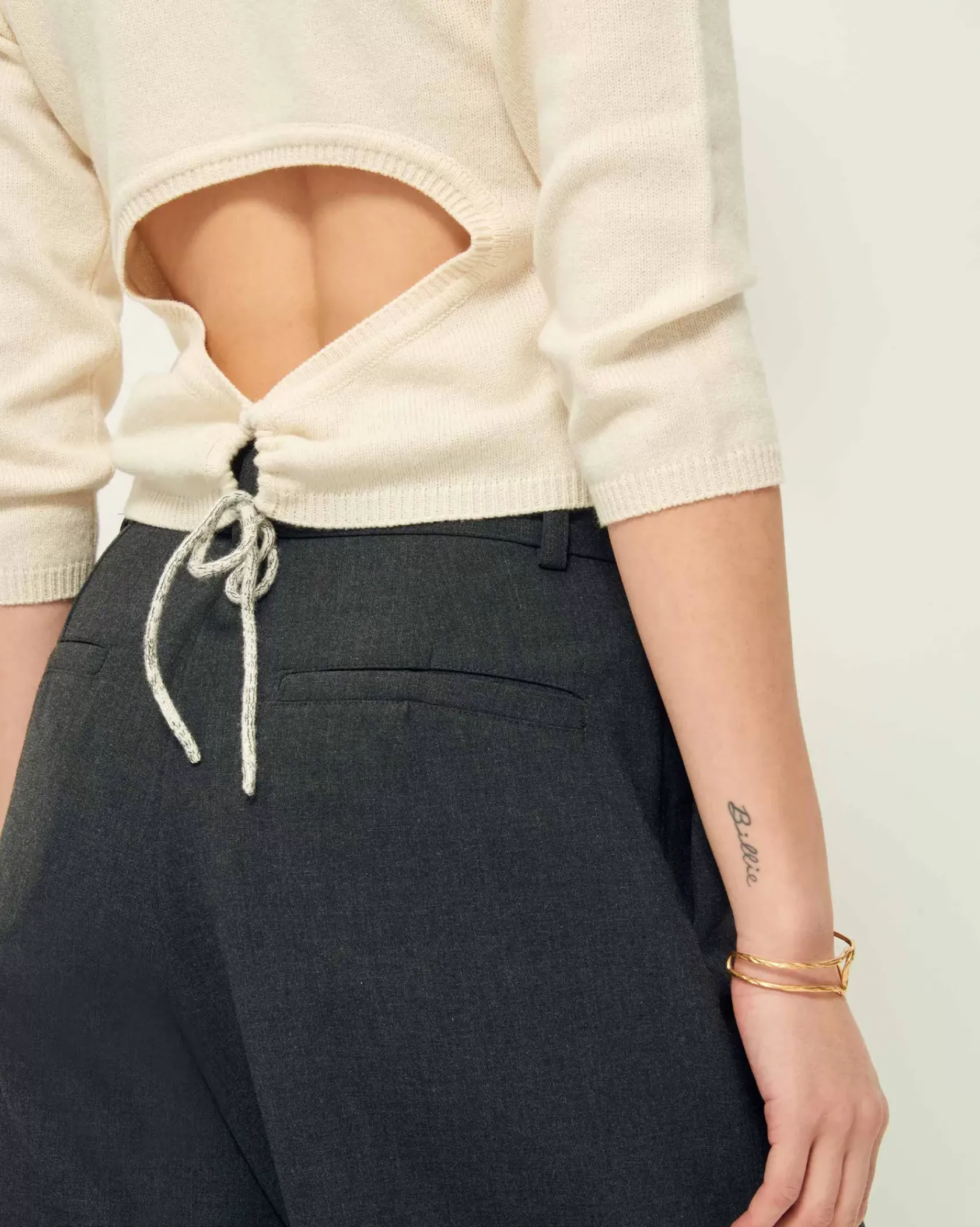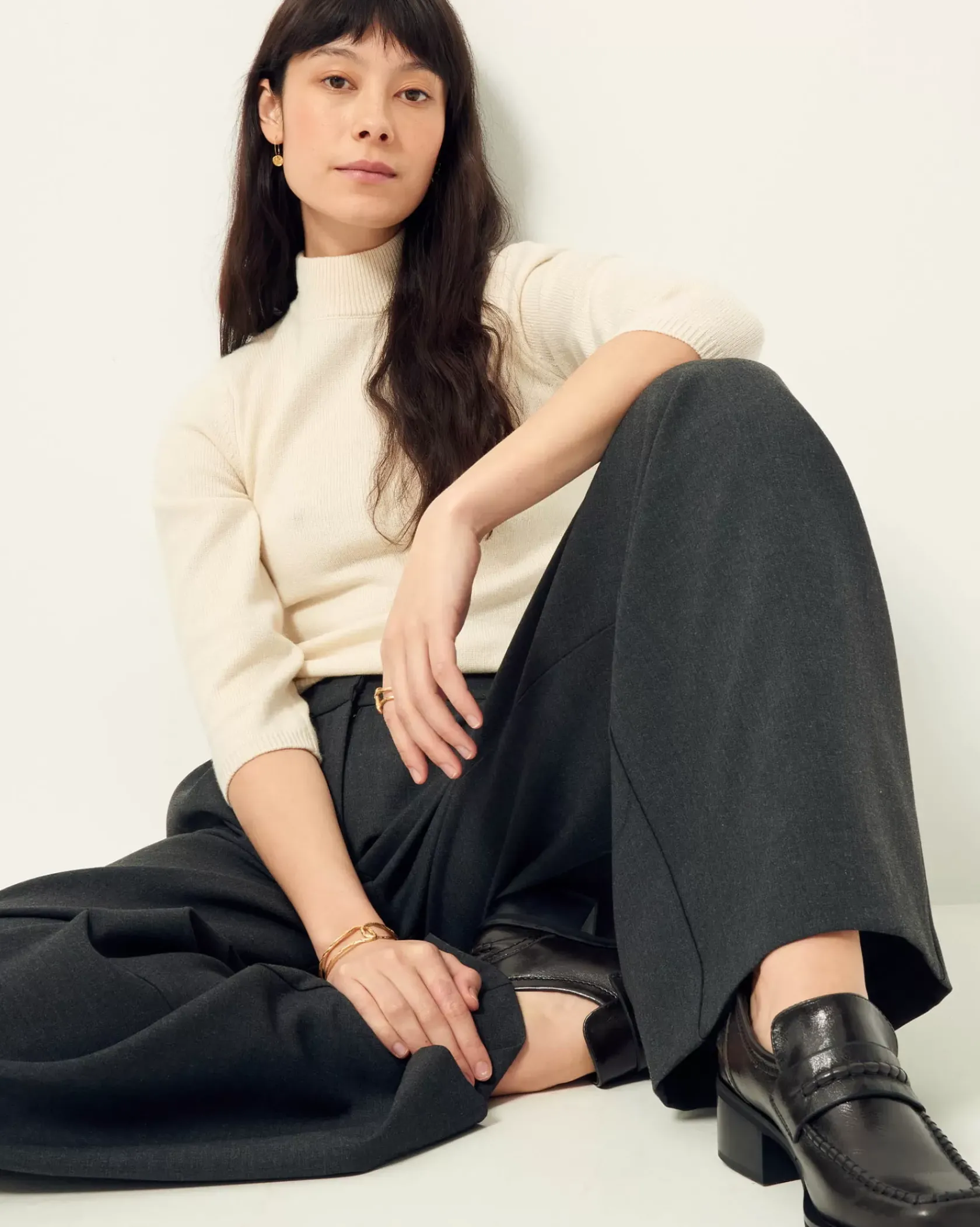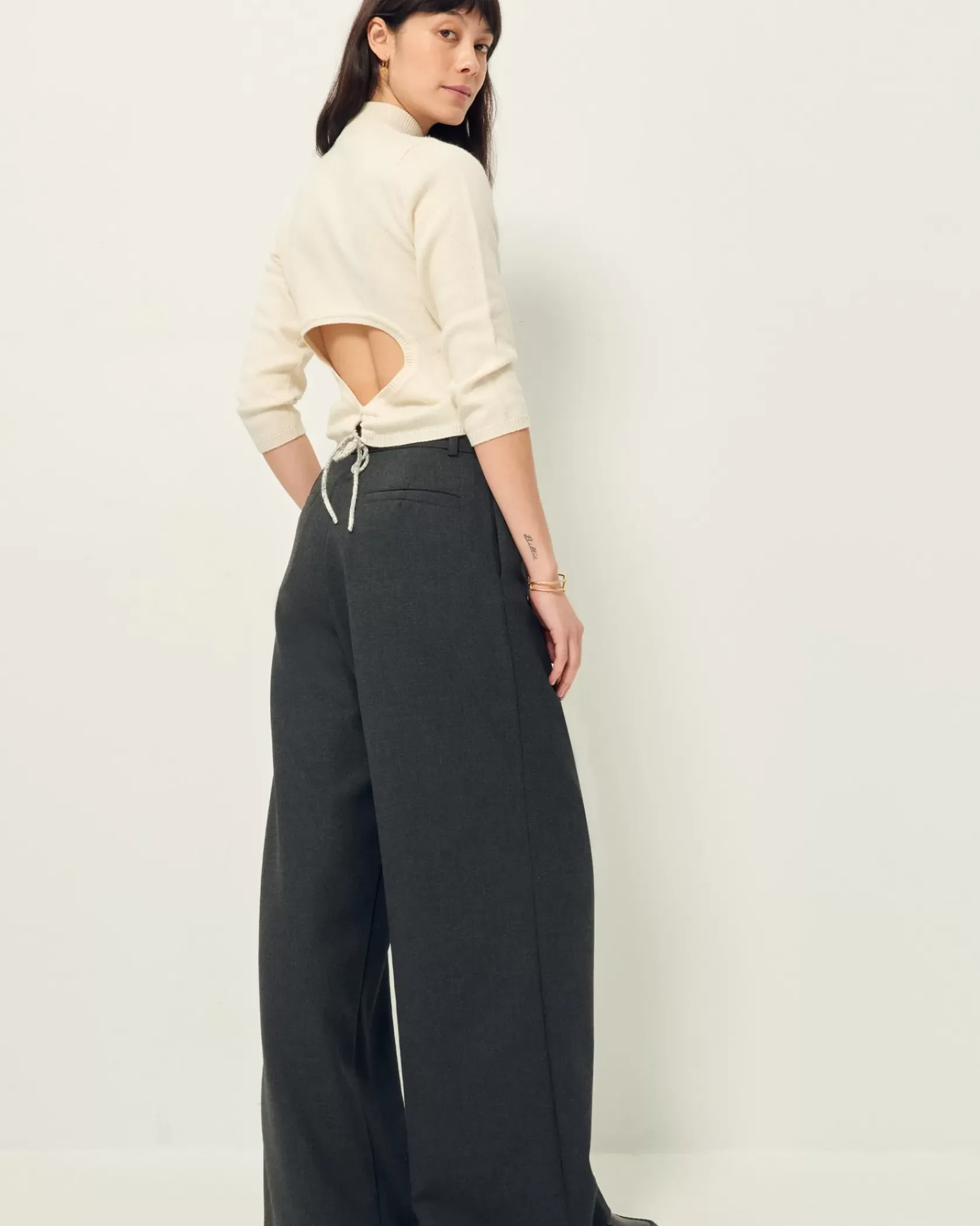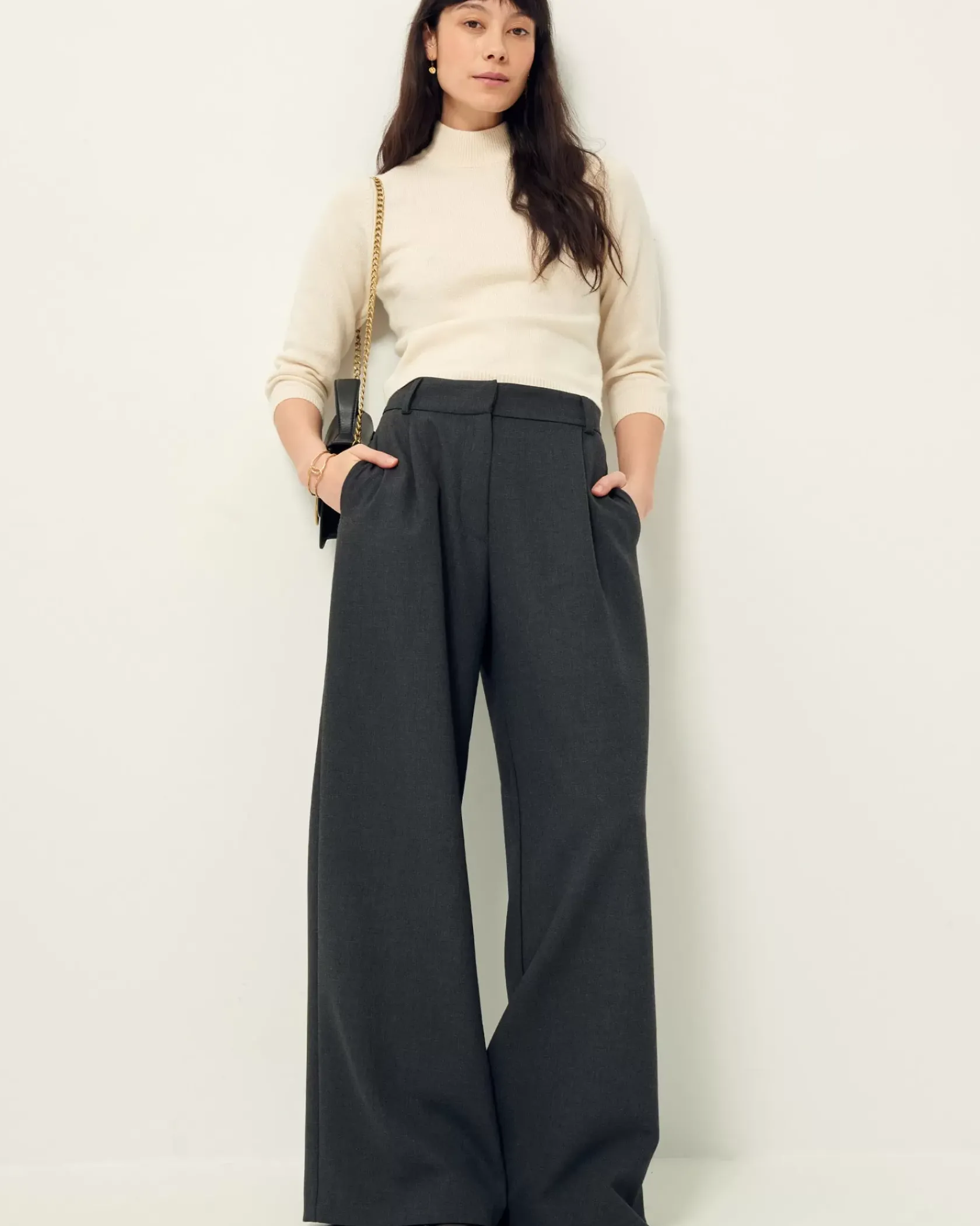 Pantalon ample d’inspiration masculine taille haute en flanelle marengo fluide.