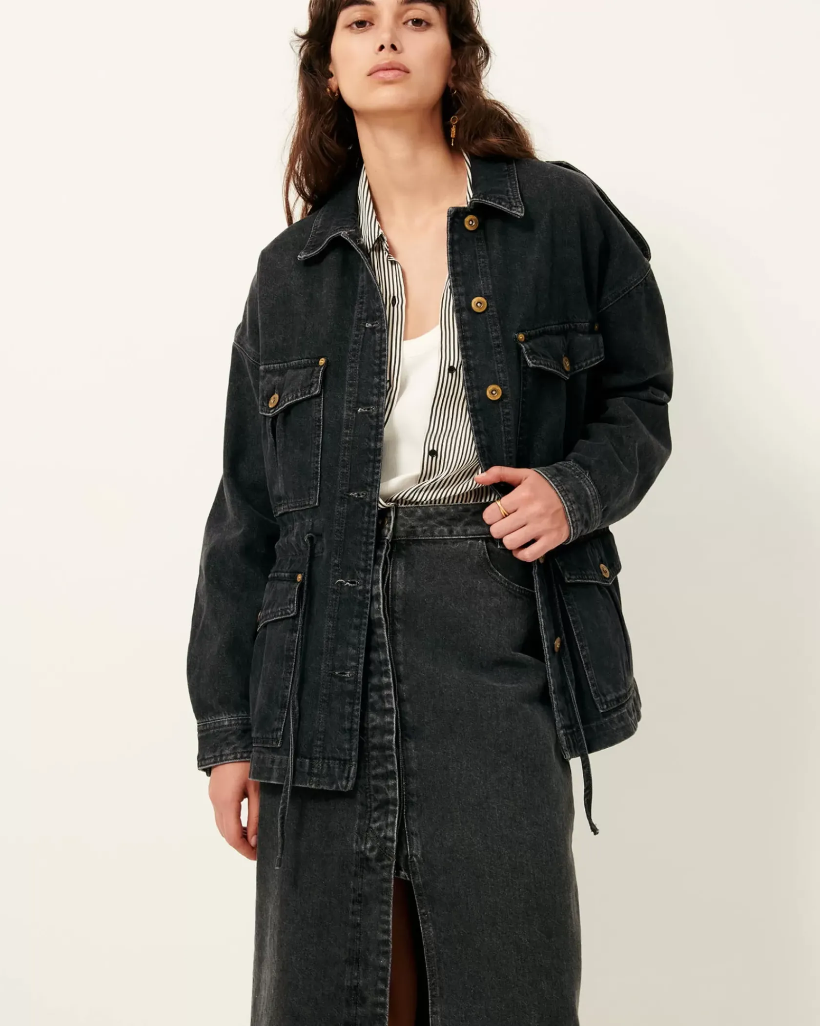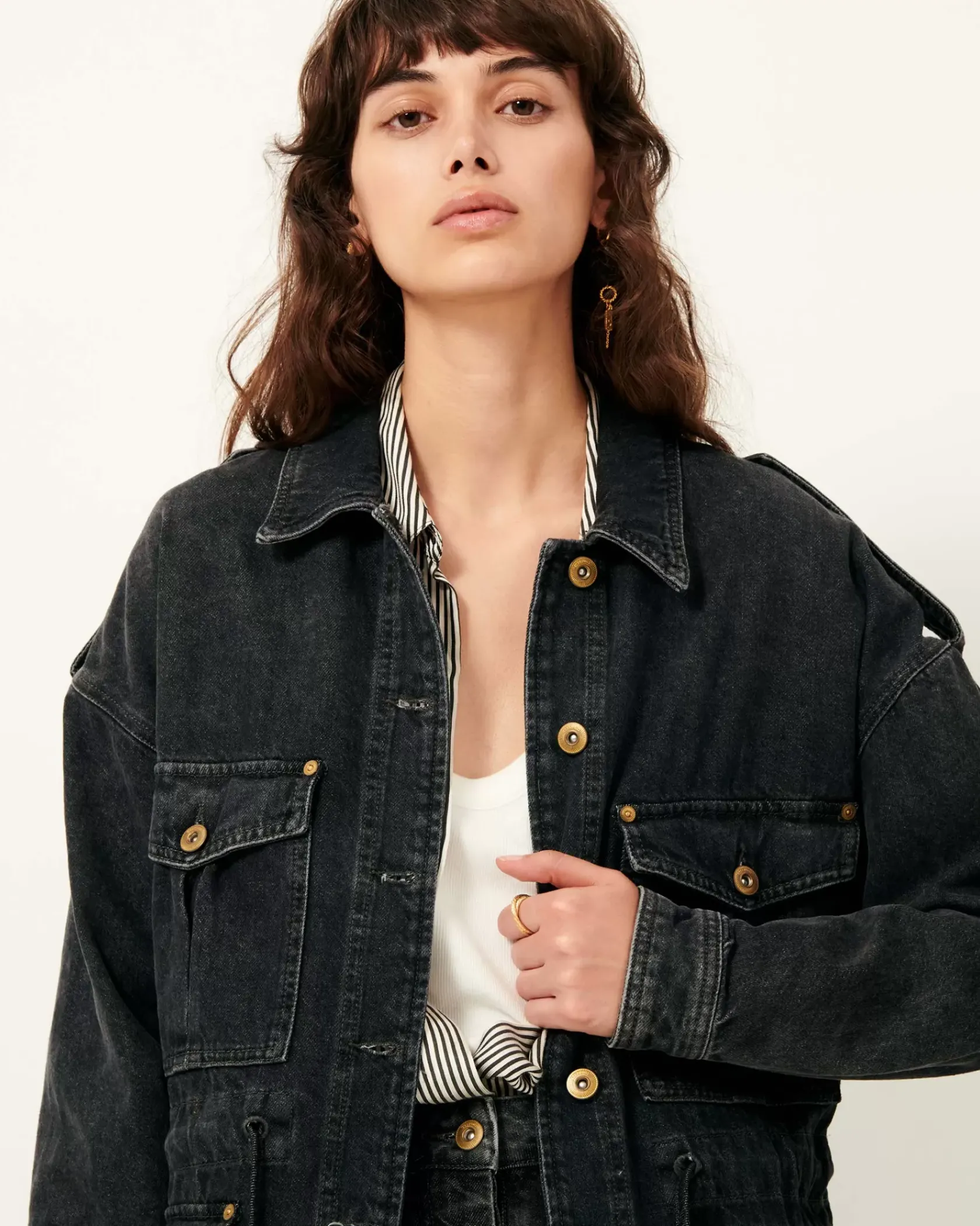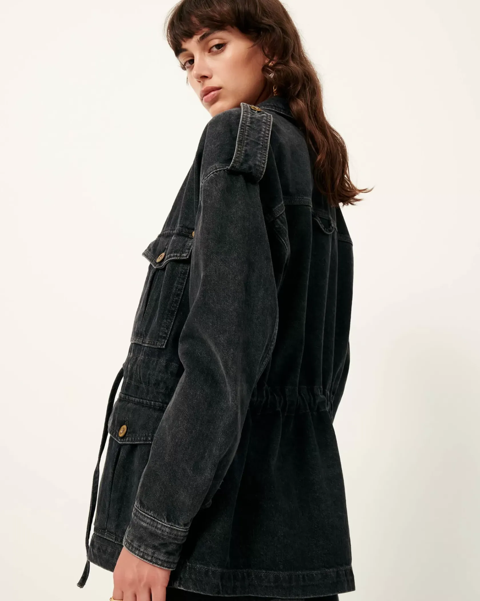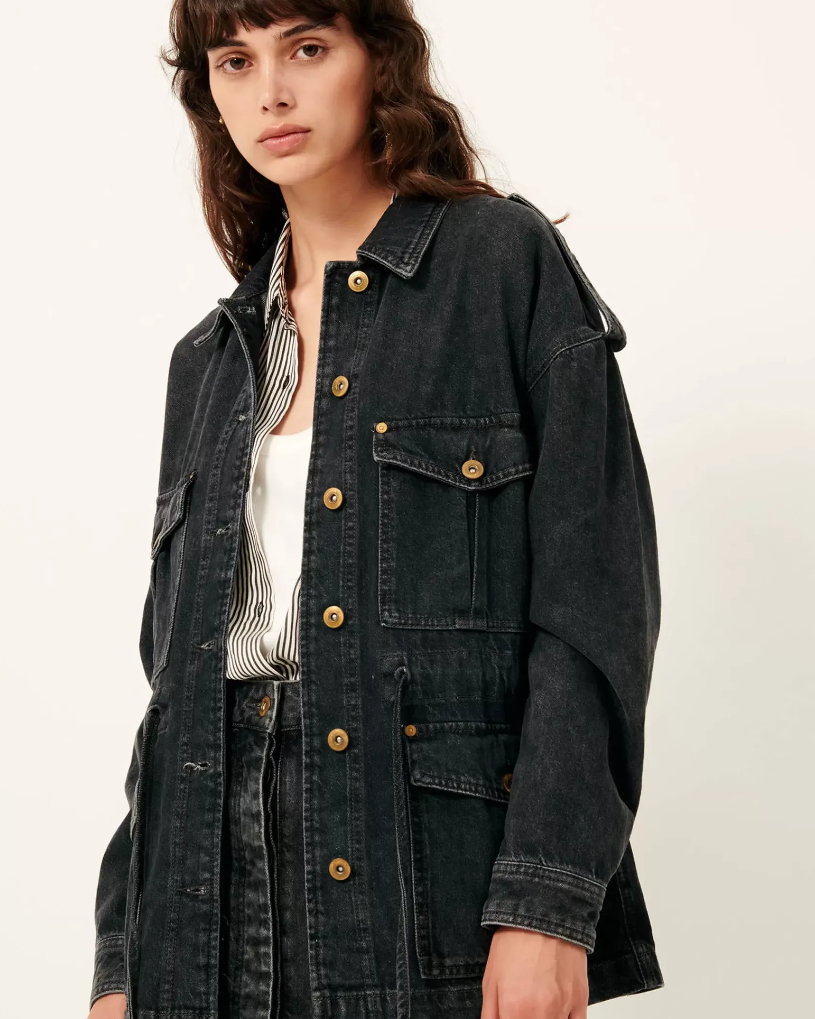Veste esprit worker à poches plaquées en denim stonewashé.