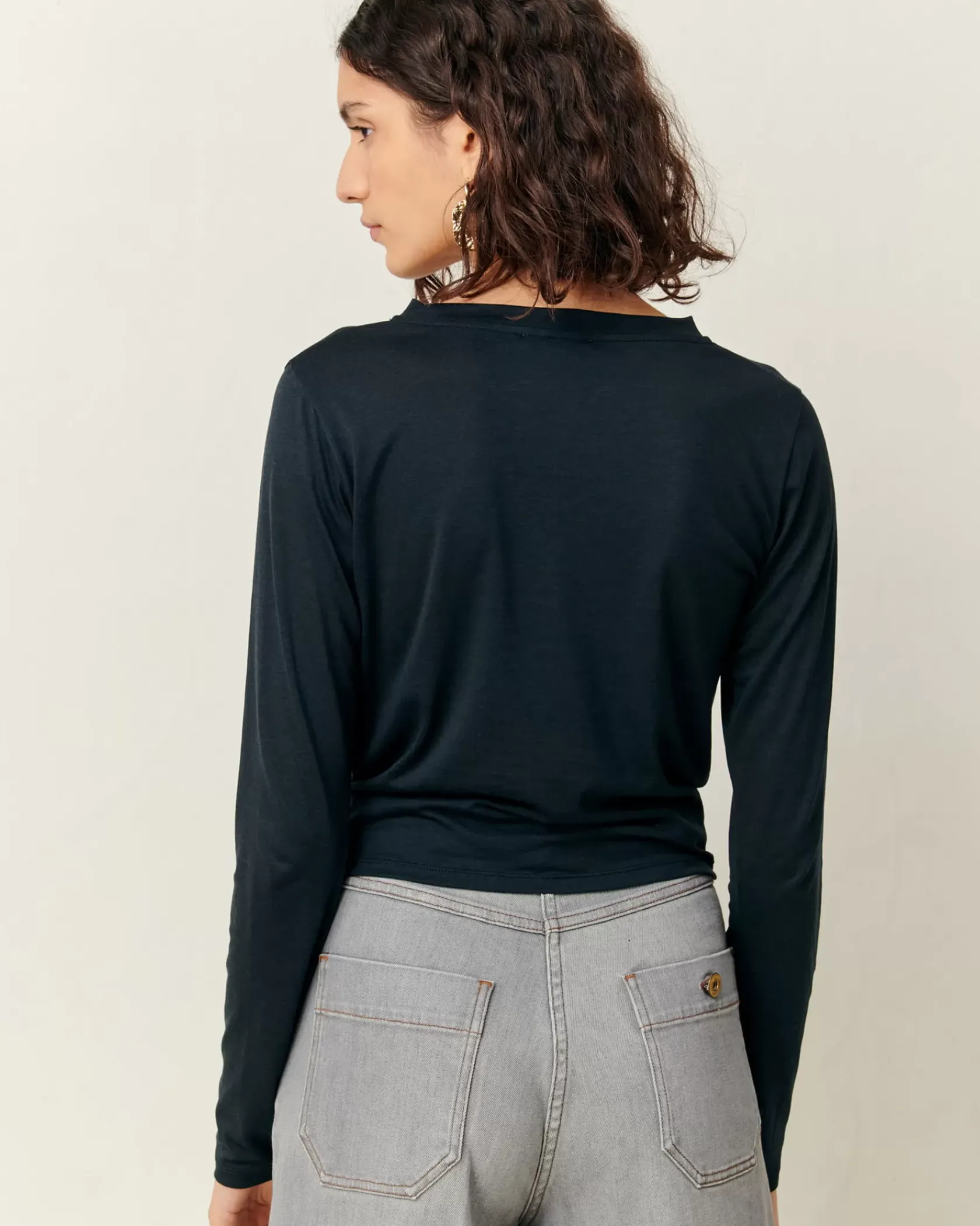 T-shirt manches longues noué en jersey fluide, tricoté et fabriqué au Portugal.