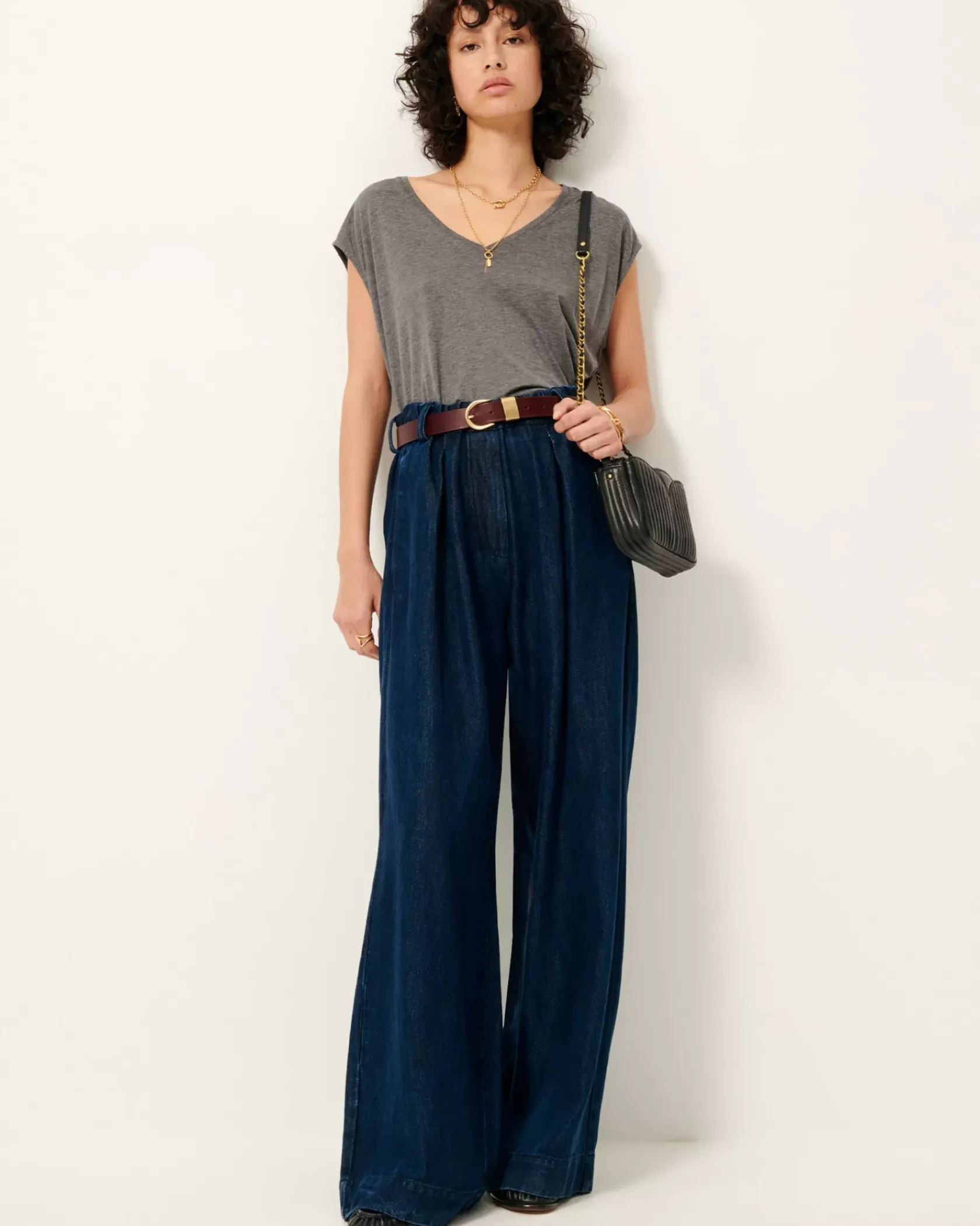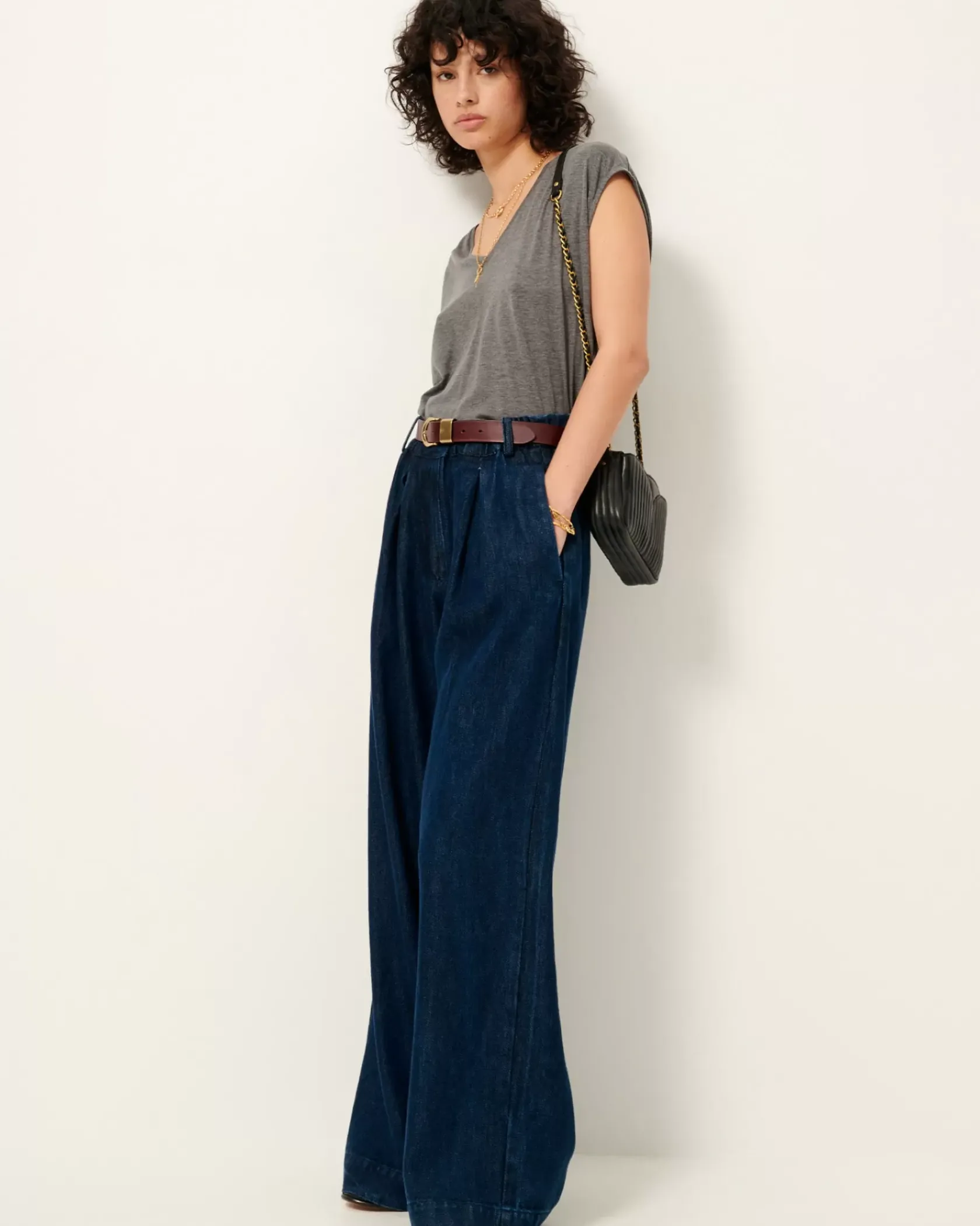T-shirt sans manche col V en jersey fluide.